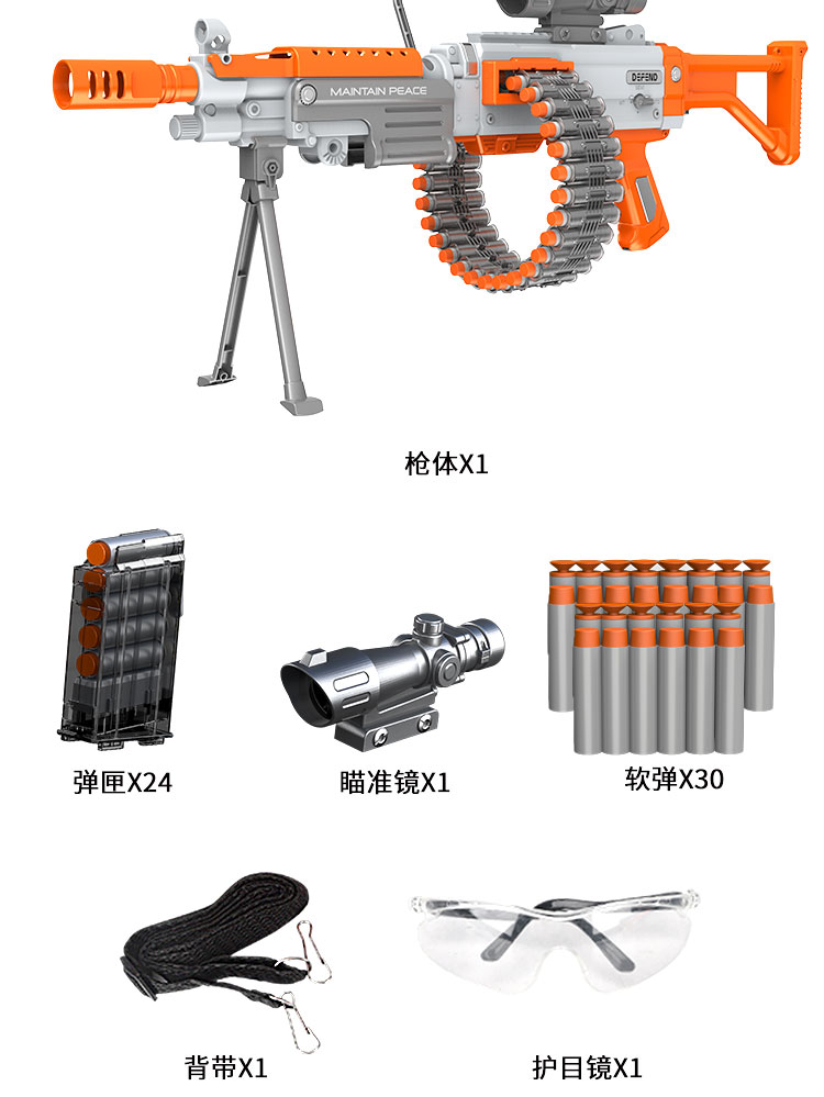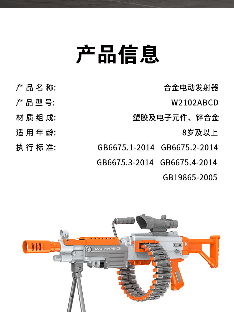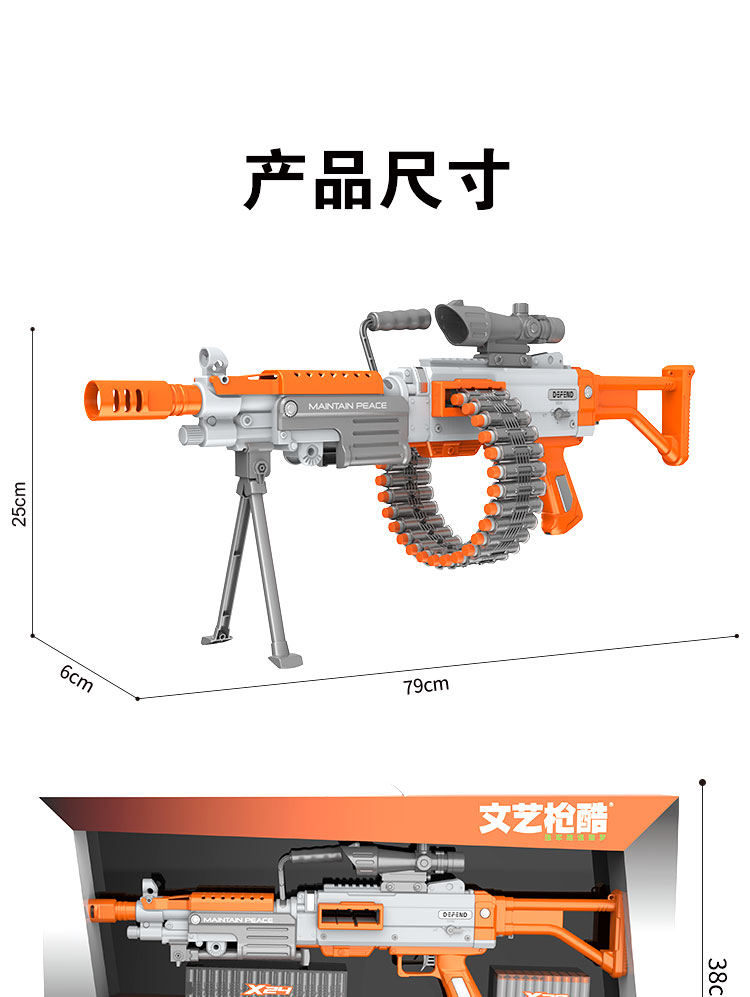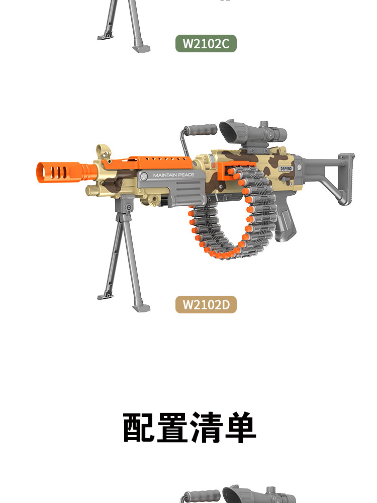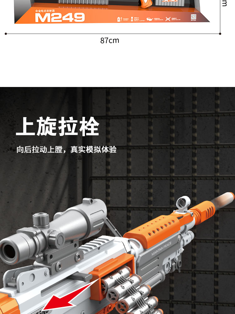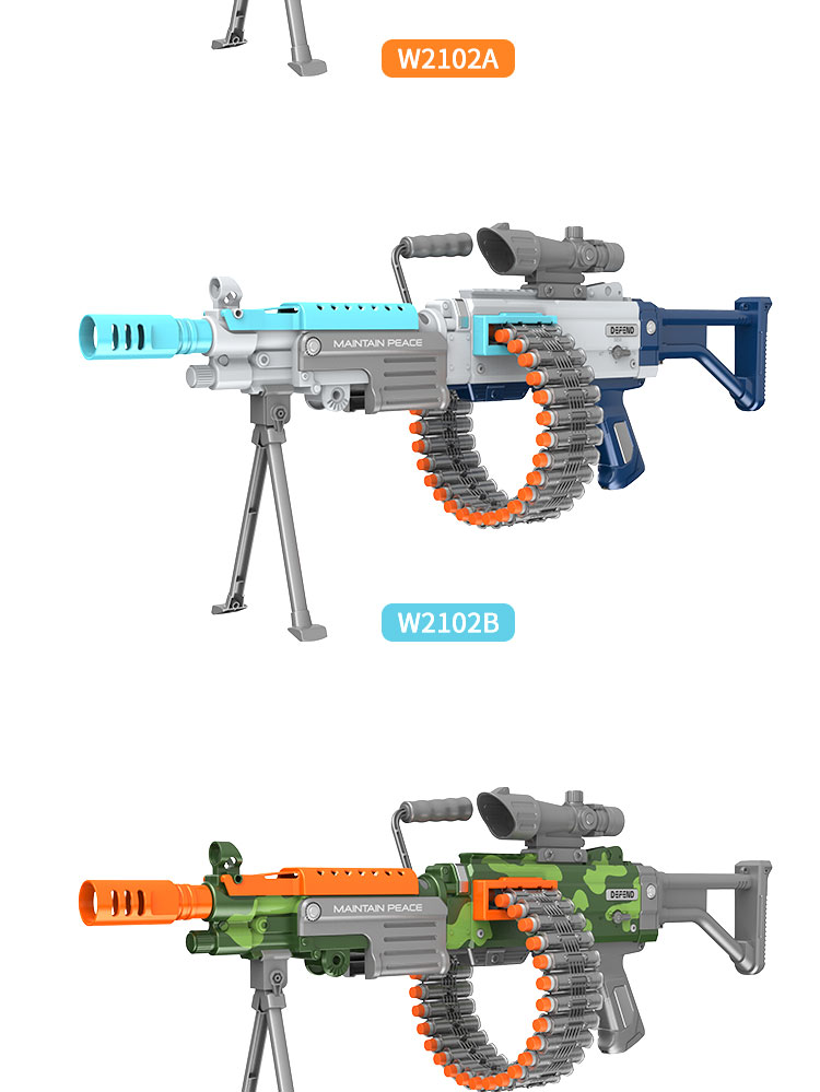 文艺枪酷M249合金电动发射器W2102A/B(混色)儿童玩具枪(8岁及以上)