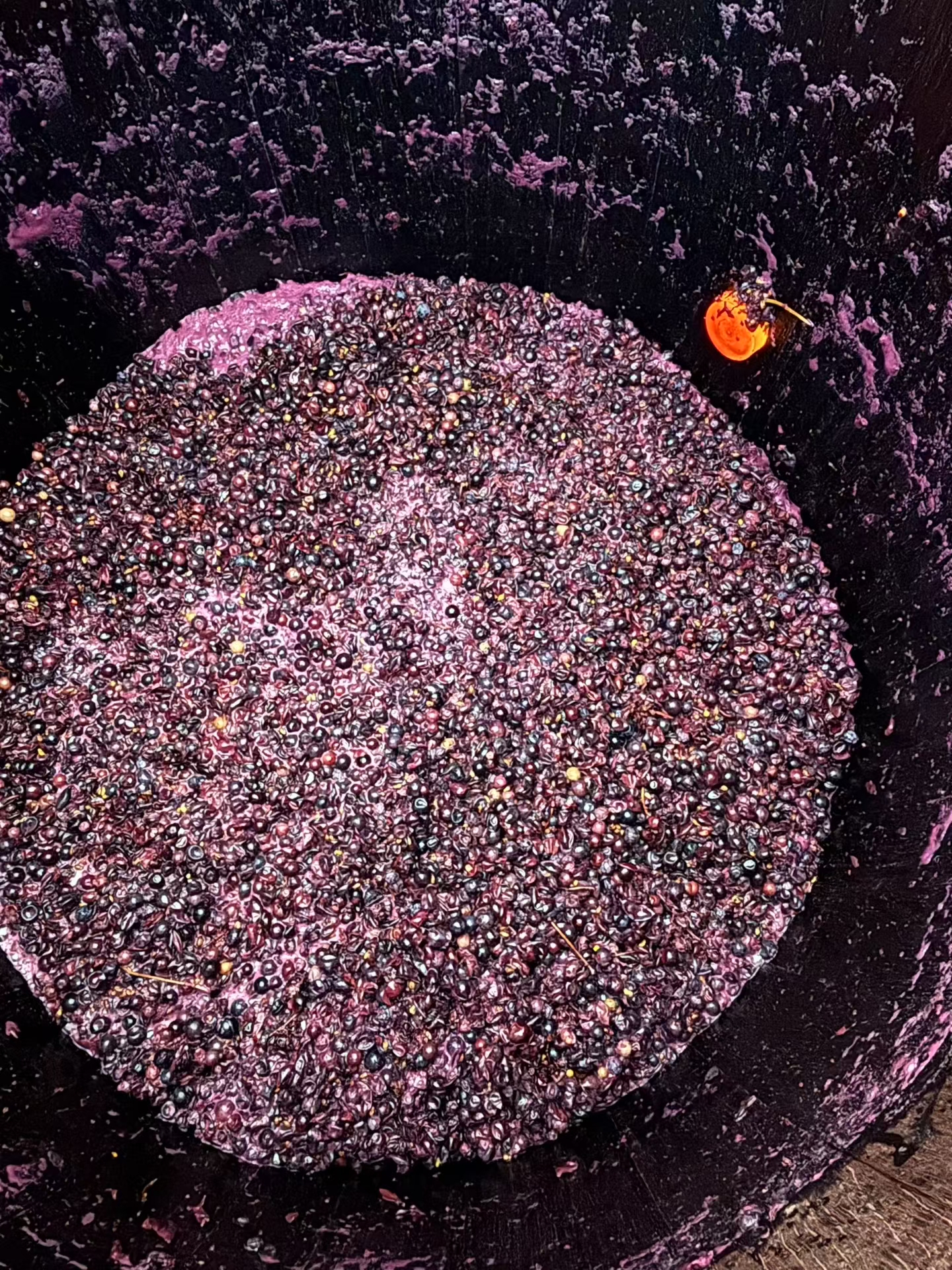 前浸皮:约36小时,由于是自生酵母,需要等待启动自动开始,在葡萄入罐的第三天比重开始变化。
