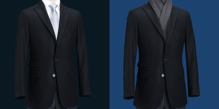 秋冬穿的单西面料比精纺毛料西装要厚很多,在温度不那么低的情况下,可以充短大衣穿,内搭一件毛衣就足够;