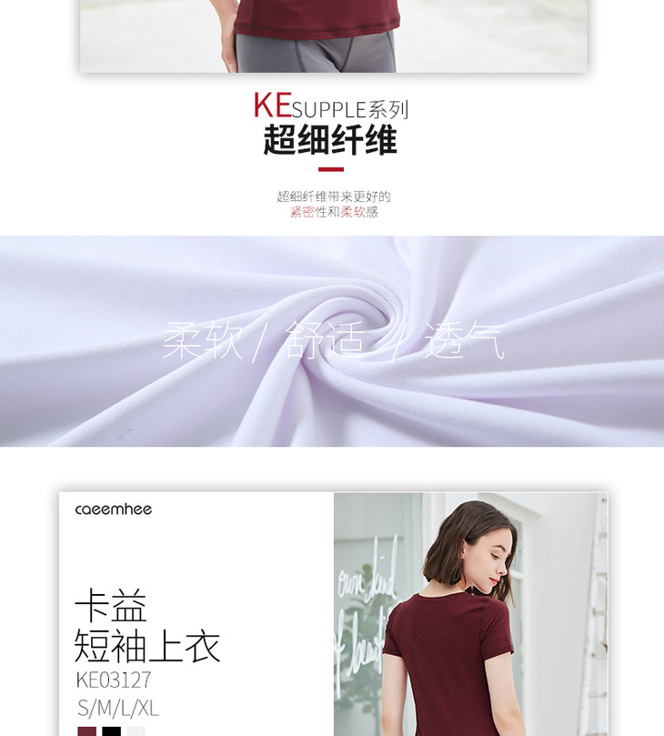 卡益短袖上衣KE03127不含胸垫女士瑜伽服健身服