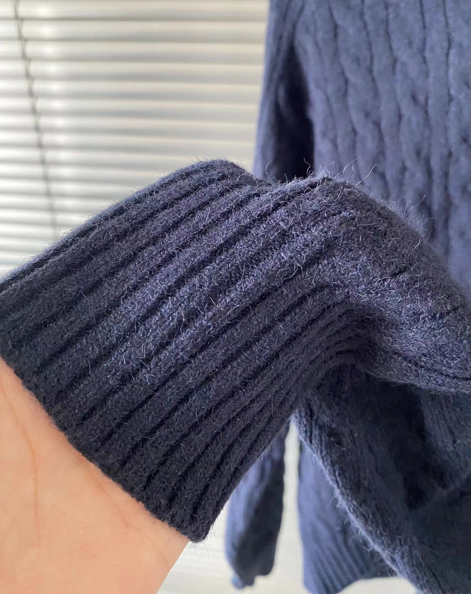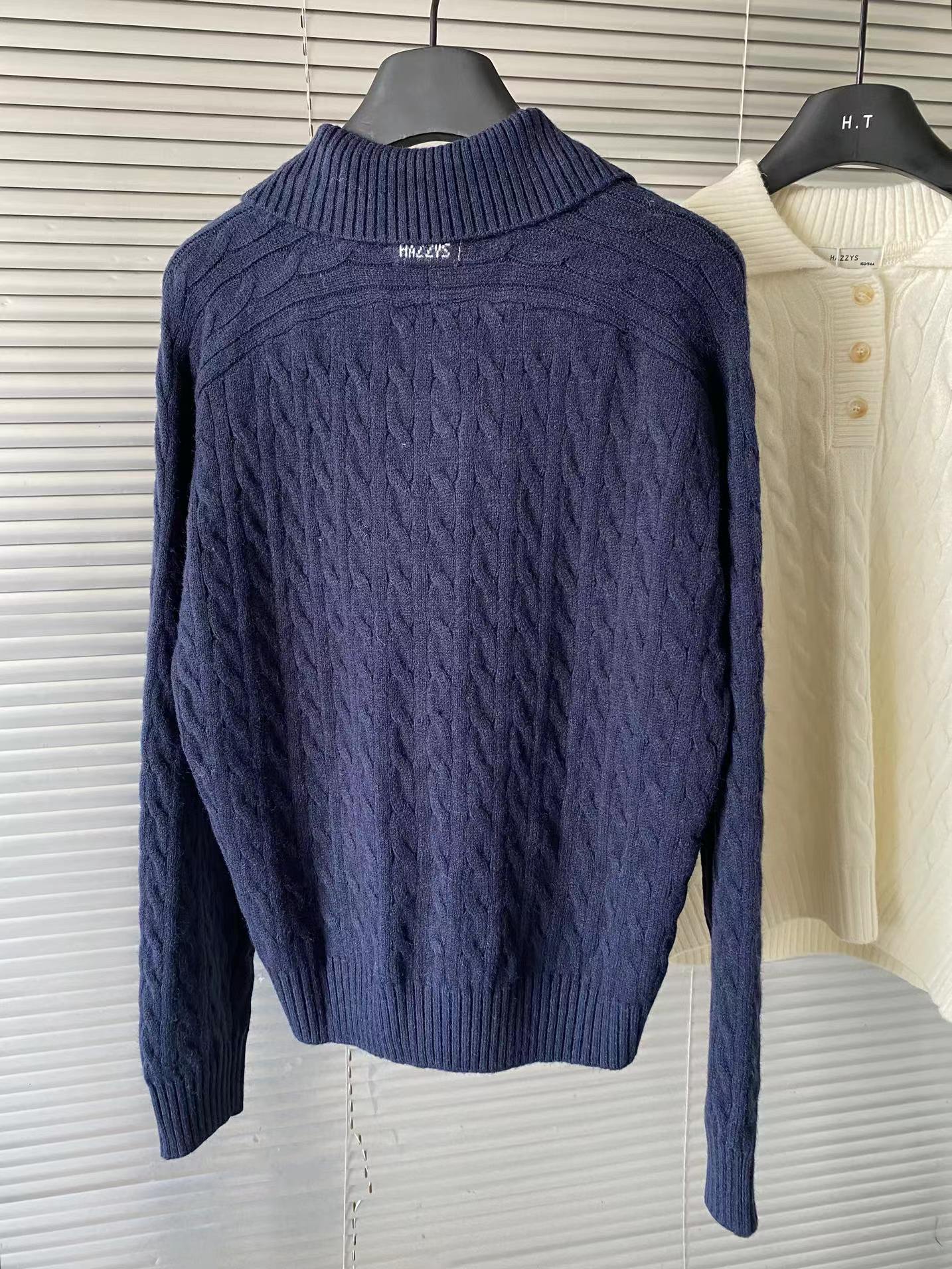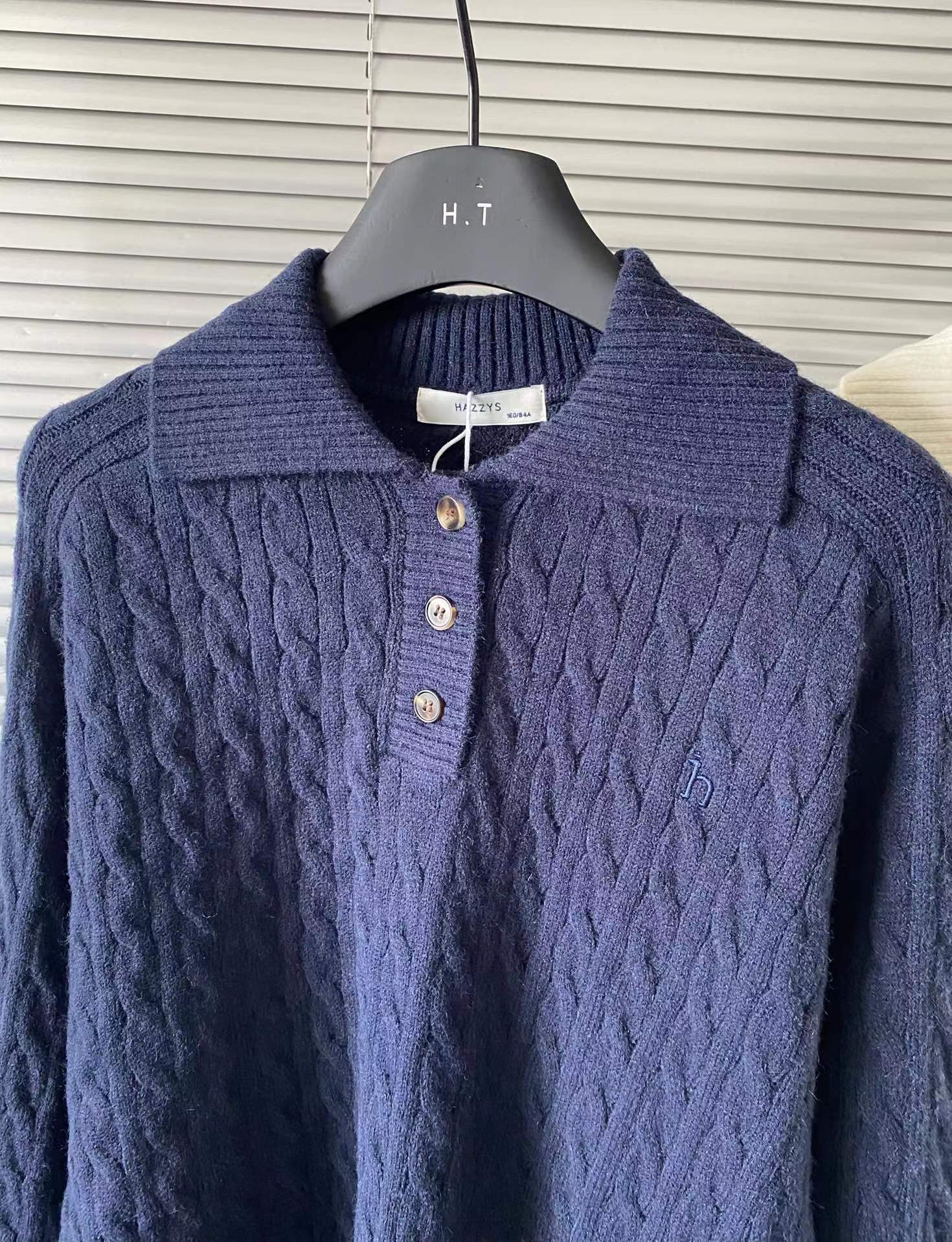翻领绞花毛衫女2025秋冬新品针织衫!!经d的阿兰编织手法,赋予毛衣立体感和复古学院风。POLO衫式的纽扣翻领,打造干练又减龄的造型。采用优质羊毛混纺,保证保暖性的同时兼顾亲肤感和抗起球能力。实穿性与搭配 非常百搭,可内搭衬衫露出领口,或直接单穿。下装可搭配牛仔裤、休闲裤或半身裙,适用于通勤、休闲等多种场合。