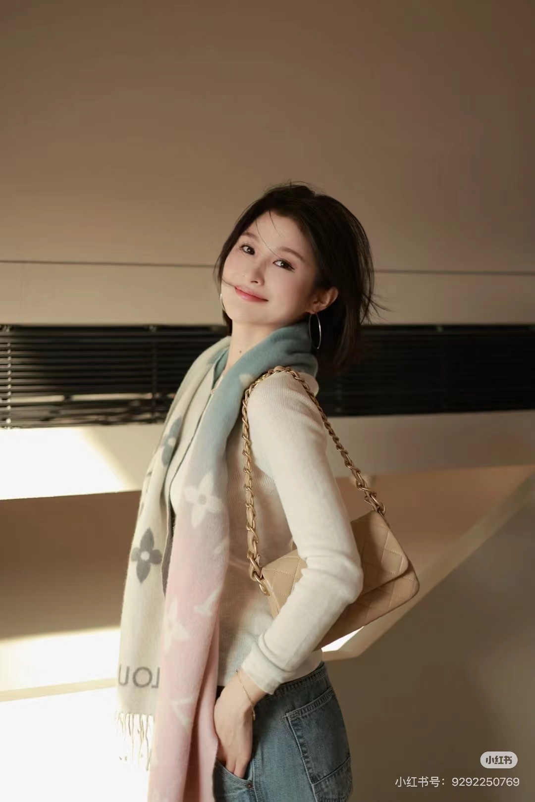 F011321冬季新款女士三色渐变款流苏披肩围巾围脖