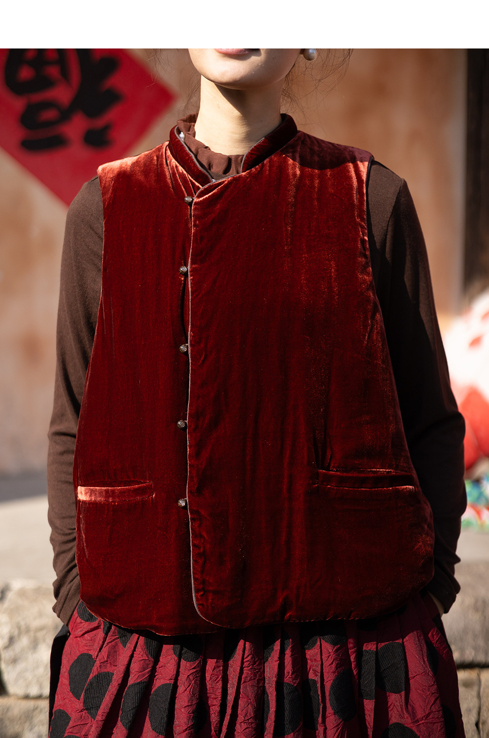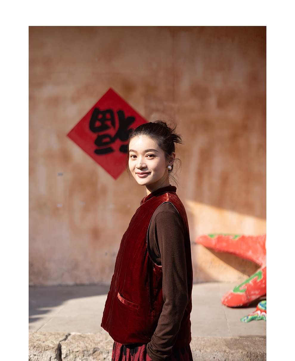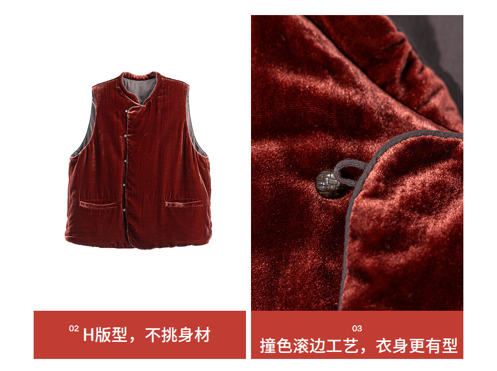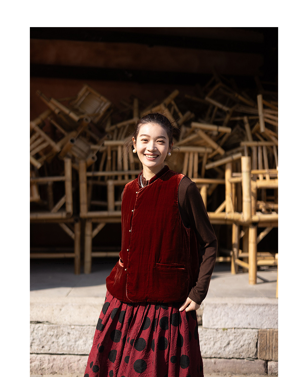 绽放007朵/新中式真丝丝绒绗棉马甲女松弛感百搭气质文艺马夹新款