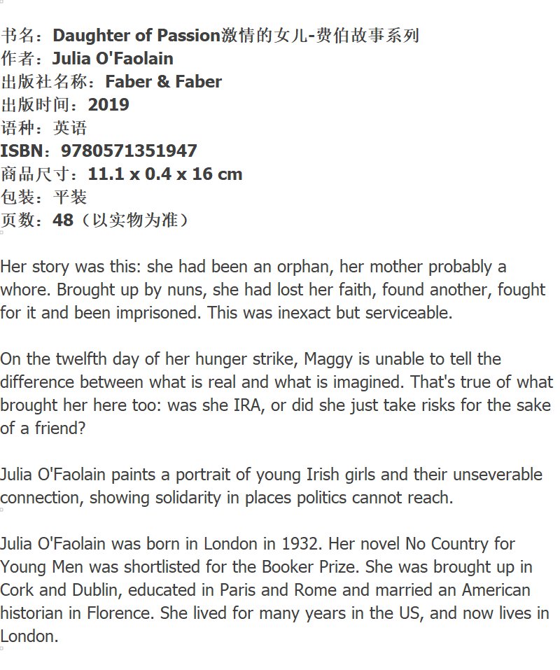 激情的女儿 英文原版 Daughter of Passion 费伯故事系列 英文版进口原版英语书籍