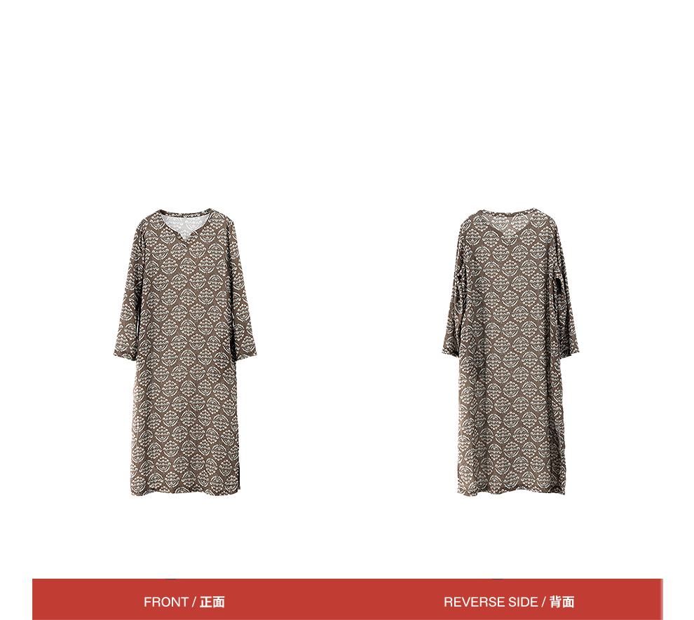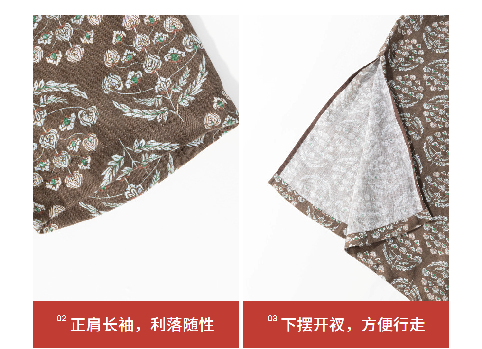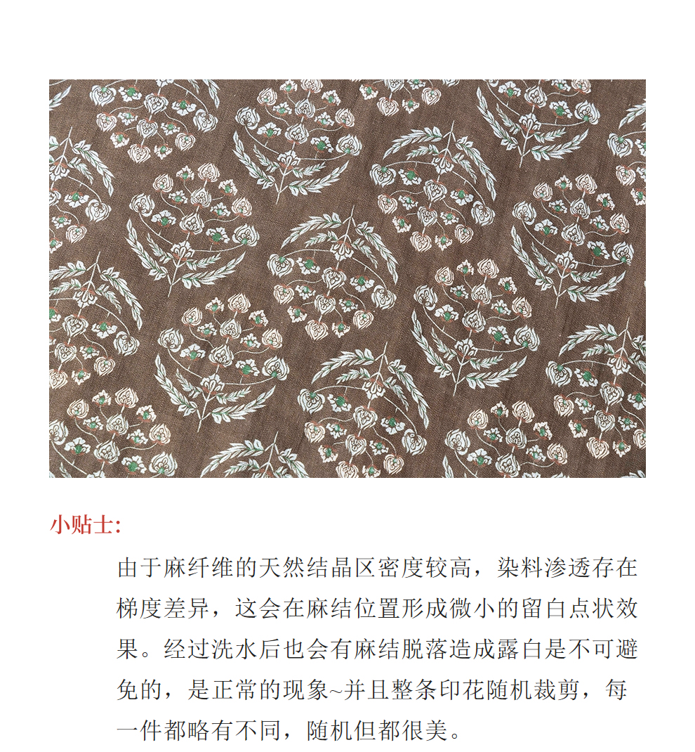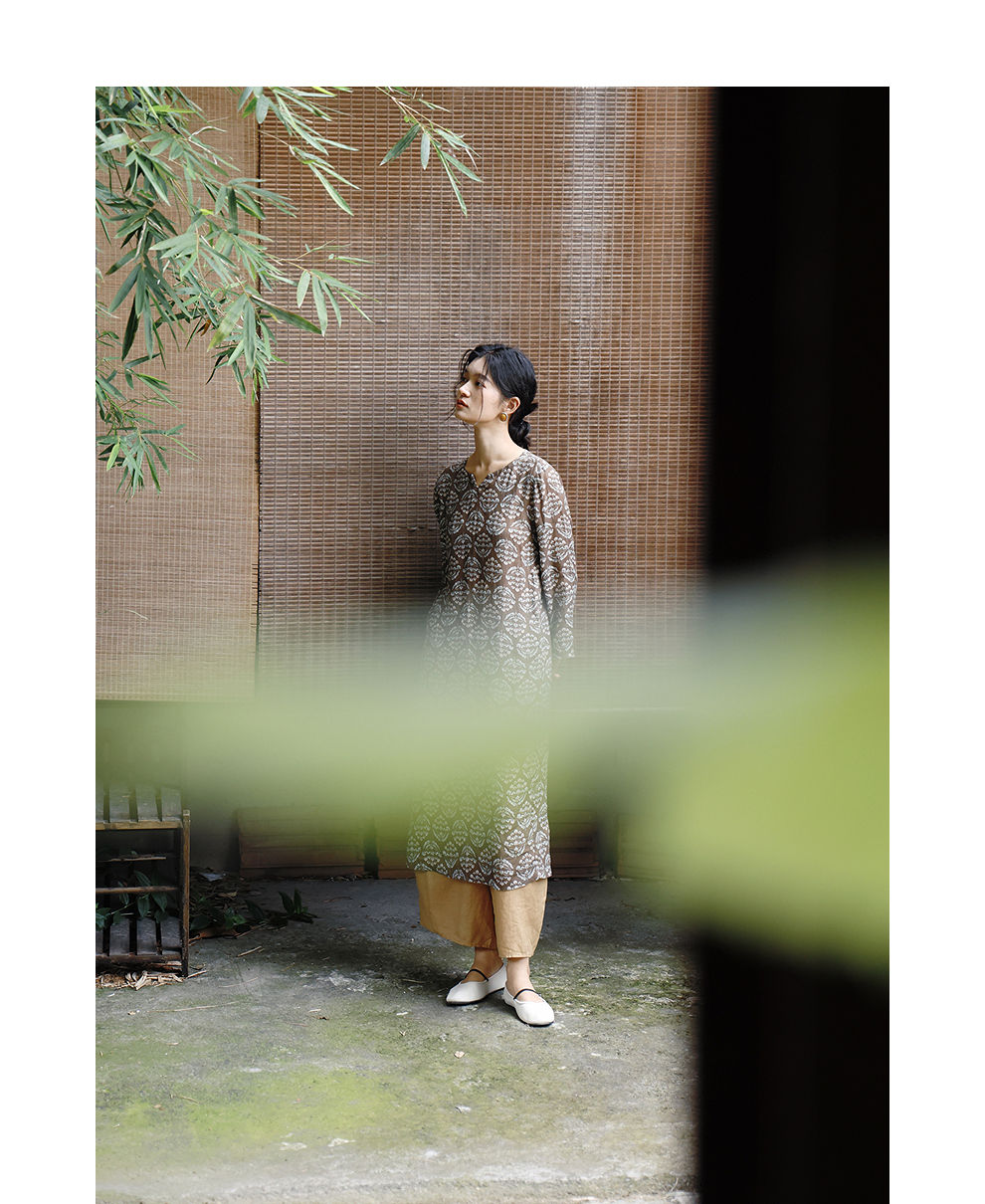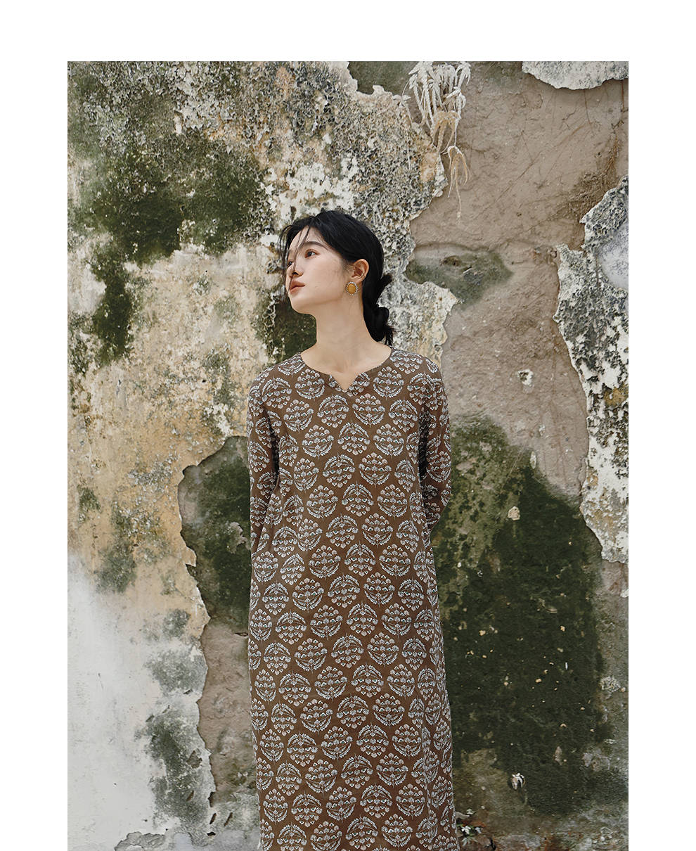 绽放旅行女装412朵/【莫兰迪系列】双支数亚麻底布印花长袖连衣裙