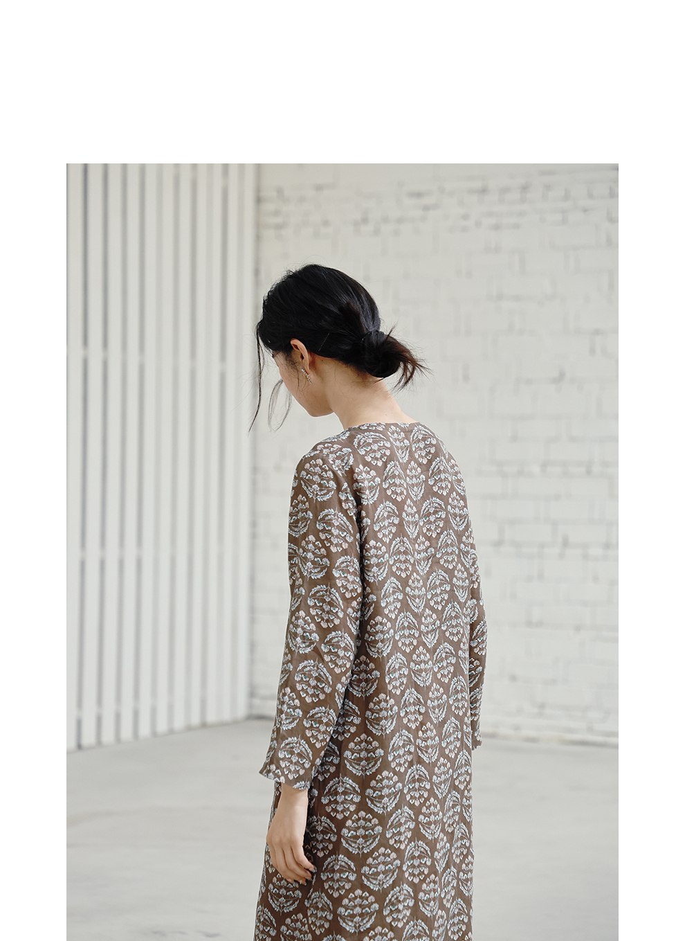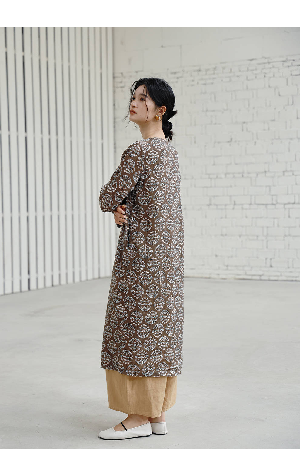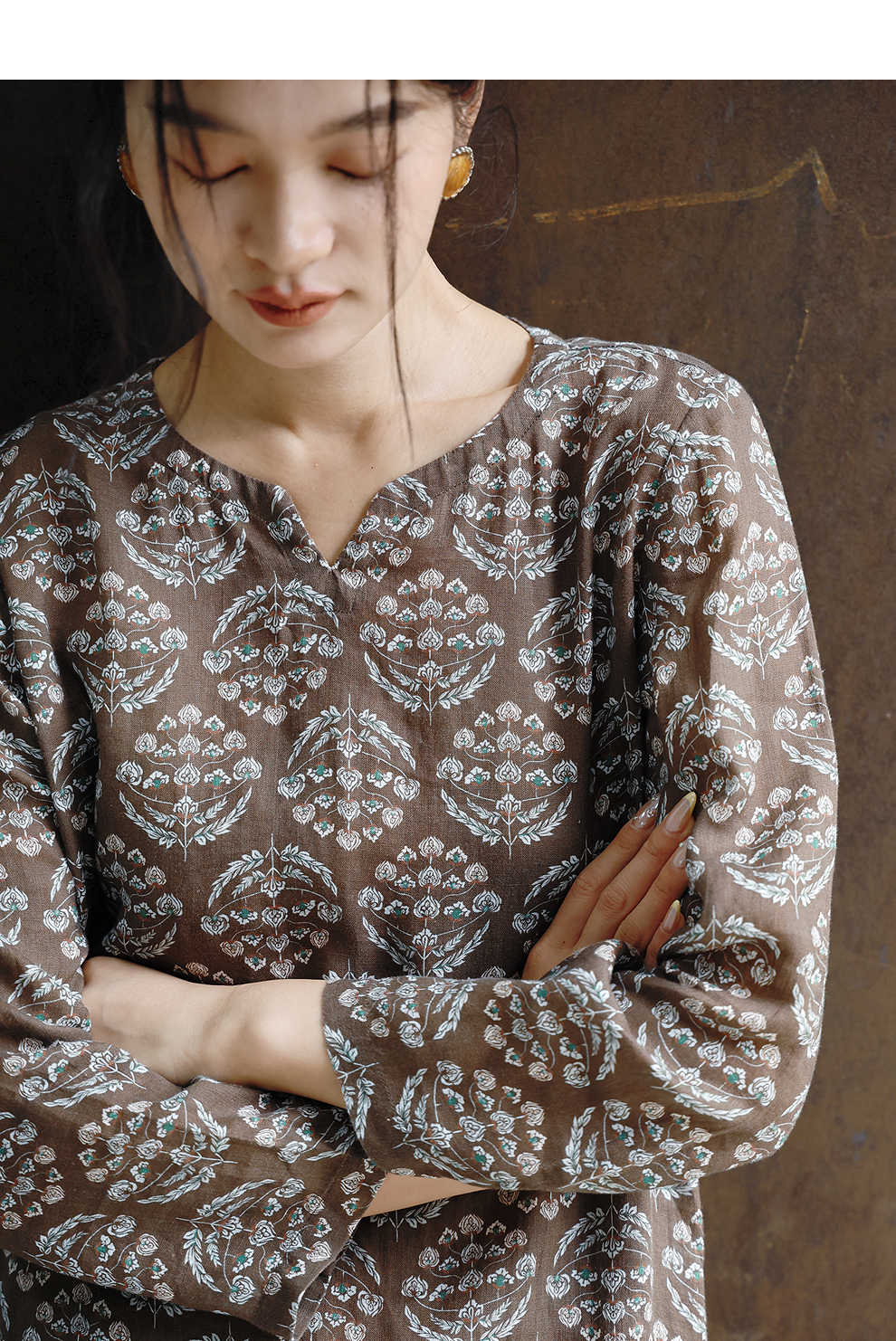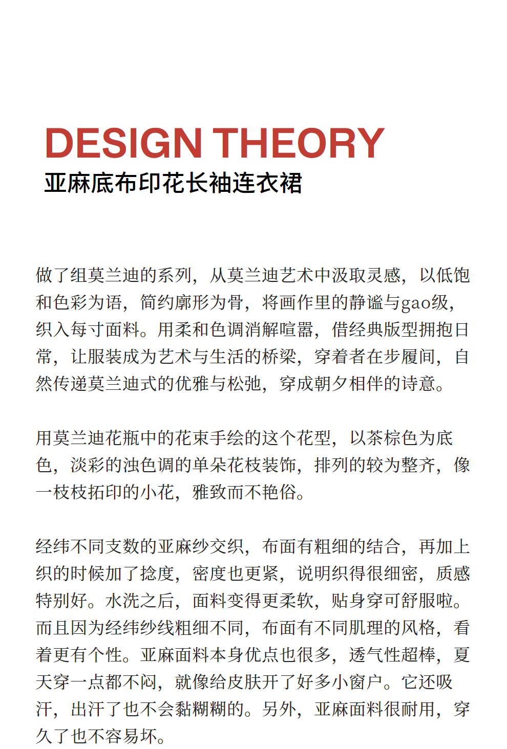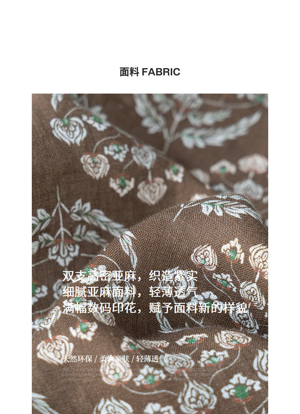 绽放旅行女装412朵/【莫兰迪系列】双支数亚麻底布印花长袖连衣裙