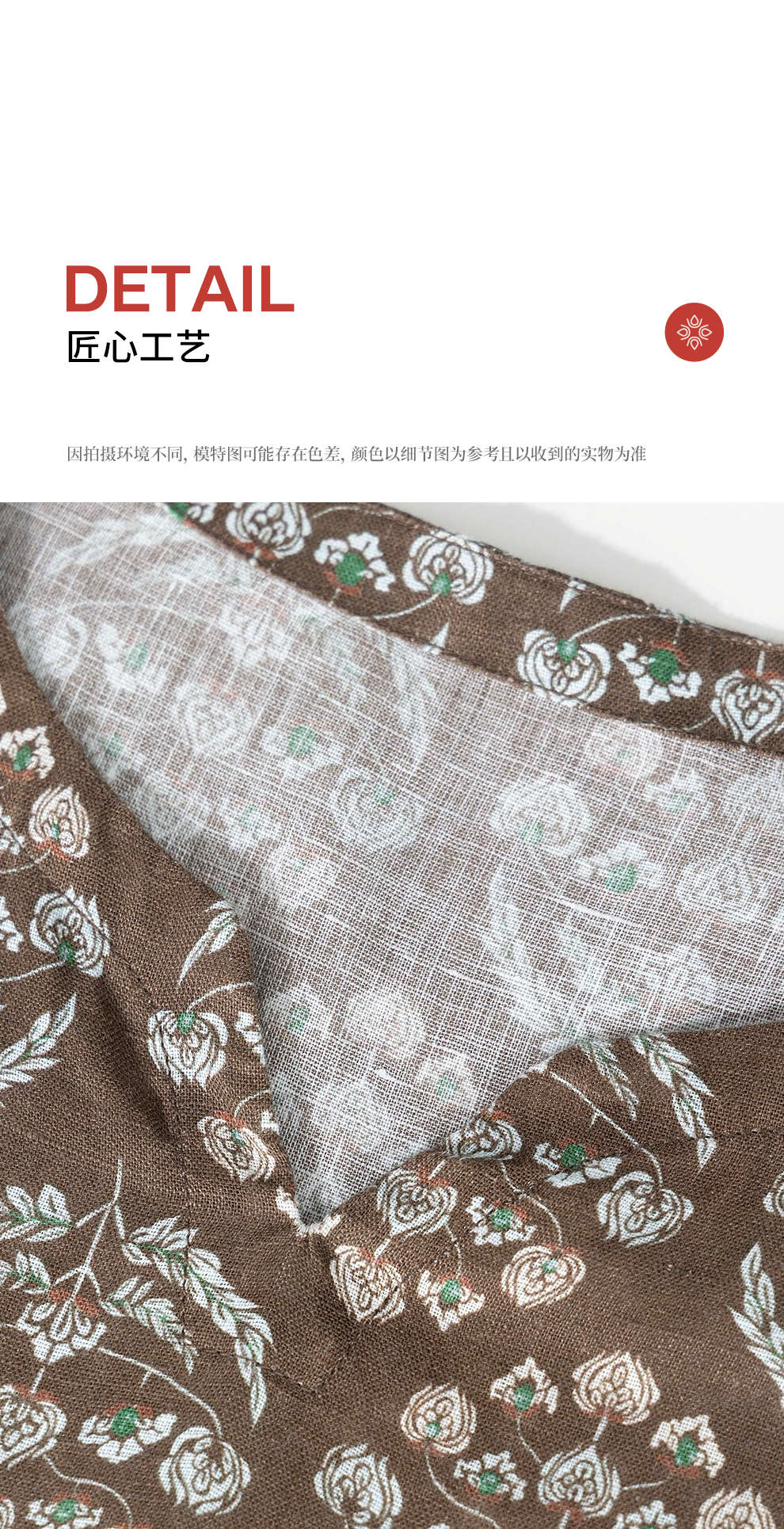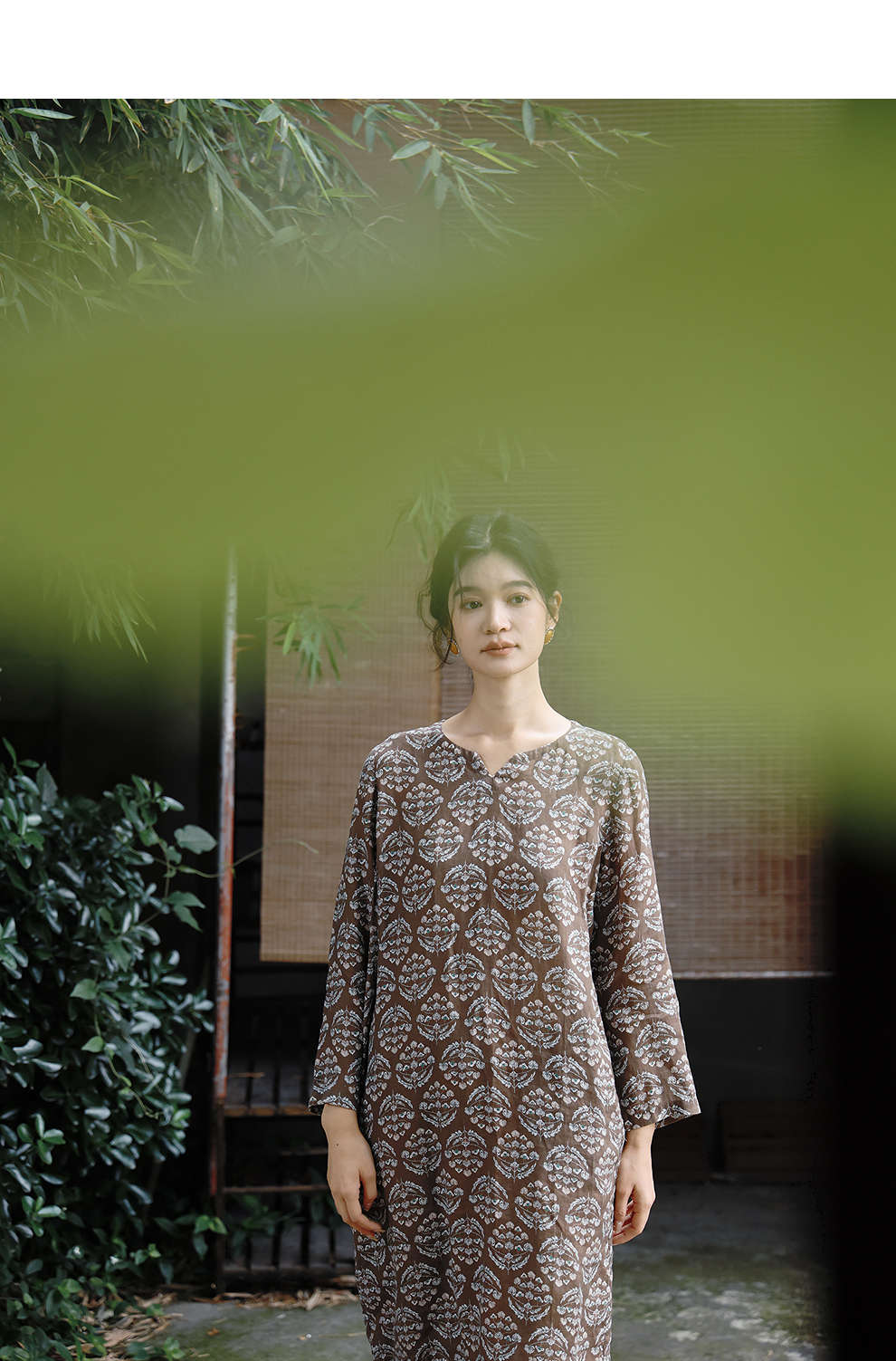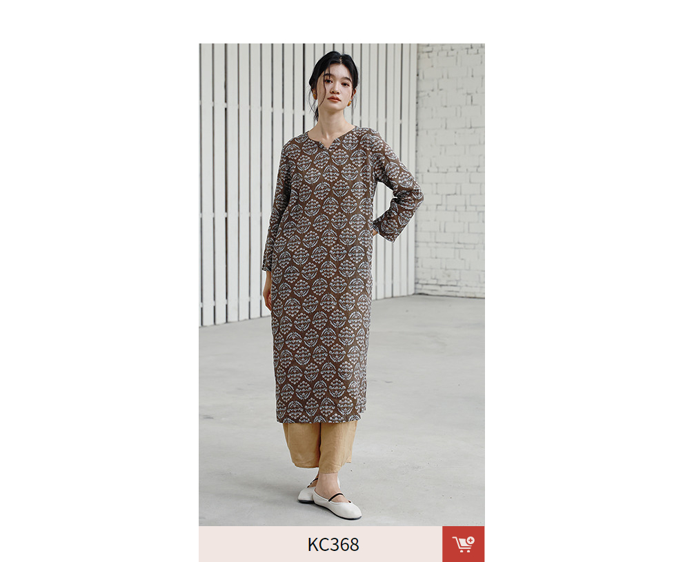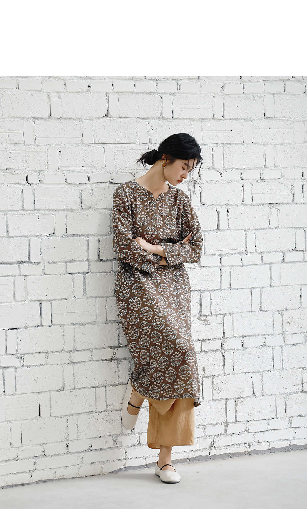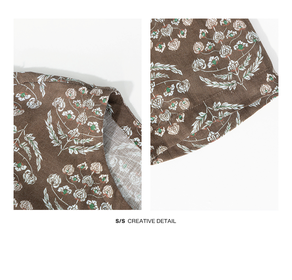 绽放旅行女装412朵/【莫兰迪系列】双支数亚麻底布印花长袖连衣裙