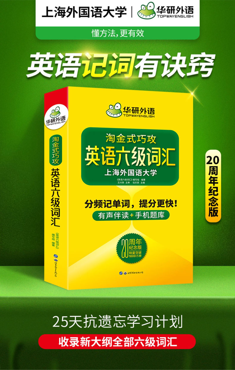 英语六级词汇 上海外国语大学CET6级单词20周年纪念版 可搭华研外语六级真题作文听力阅读语法翻译预测