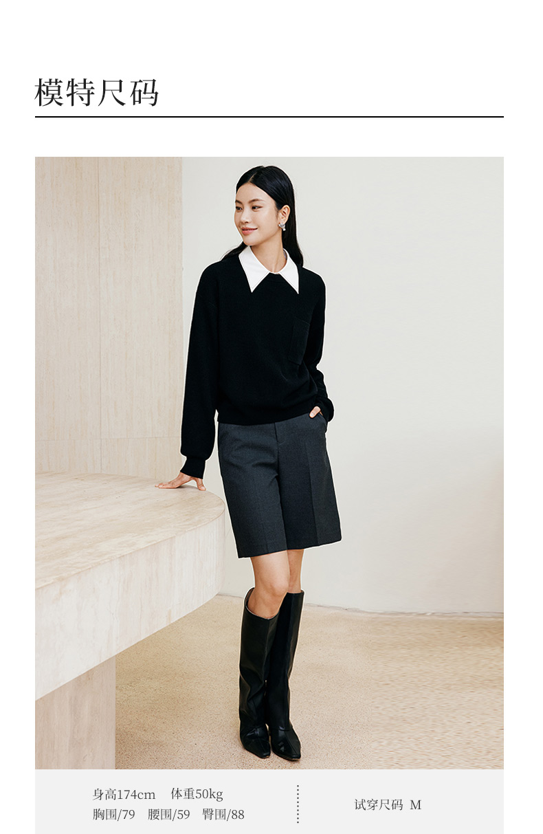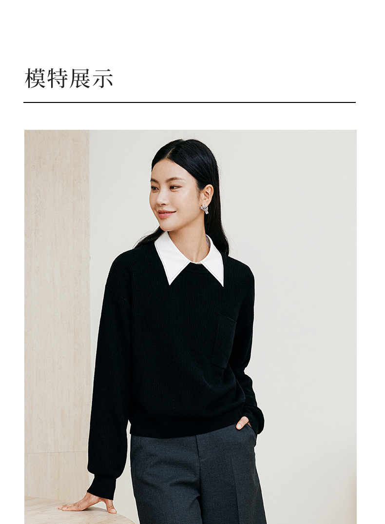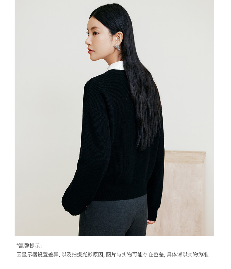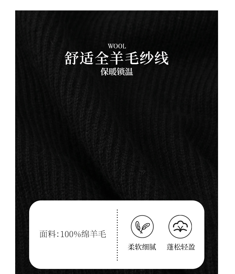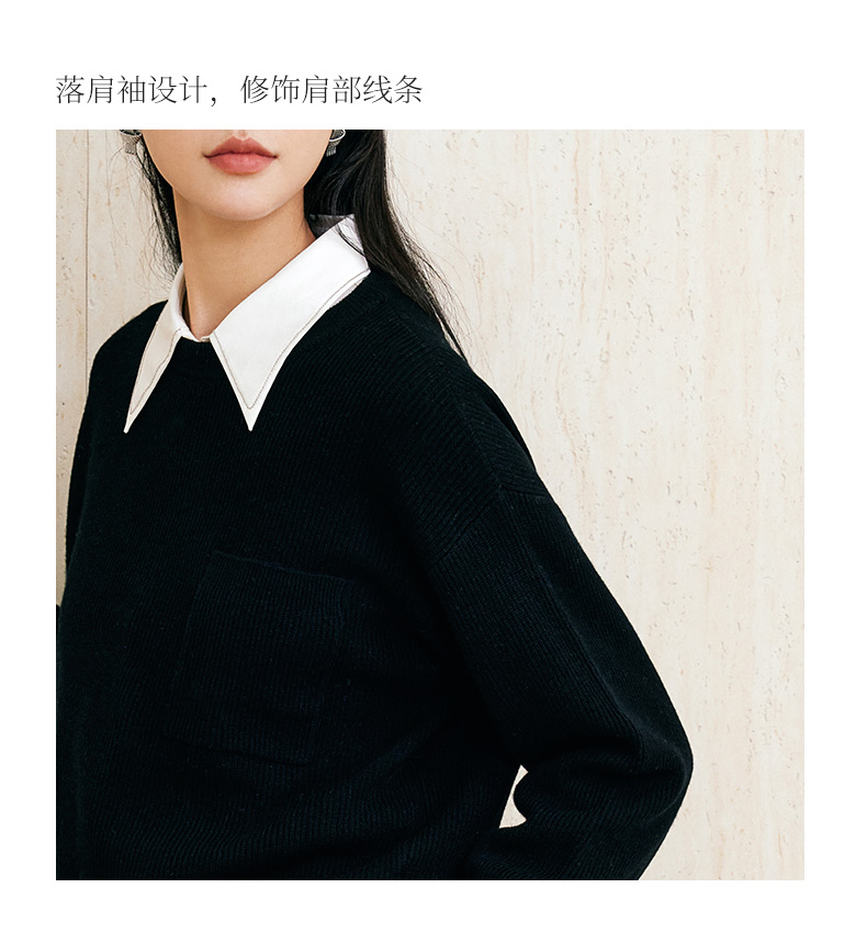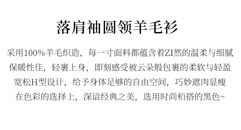 玳莎全羊毛落肩袖毛衣女2024年冬季新款宽松慵懒风黑色针织衫上衣 ED33315
