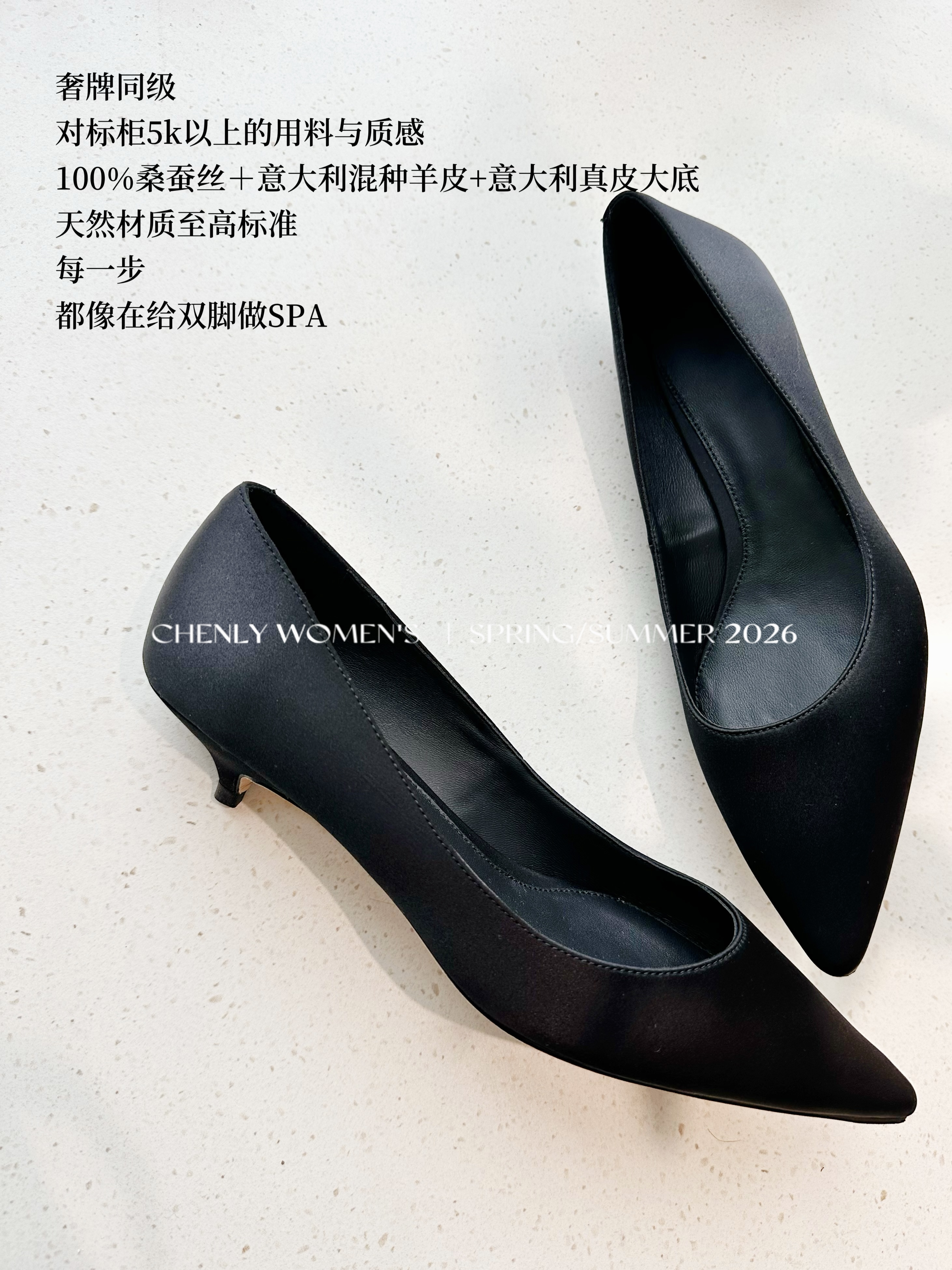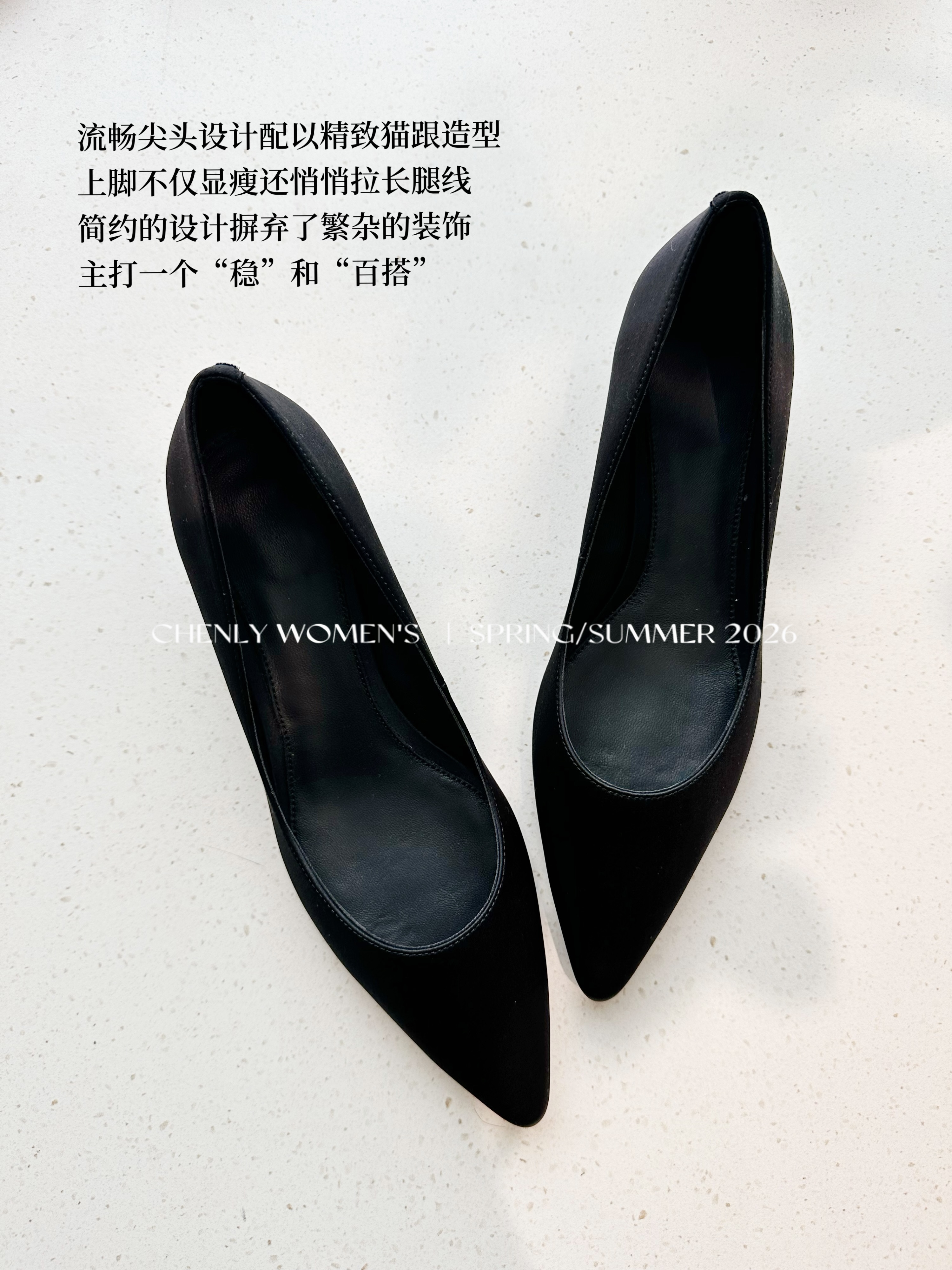 尘衣|26SS极简优雅尖头猫跟单鞋