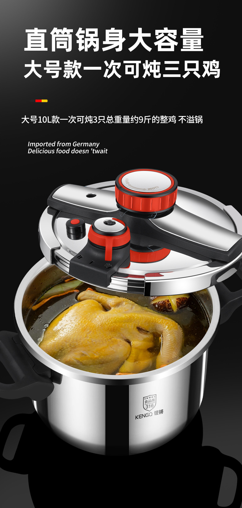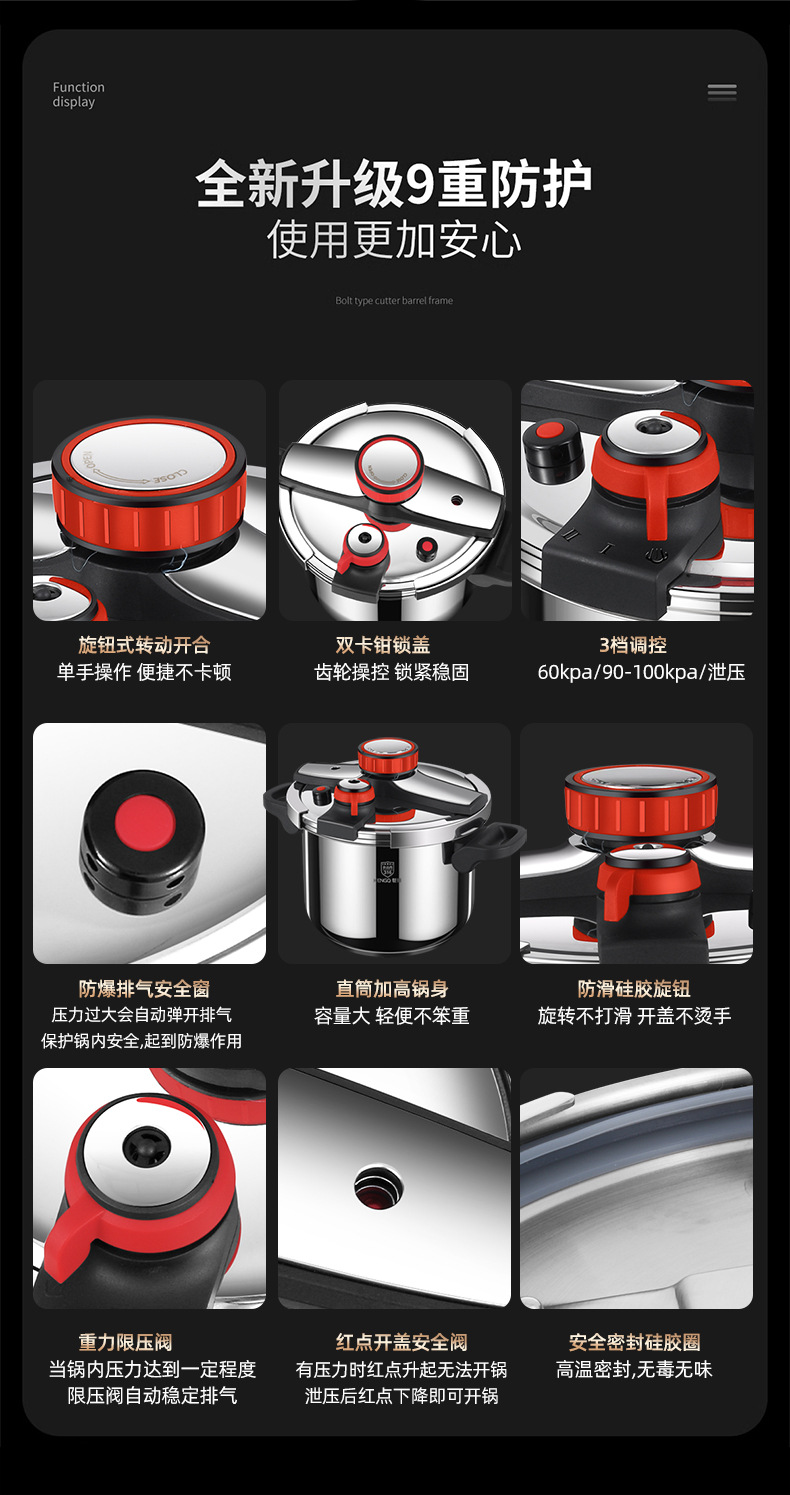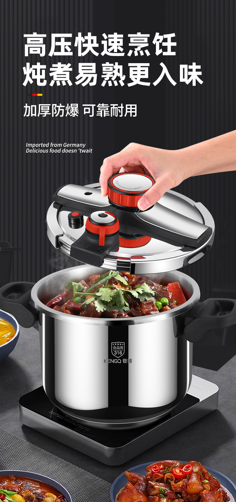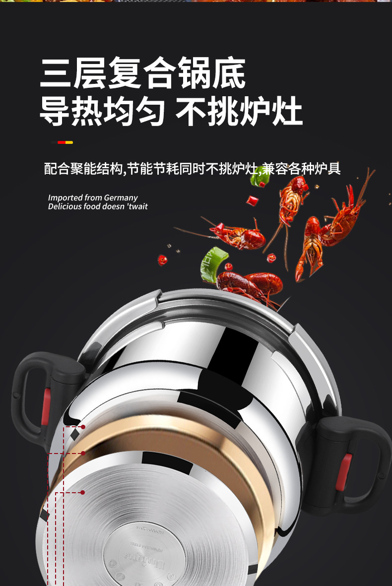 德国316不锈钢高压锅加厚家用防爆新款高端高压锅电压力锅