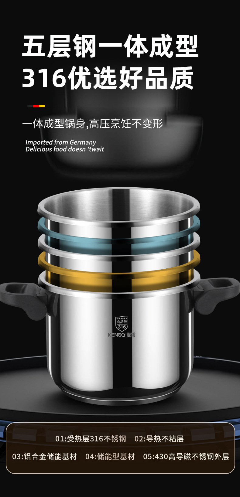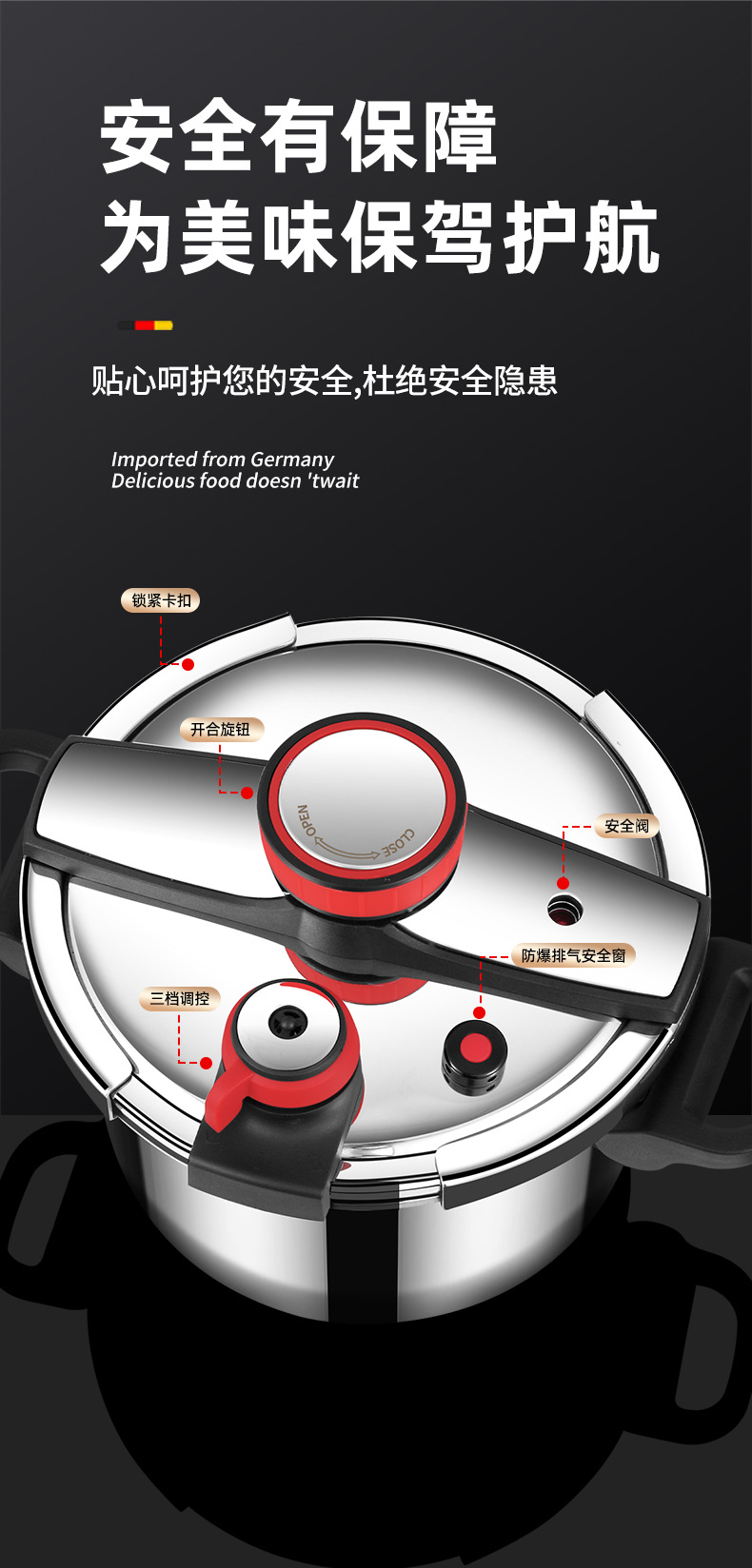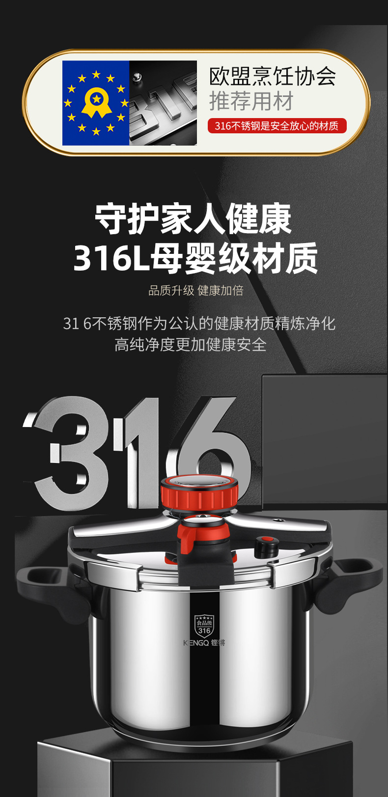 德国316不锈钢高压锅加厚家用防爆新款高端高压锅电压力锅