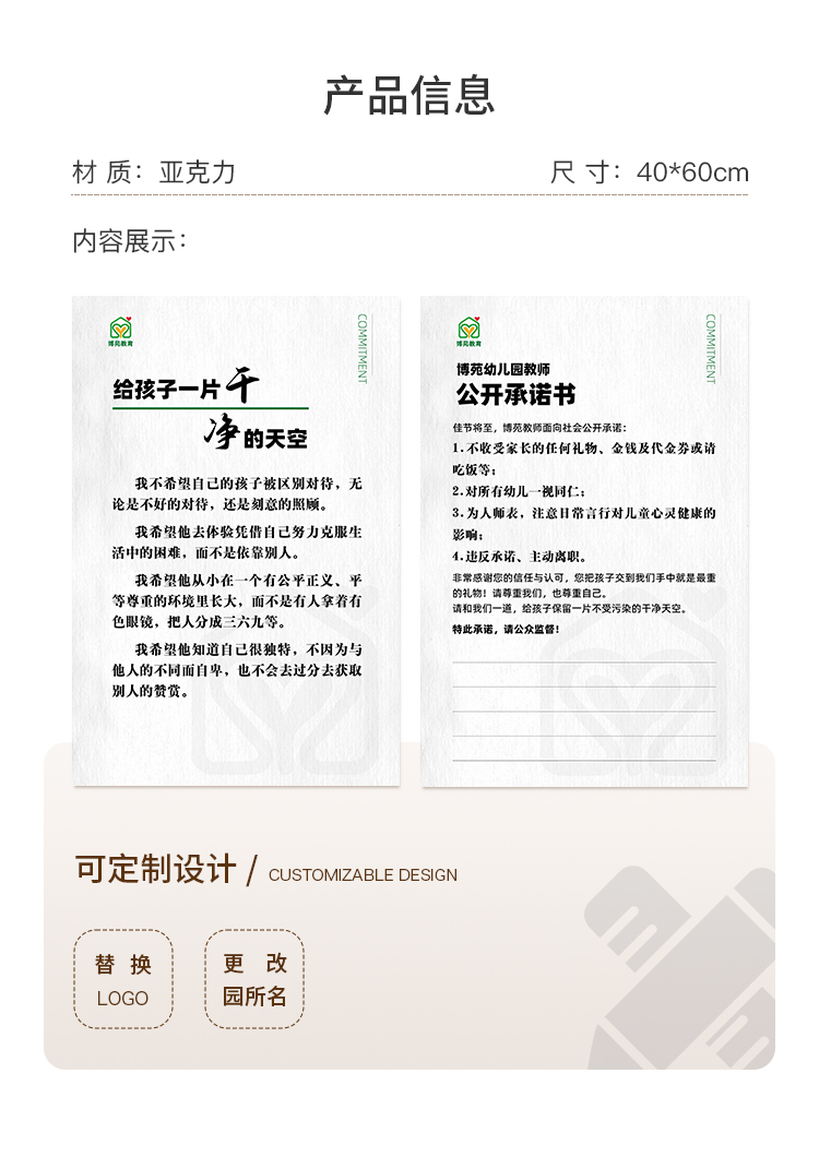 博苑幼儿园教师公开承诺书亚克力墙面文创 商品图4