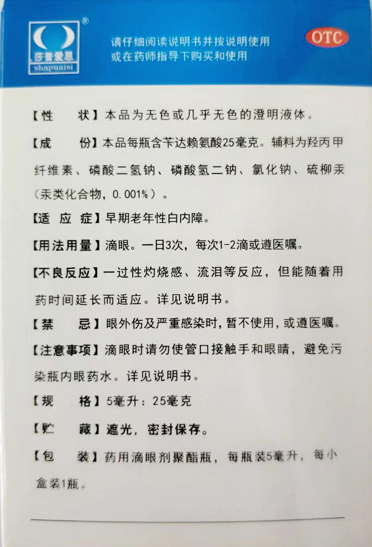 4.据报导,一过性刺激的发生率和强度与眼部的其他感染或炎症有关,建议眼部有感染或炎症的白内障患者在使用本品时,最好在医师指导下同时治疗上述眼疾。