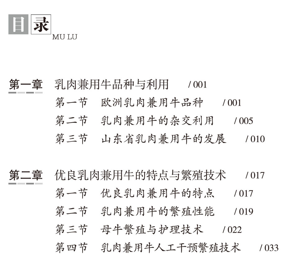 《乳肉兼用牛科学养殖技术》一书,全书共分七章,分别介绍了品种与繁育技术、饲料配制技术、养殖技术及常见病防治等。无论对山东省的乳肉兼用牛生产,还是对全国乳肉兼用牛生产均有重要的指导意义,也将引导生产者、研究者和管理以本书提供的技术为基础,不断创新、丰富和完善乳肉兼用牛的养殖技术,推进乳肉兼用牛产业的发展壮大。