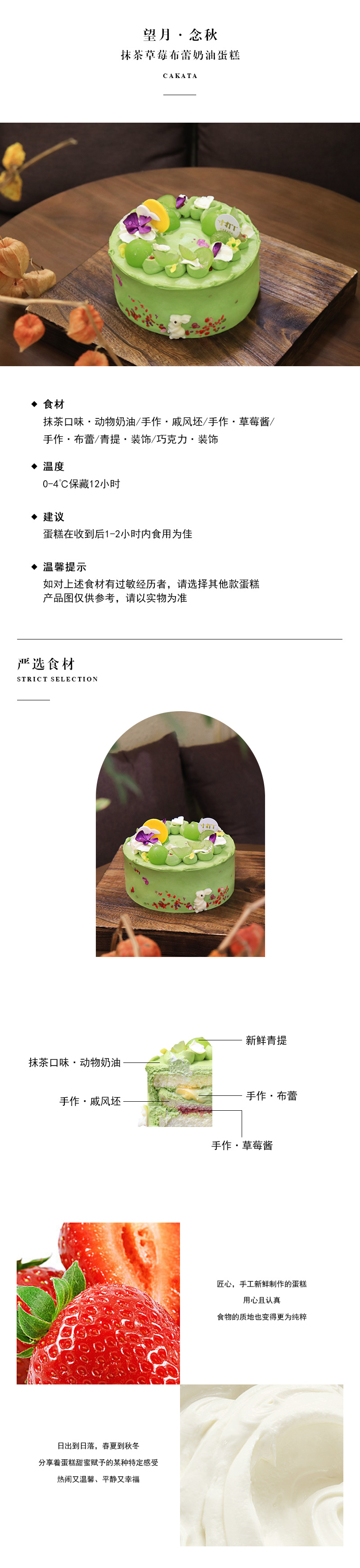 望月·念秋丨抹茶草莓布蕾奶油蛋糕(可备注少糖)