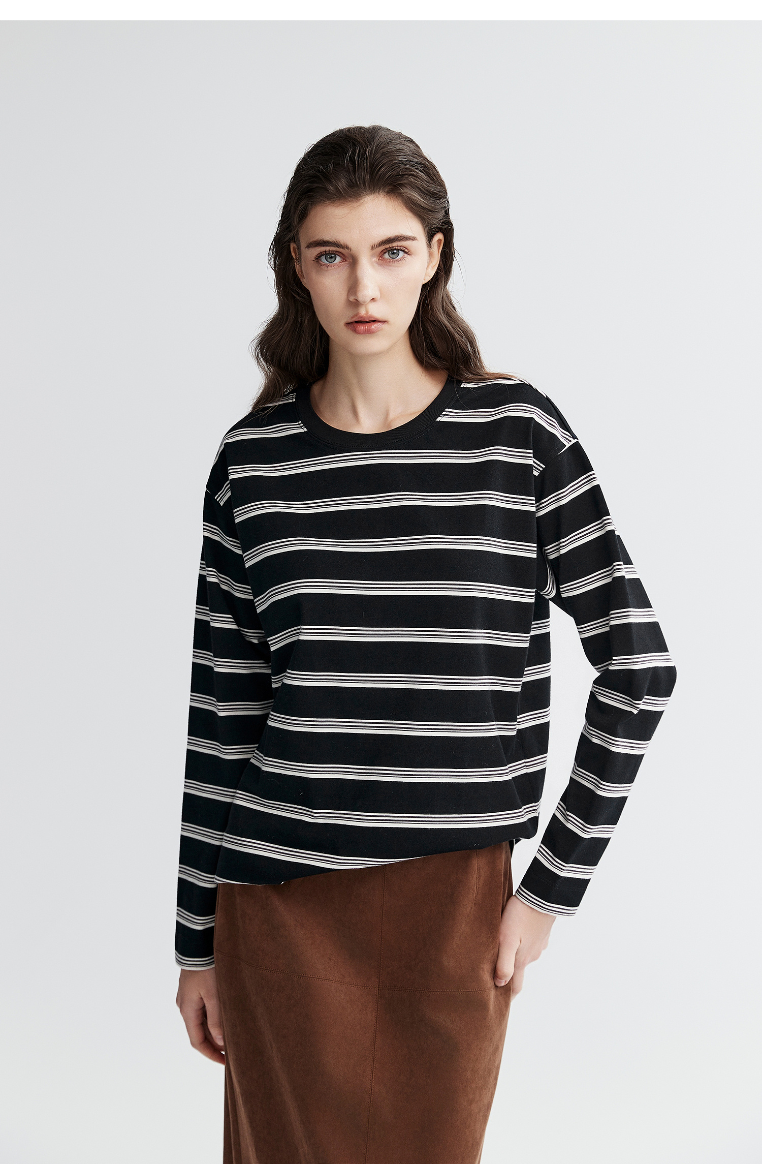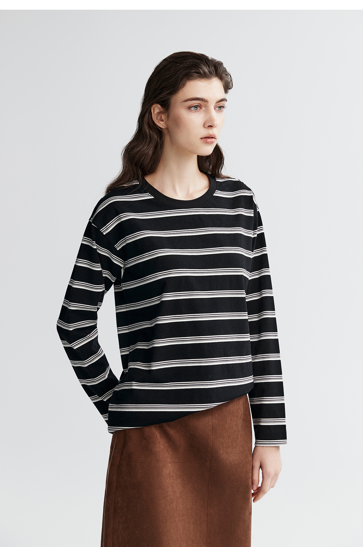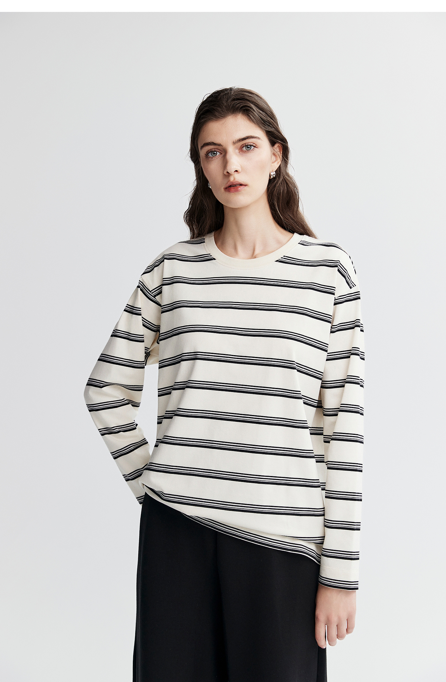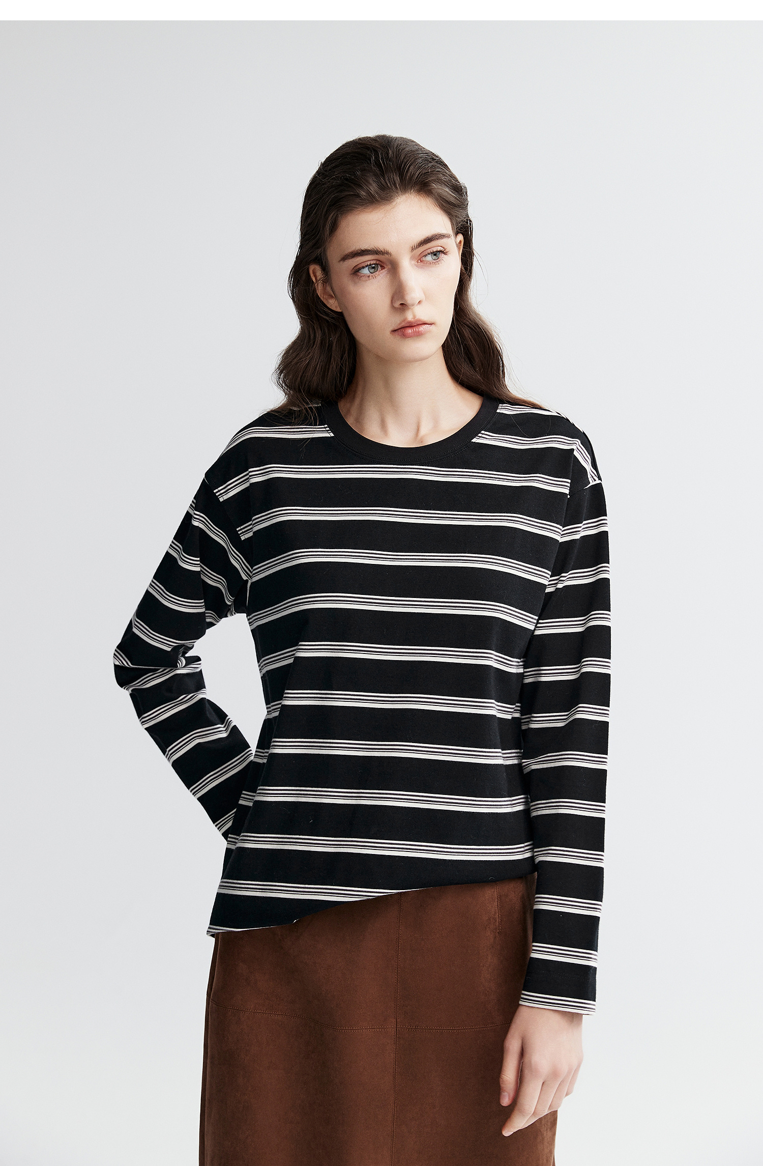 棉仓366601041-松川棉撞色粗条纹长T恤