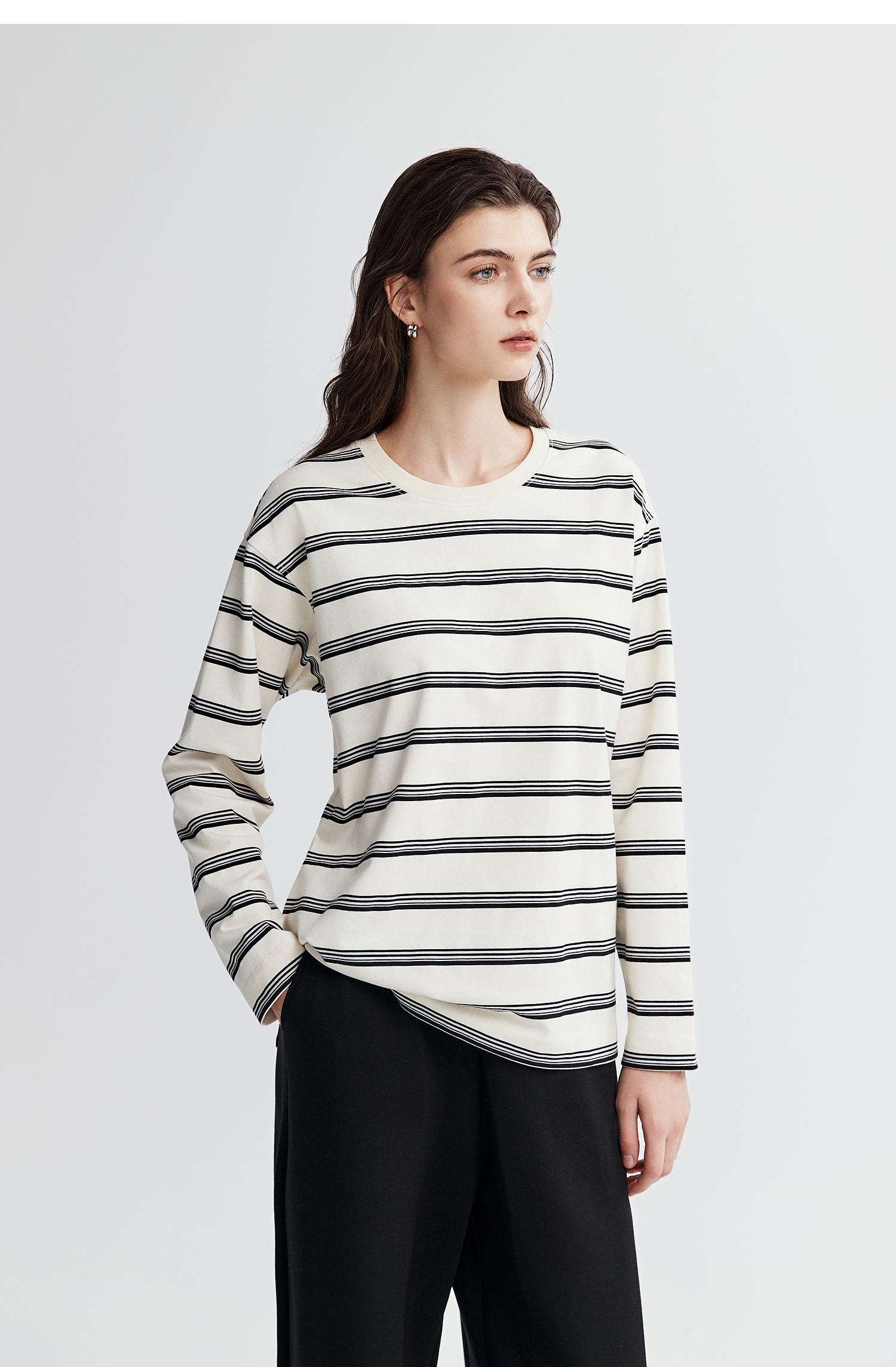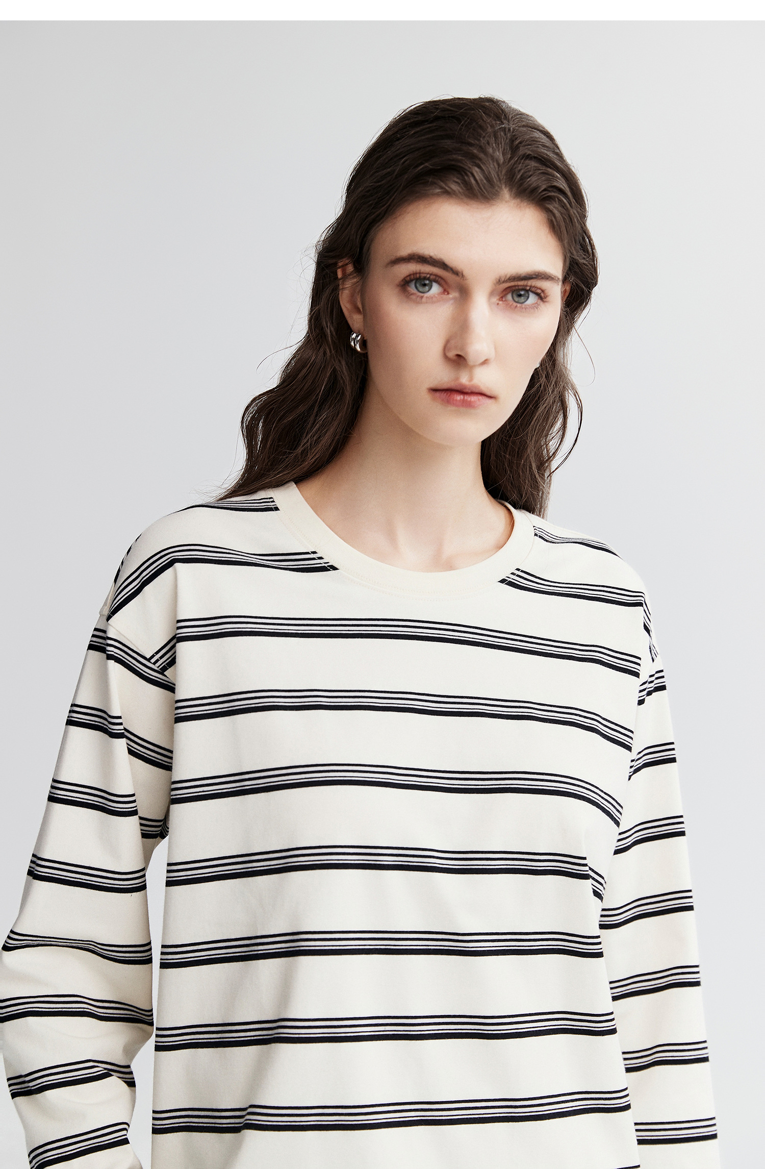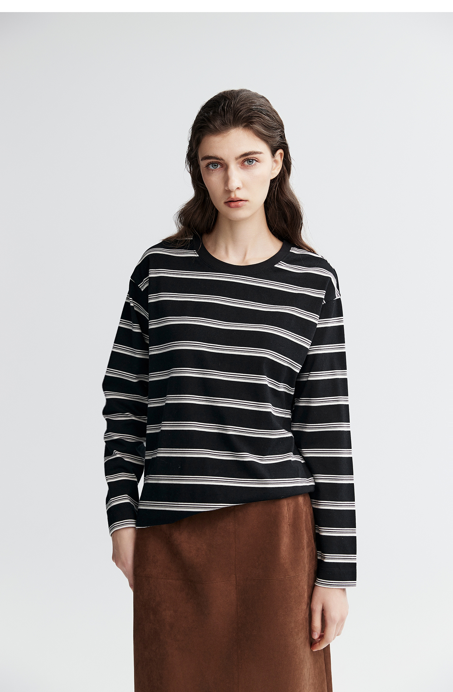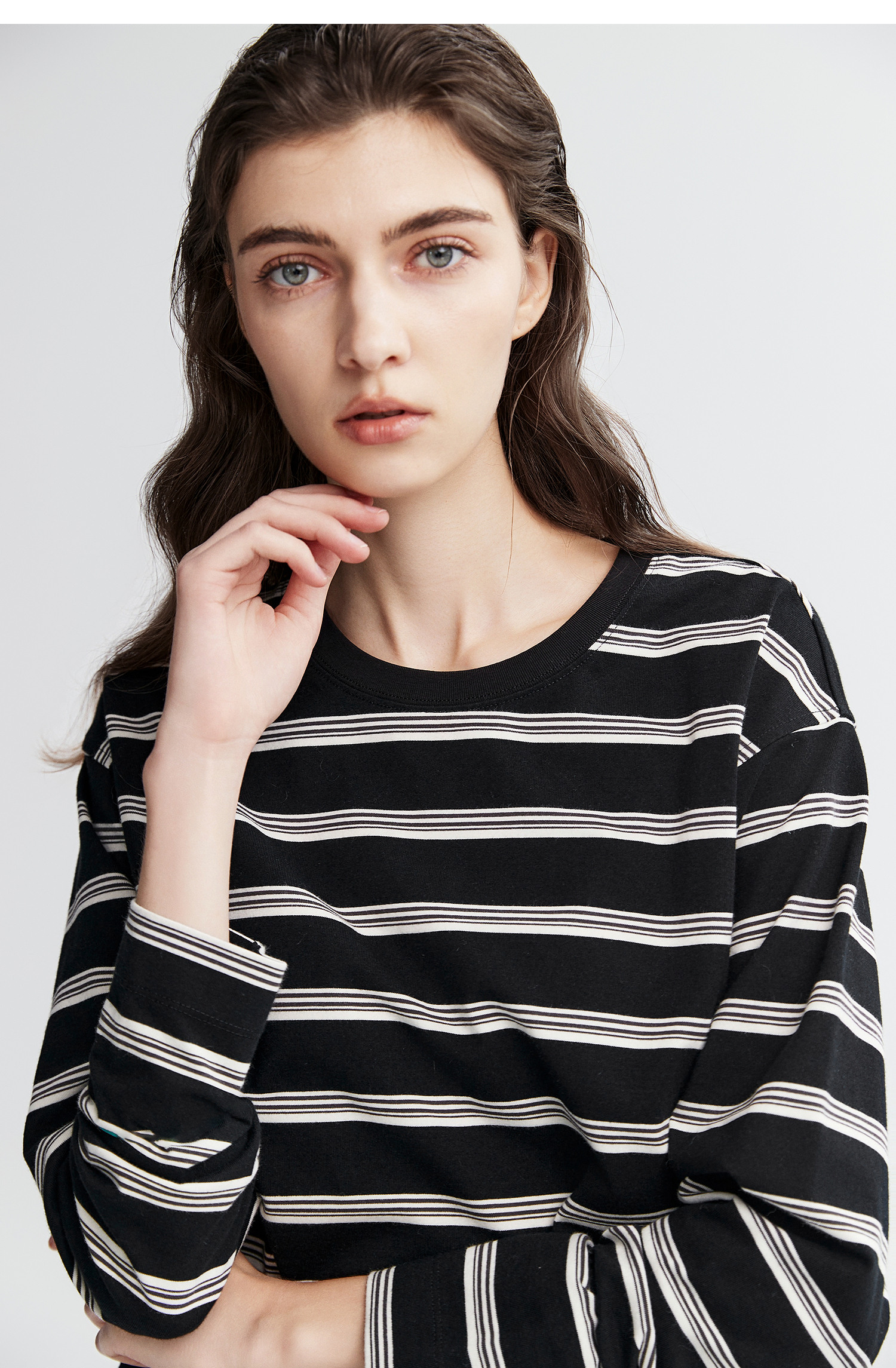 棉仓366601041-松川棉撞色粗条纹长T恤