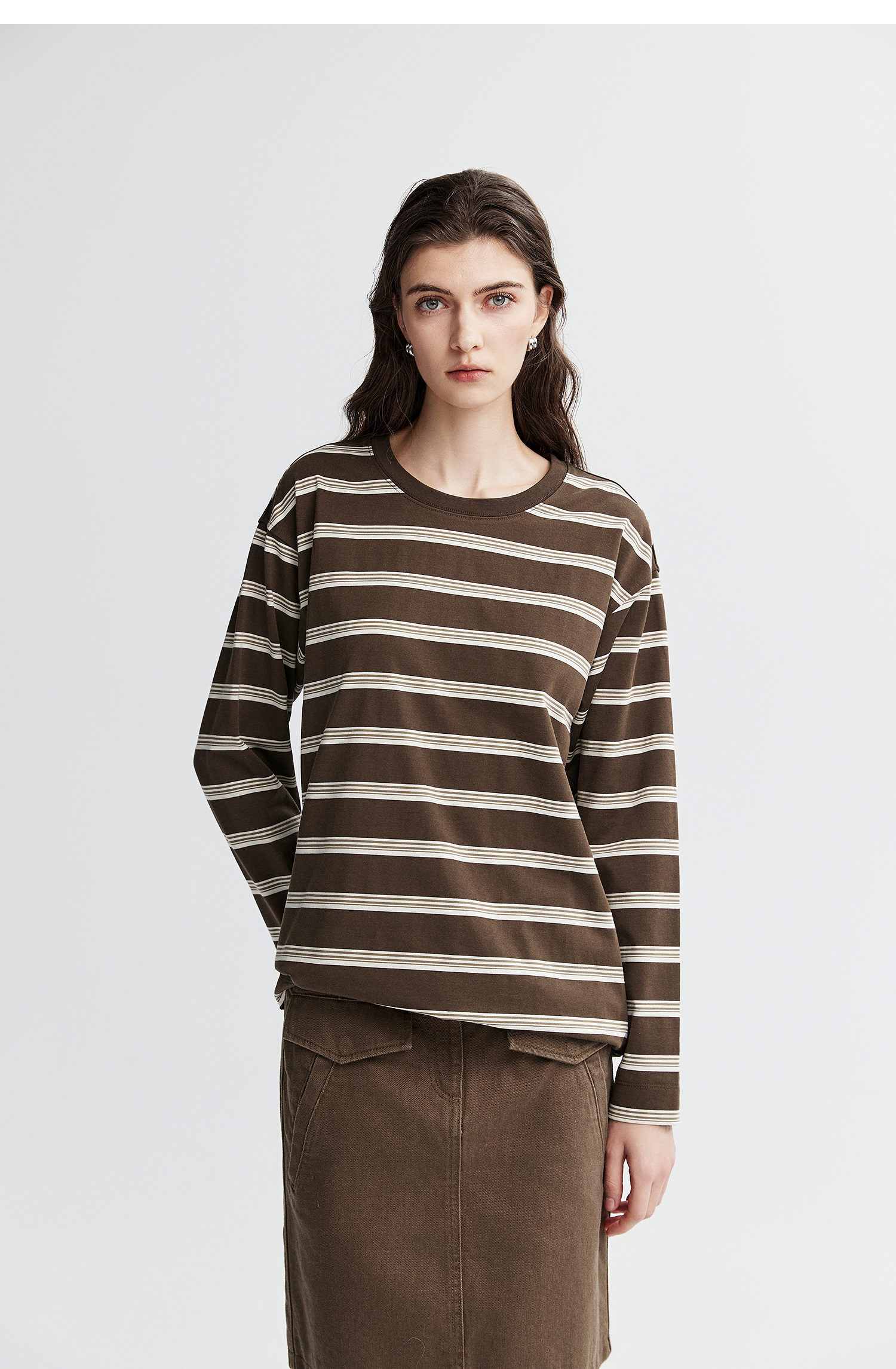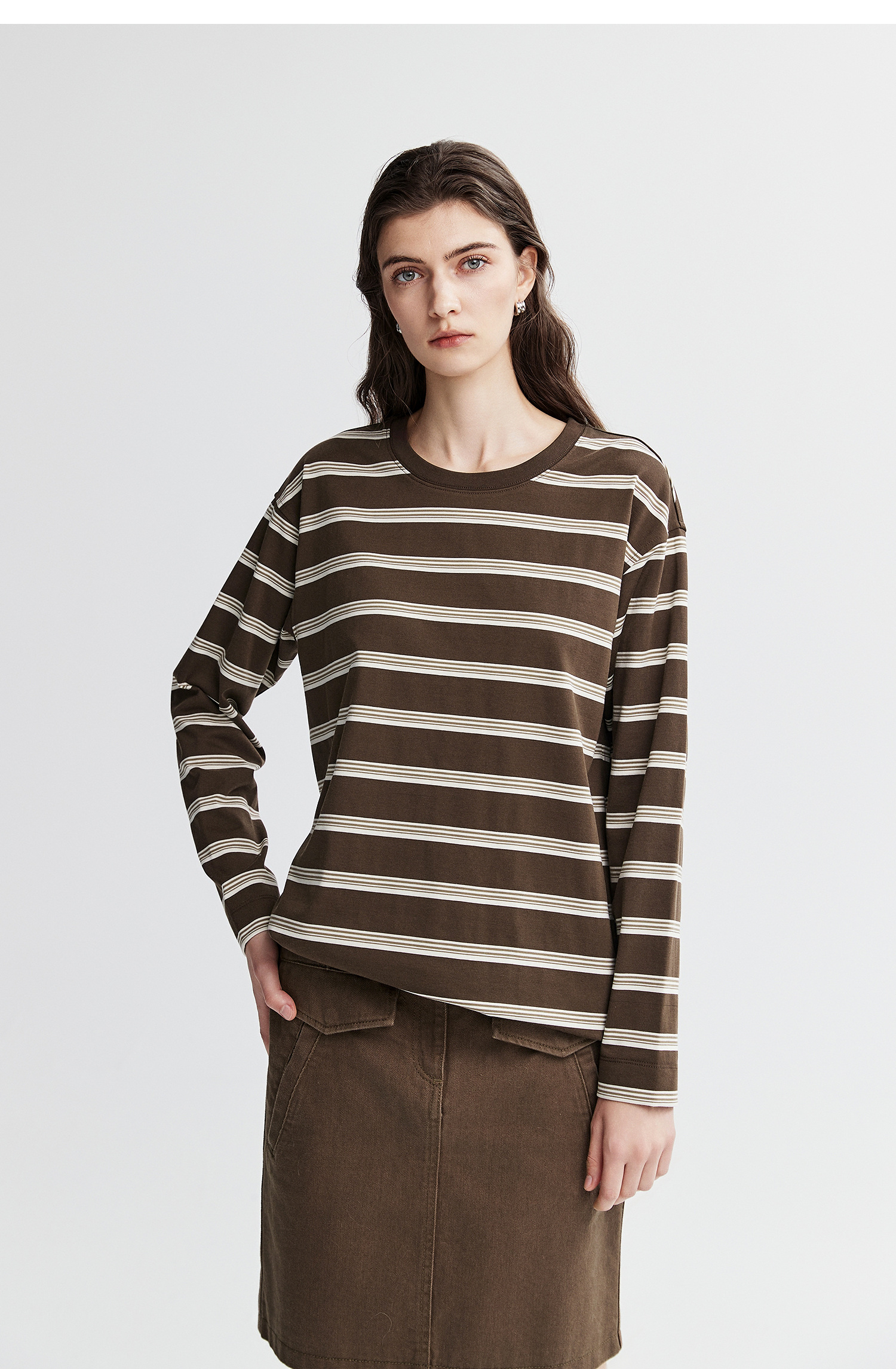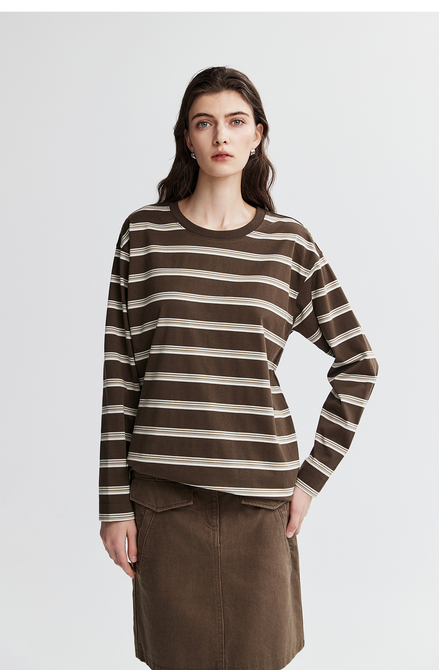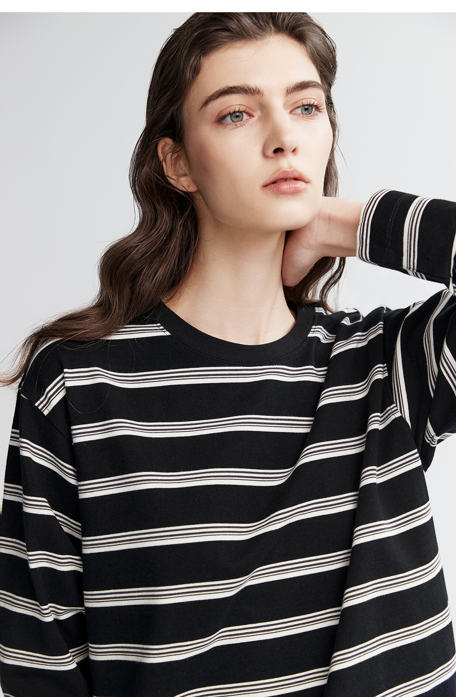 棉仓366601041-松川棉撞色粗条纹长T恤