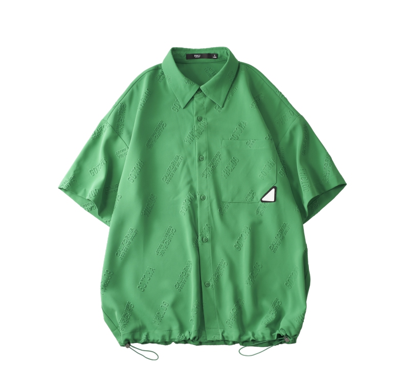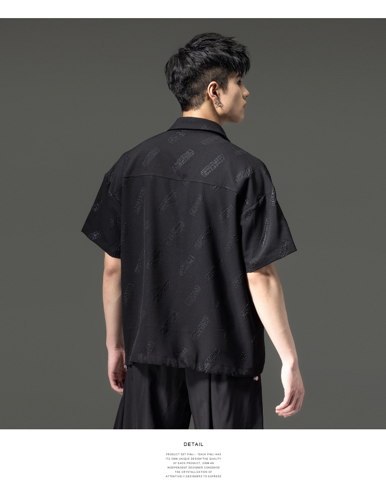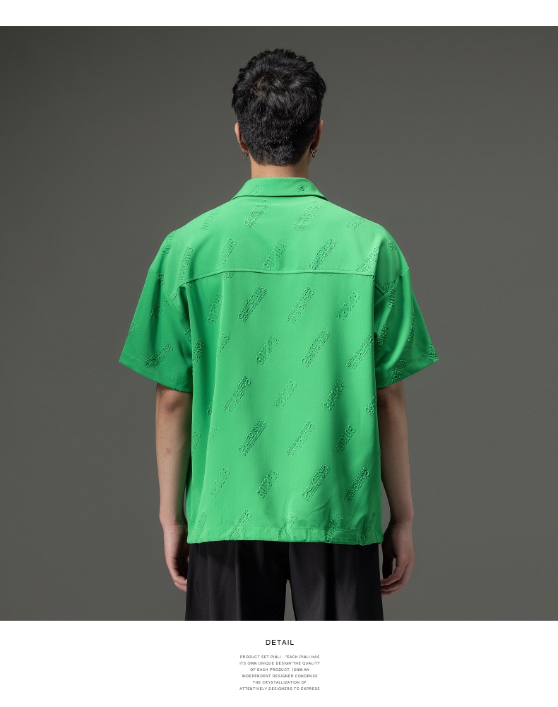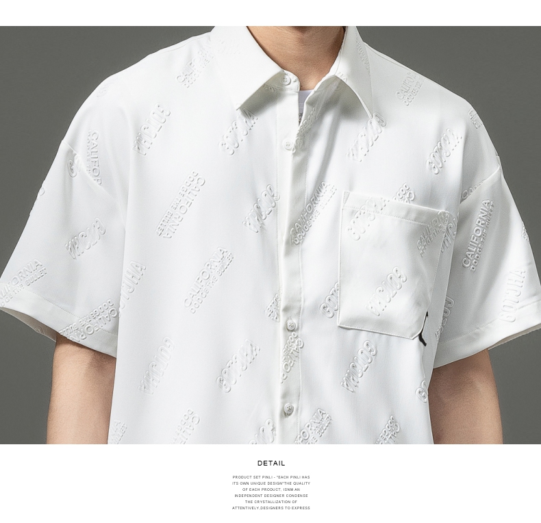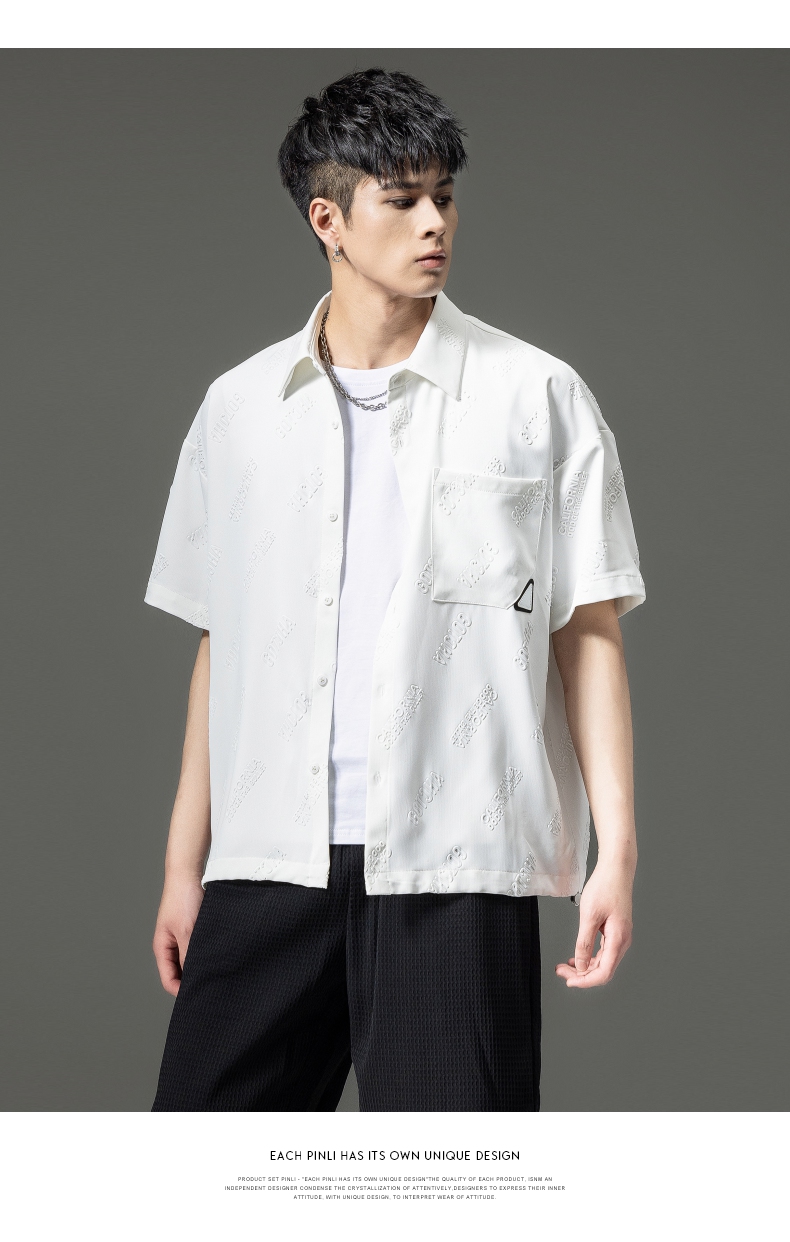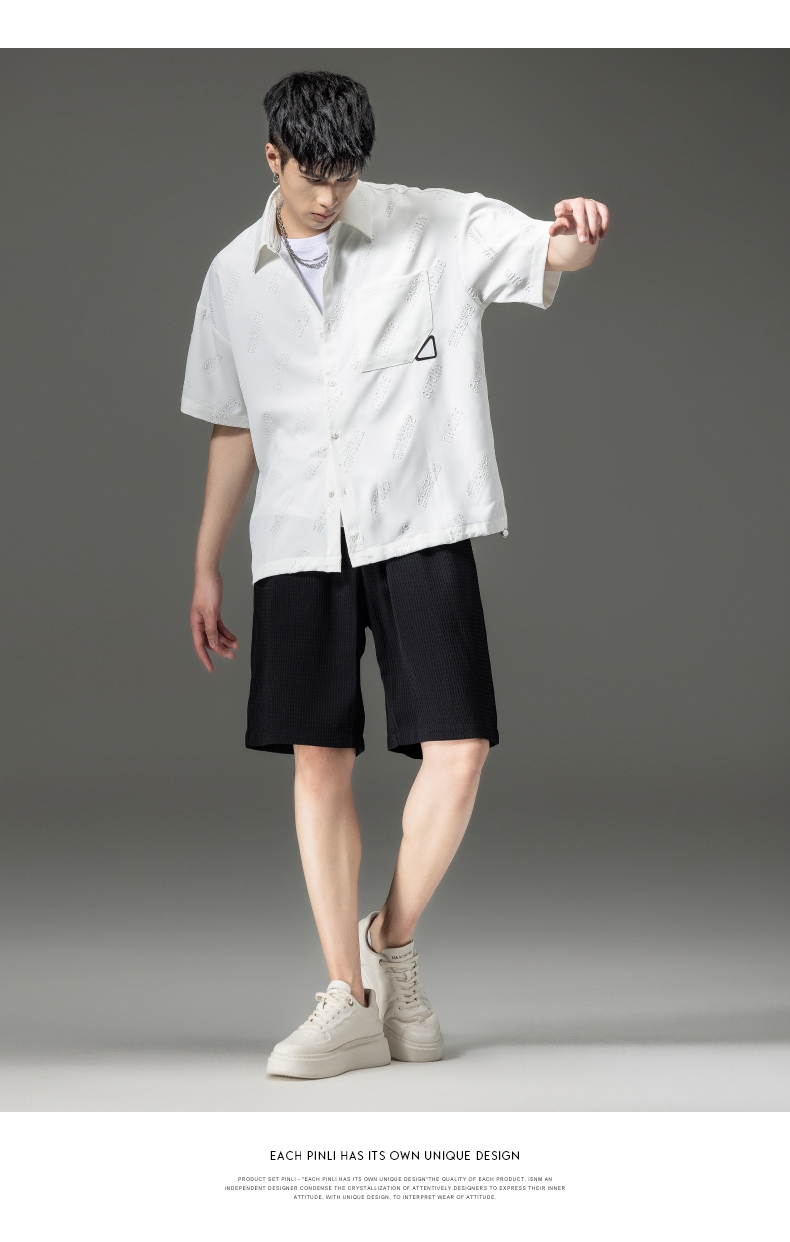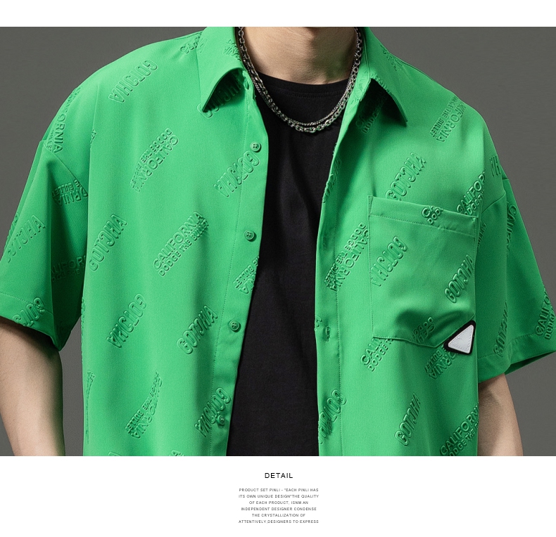 PINLI品立夏季新款纯色翻领衬衫潮牌字母短袖衬衣休闲男上衣B232113026
