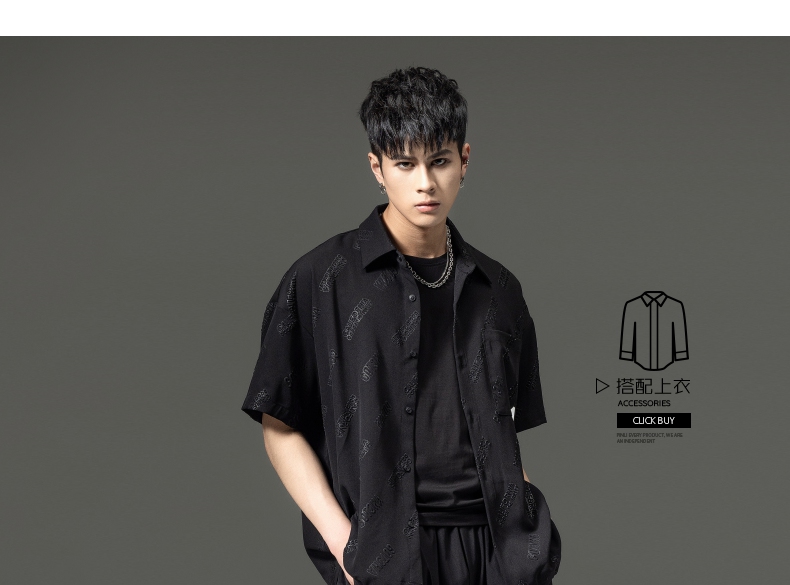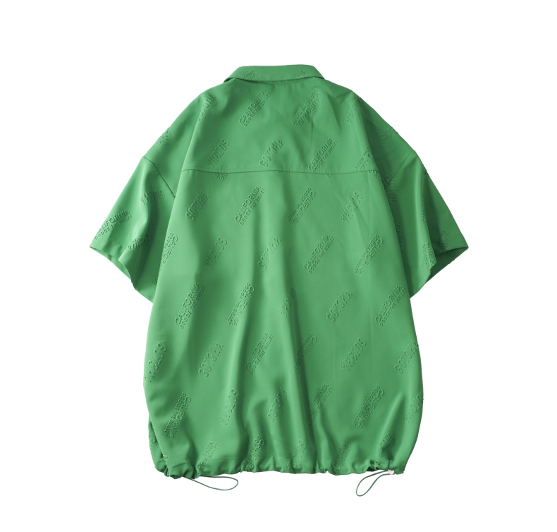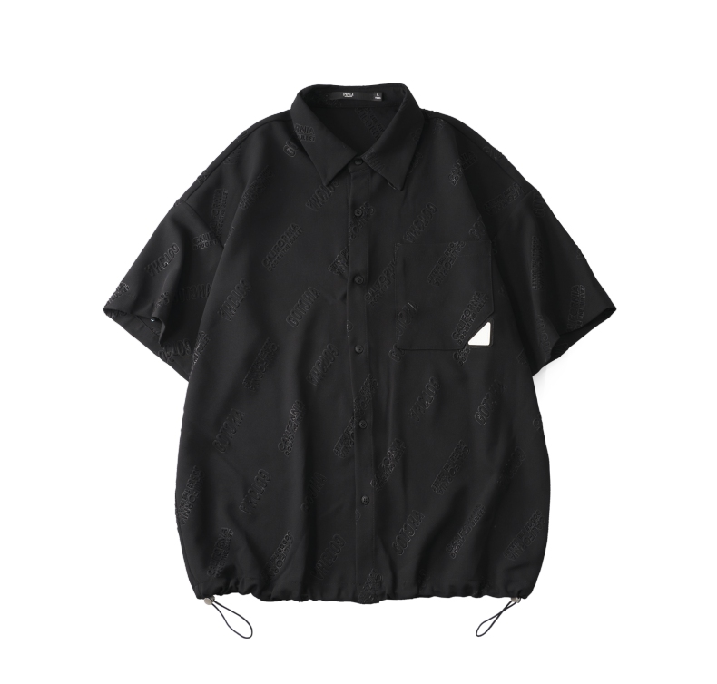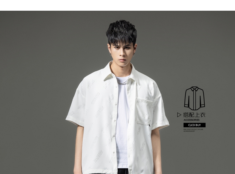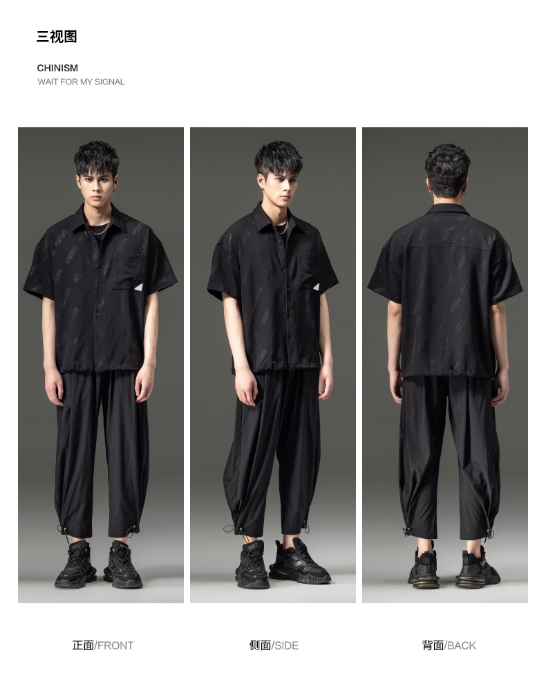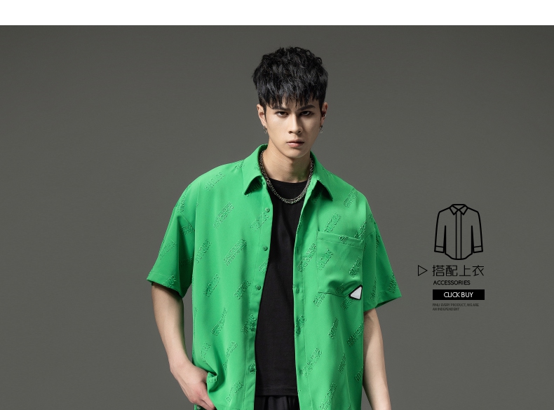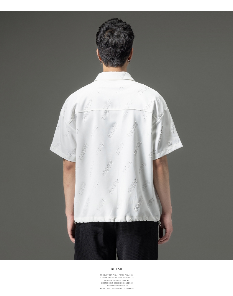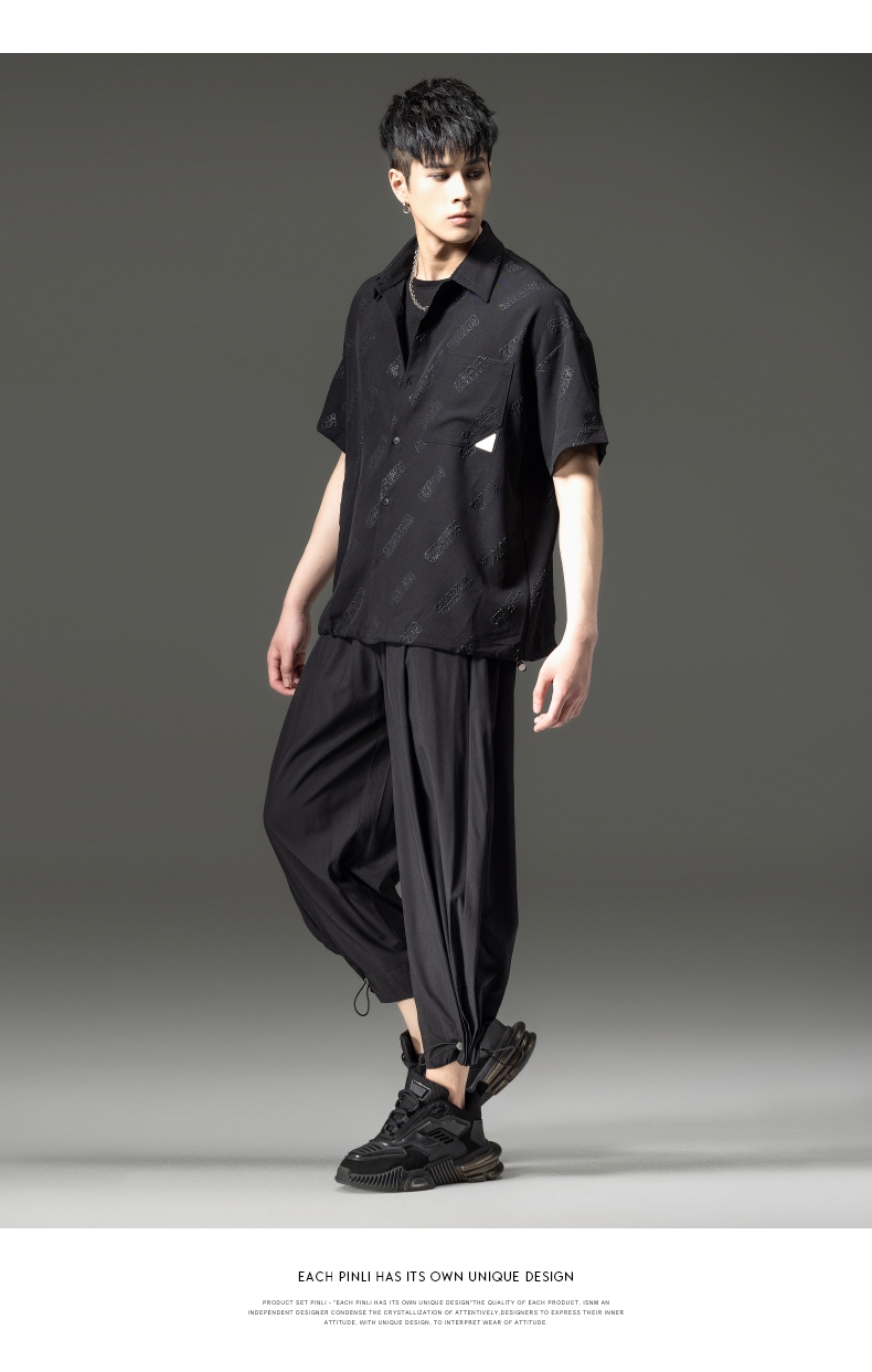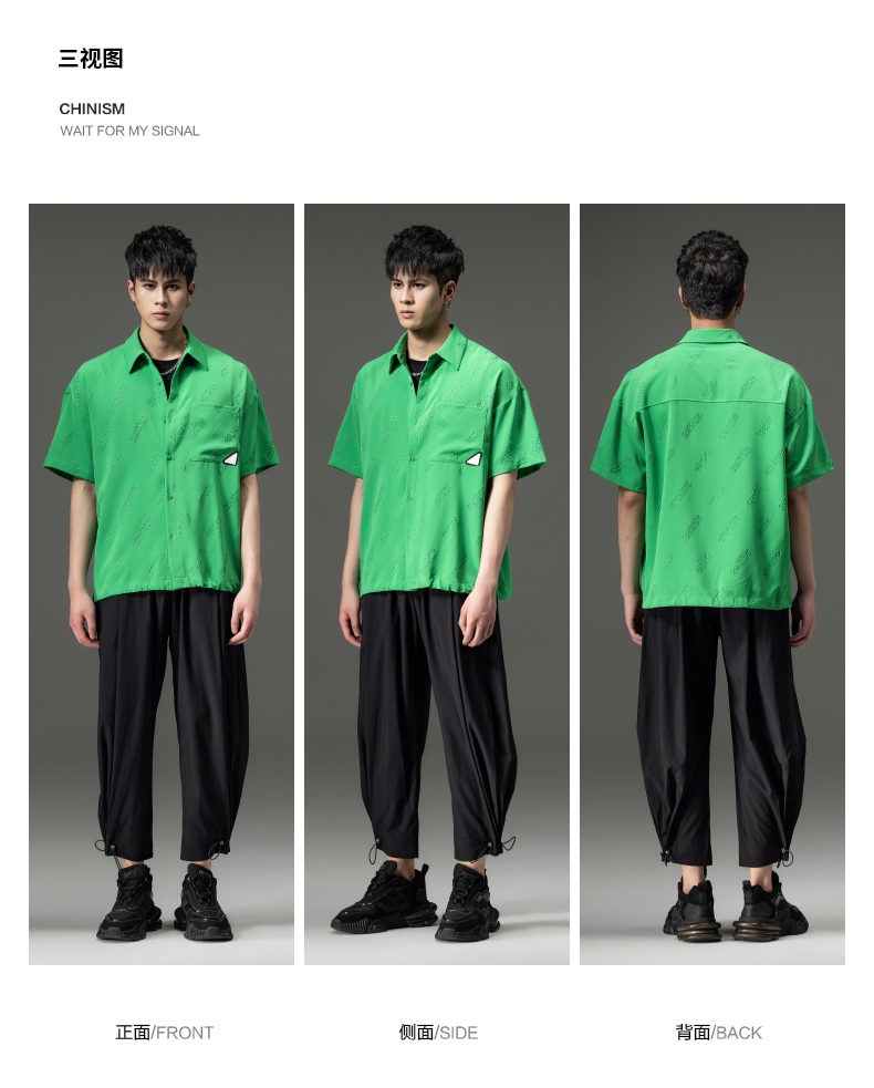 PINLI品立夏季新款纯色翻领衬衫潮牌字母短袖衬衣休闲男上衣B232113026