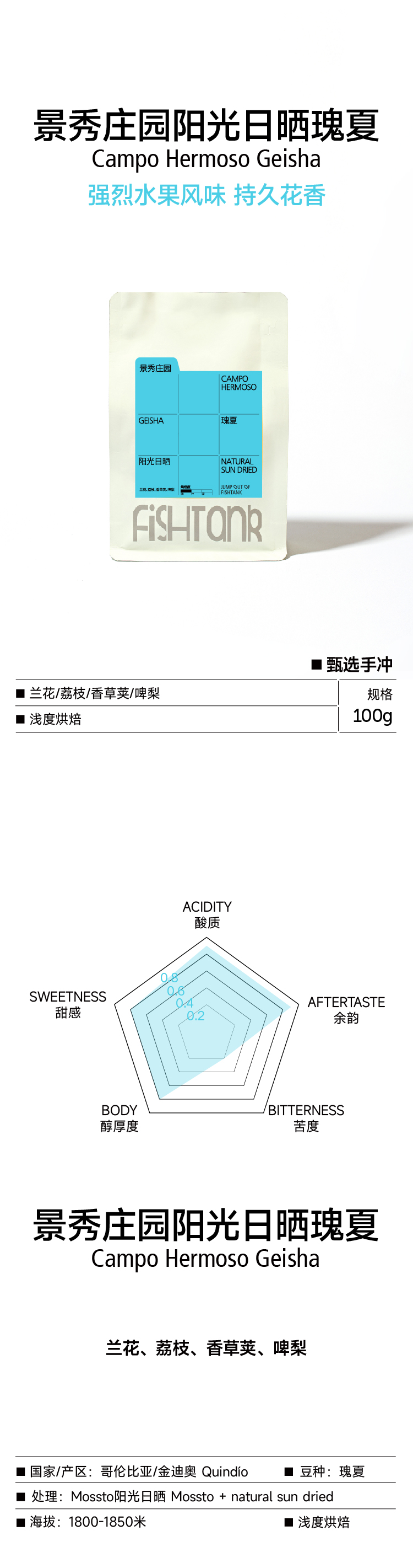 哥伦比亚景秀庄园阳光日晒瑰夏甄选手冲咖啡豆