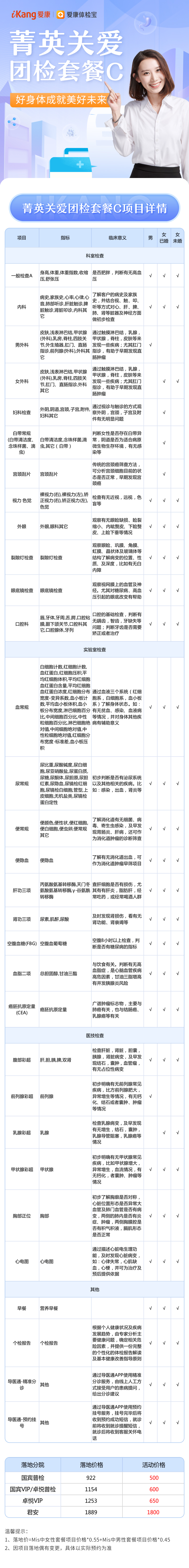 爱康 女神甄选体检套餐A(含AMH卵巢功能检测-适用于20岁以上女性)