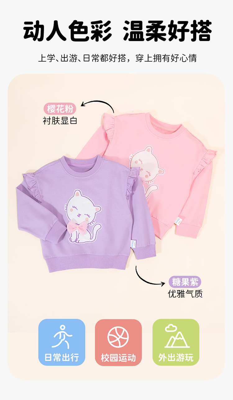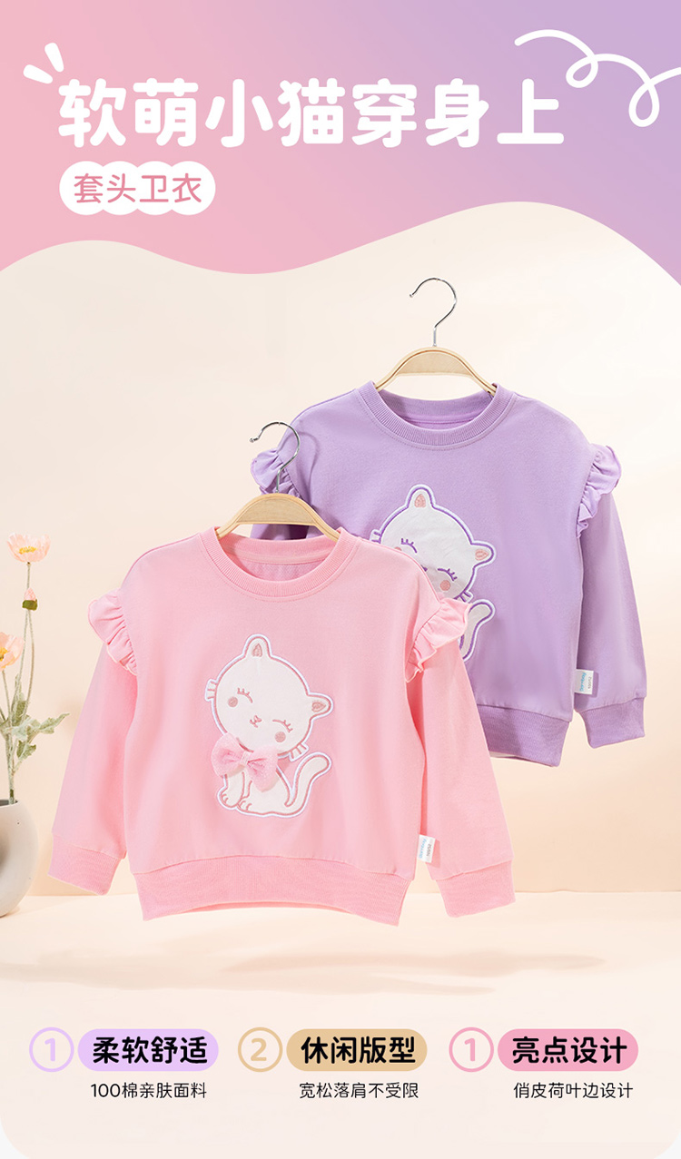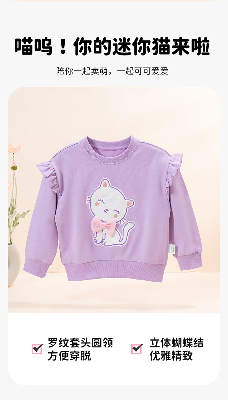 贝贝怡童装女童卫衣秋装2024新款洋气上衣儿童长袖纯棉春秋打底衫ZB3DS006