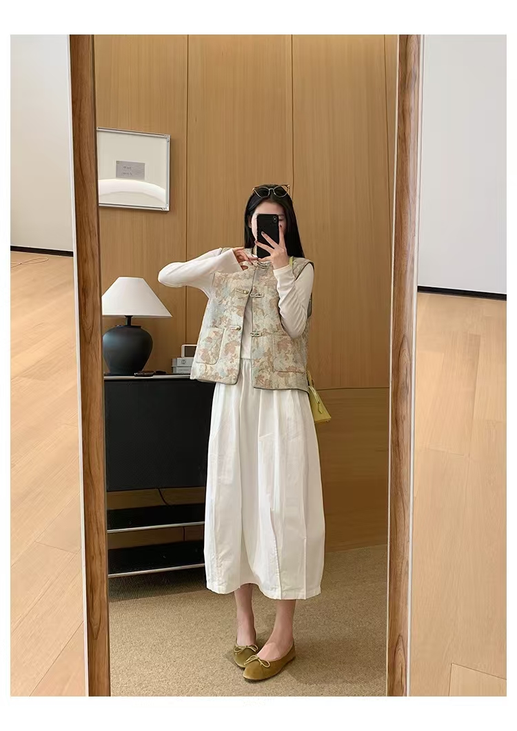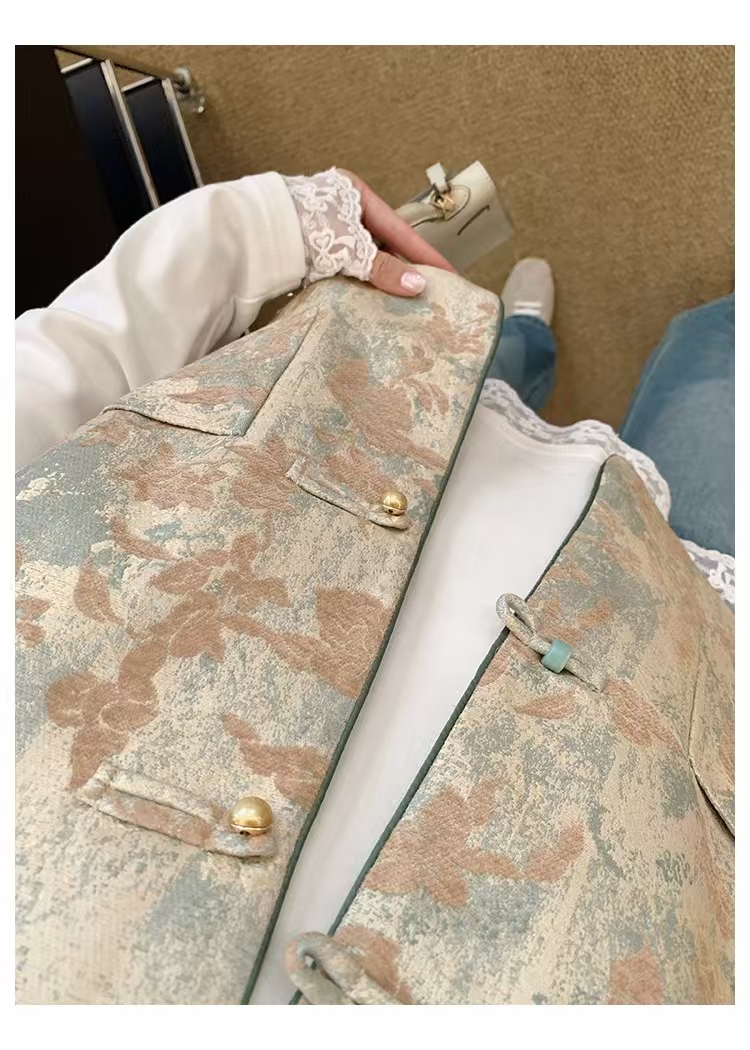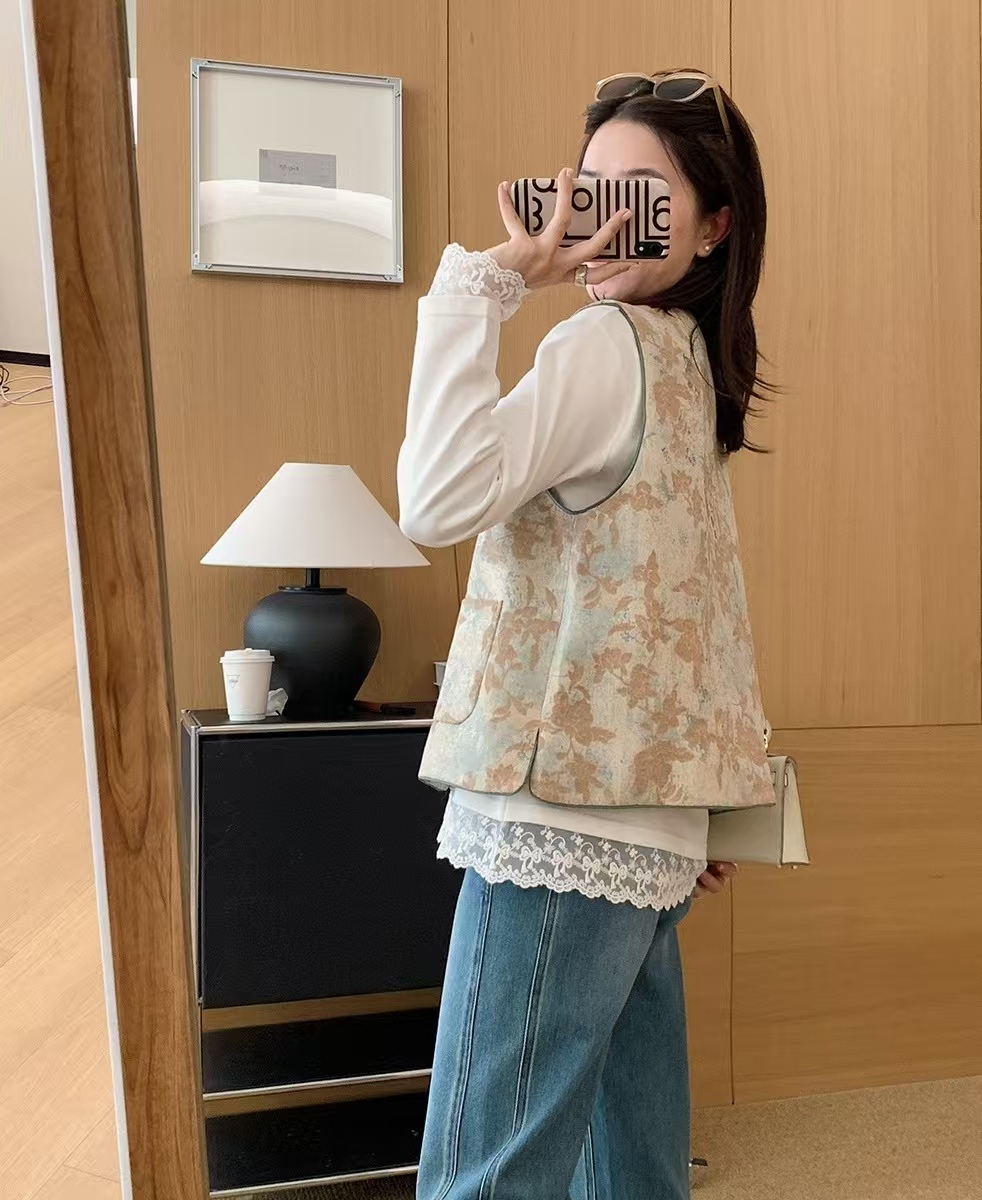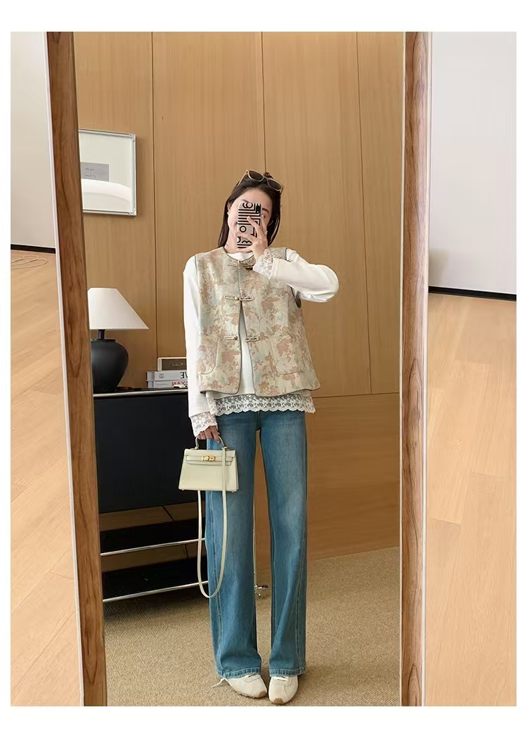 东方雅韵重工植绒提花盘扣压襟背心马甲!