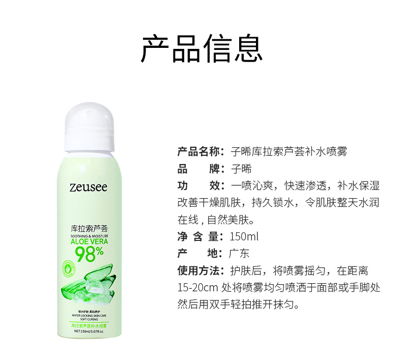 【温润补水!滋润干燥肌】库拉索芦荟补水喷雾 保湿定妆喷雾滋润提靓清爽肌肤爽肤水。ry