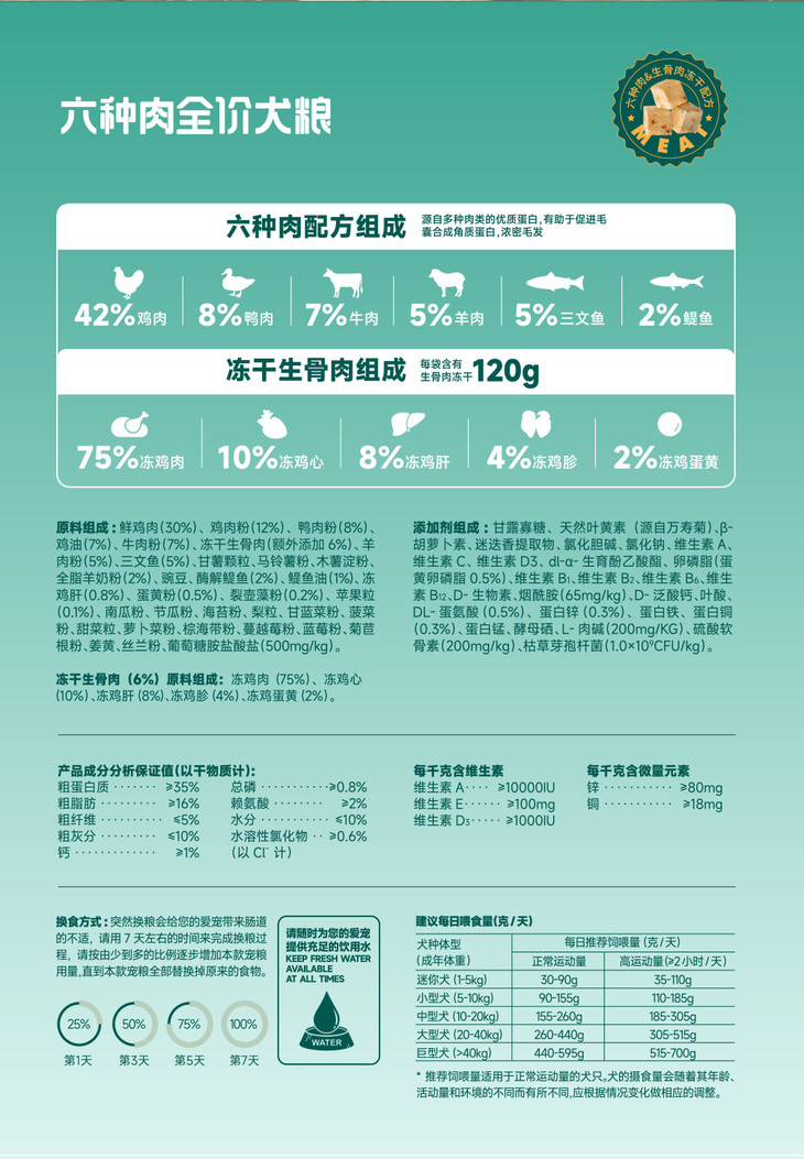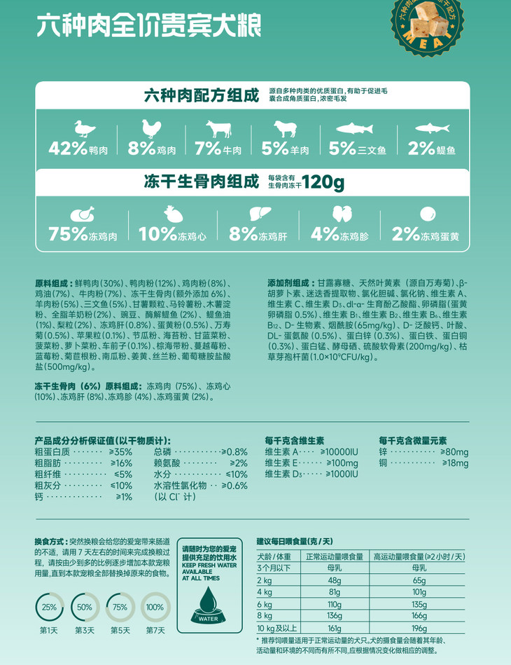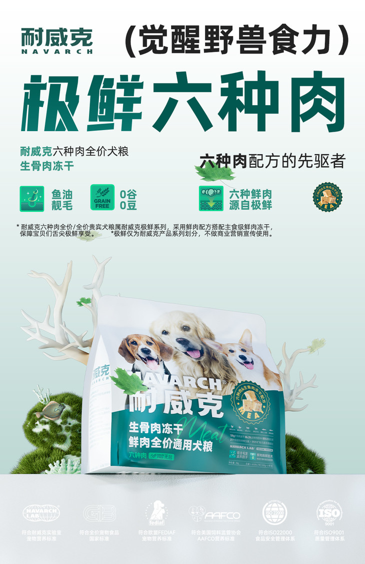 【周期购】【通用型六种肉】耐威克极鲜六种肉冻干犬粮
