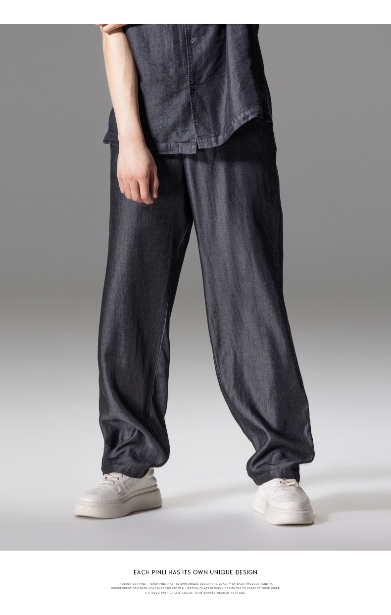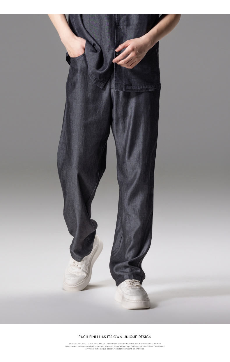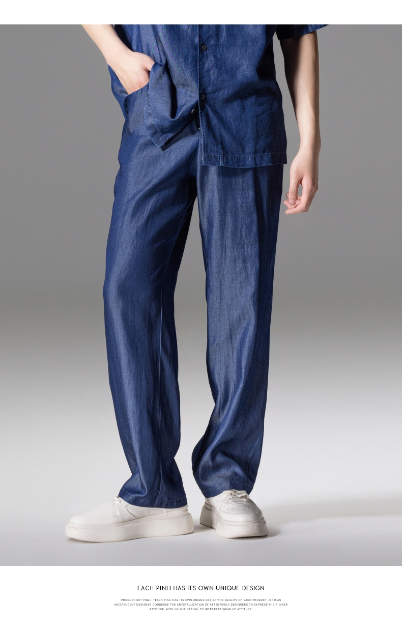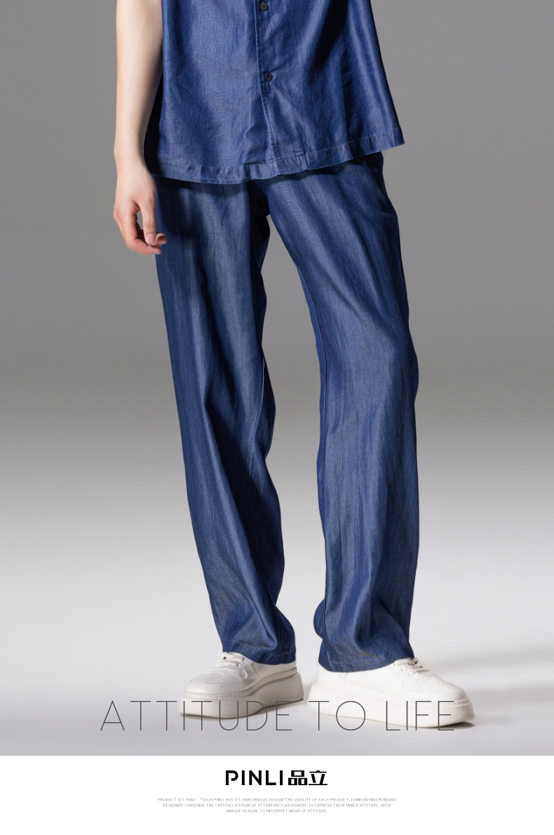 PINLI品立新款男高街夏季宽松牛仔长裤休闲直筒裤GD242316309