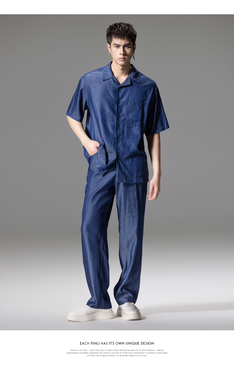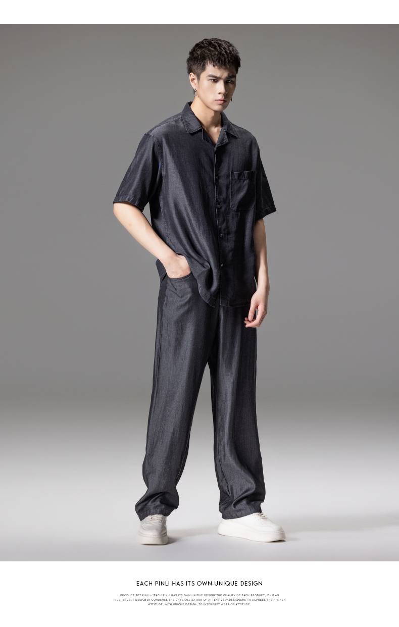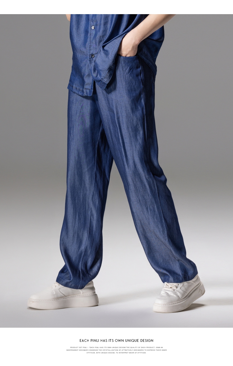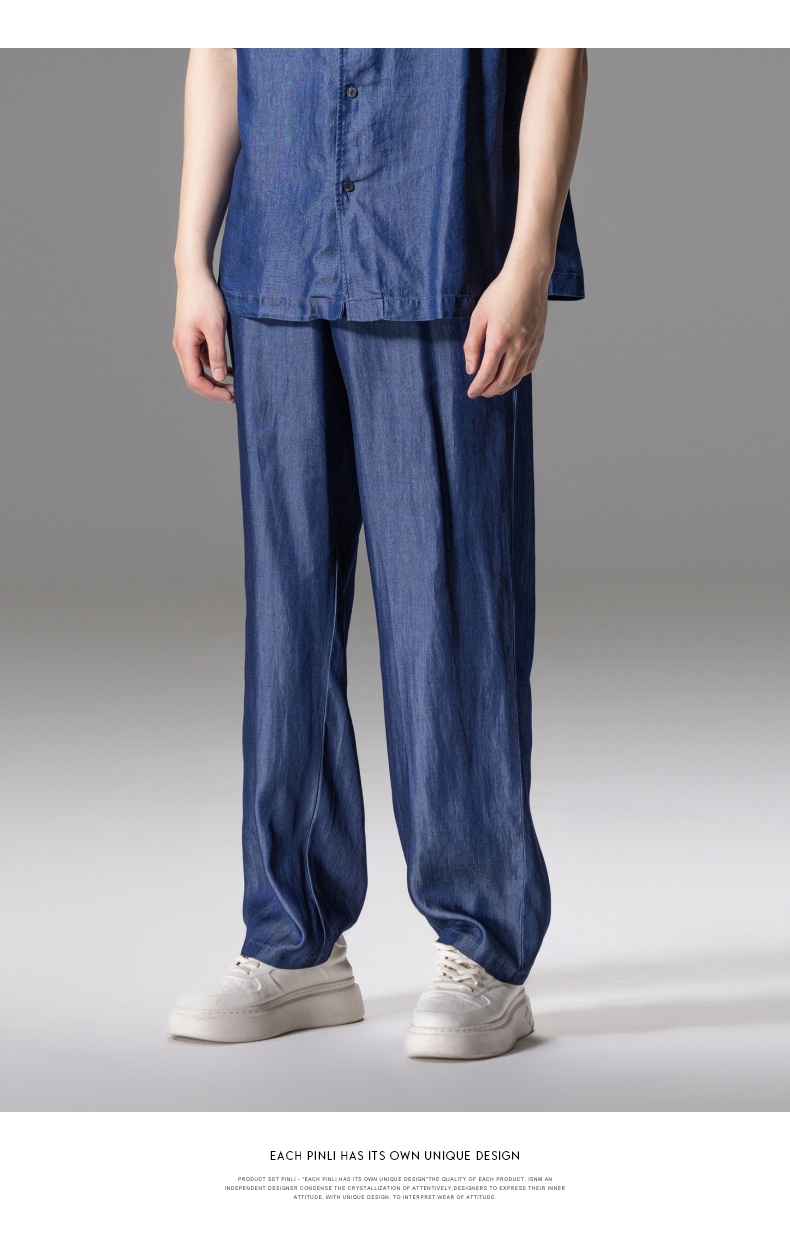 PINLI品立新款男高街夏季宽松牛仔长裤休闲直筒裤GD242316309