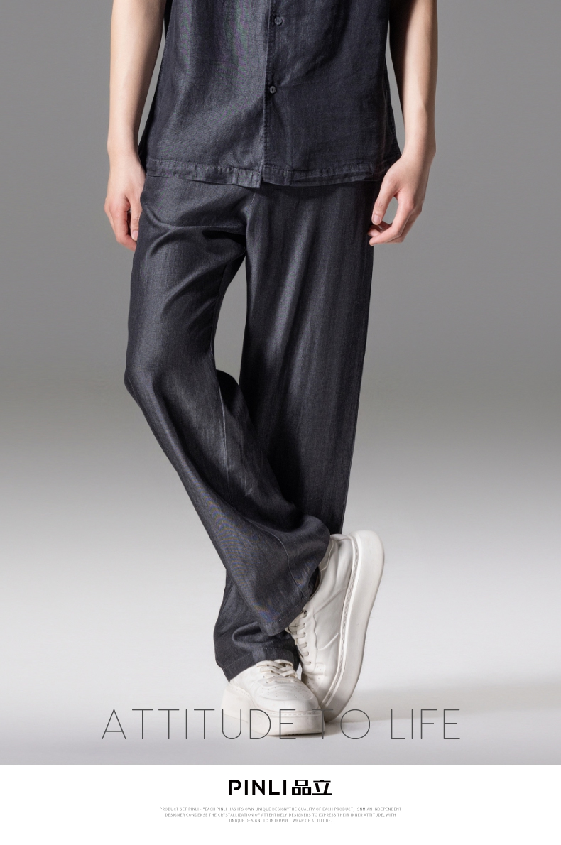 PINLI品立春季新款通勤暗纹捏褶休闲裤男士潮牌百搭简约长裤B253117034