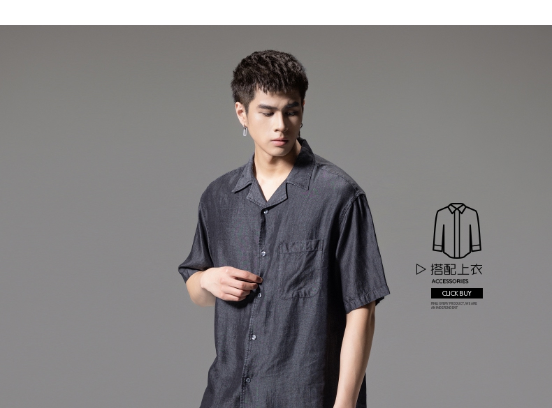 PINLI品立春季新款亚麻休闲长袖衬衫男潮牌立领百搭商务衬衣GD253113042