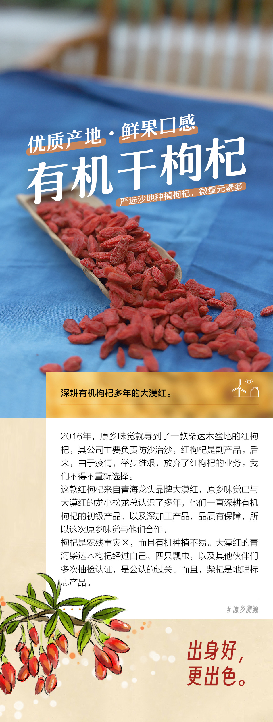 生态红枸杞 | 来自青海省柴达木盆地,优质原料,饱满甘甜,清雅干净,营养丰富。