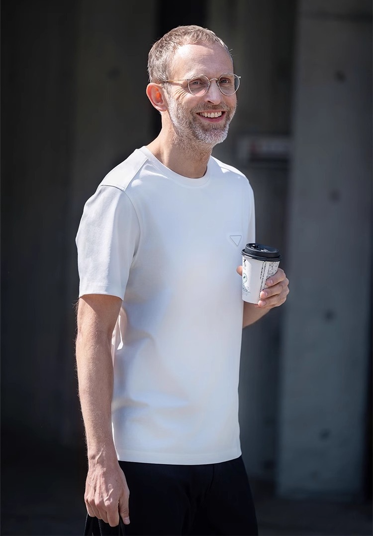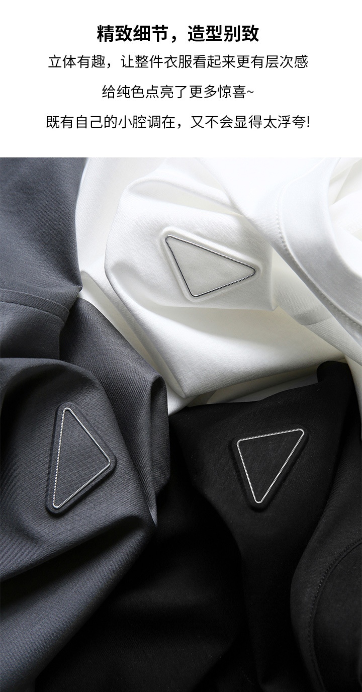 合体剪裁宽松随身版型,圆领落肩设计,上身非常挺括有型,雅致且有气质。