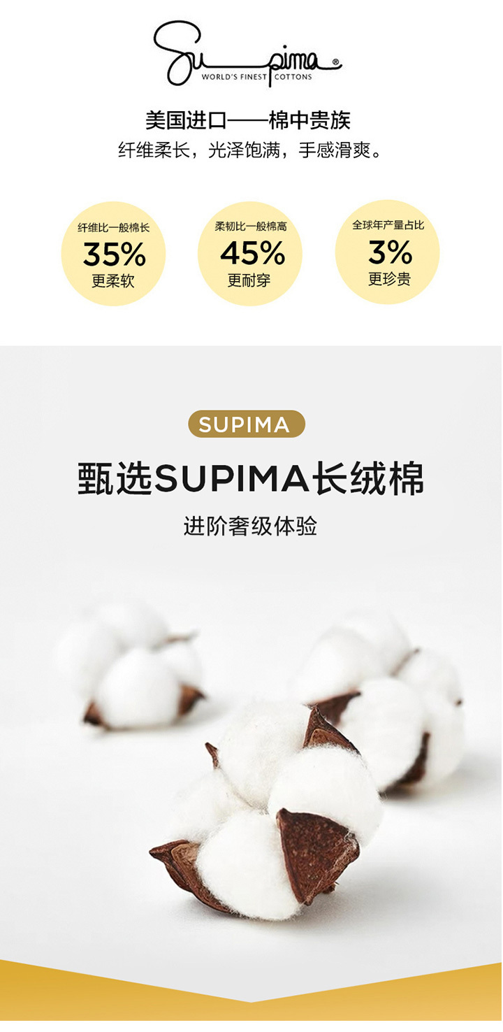 匹马棉是“棉花中的软黄金”极品长绒棉的统称,全球出产的棉花中只有3%能被叫做匹马棉。