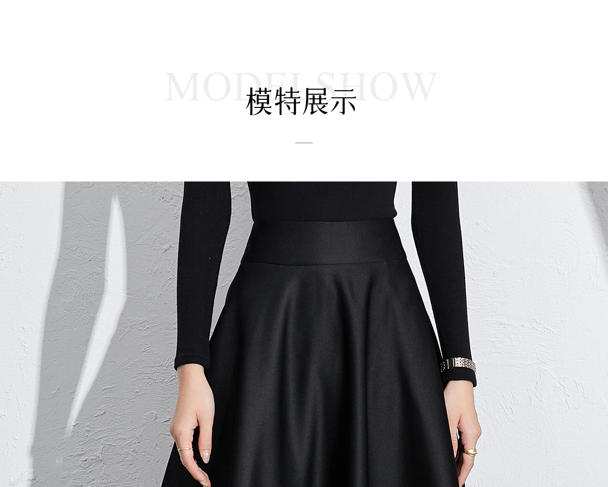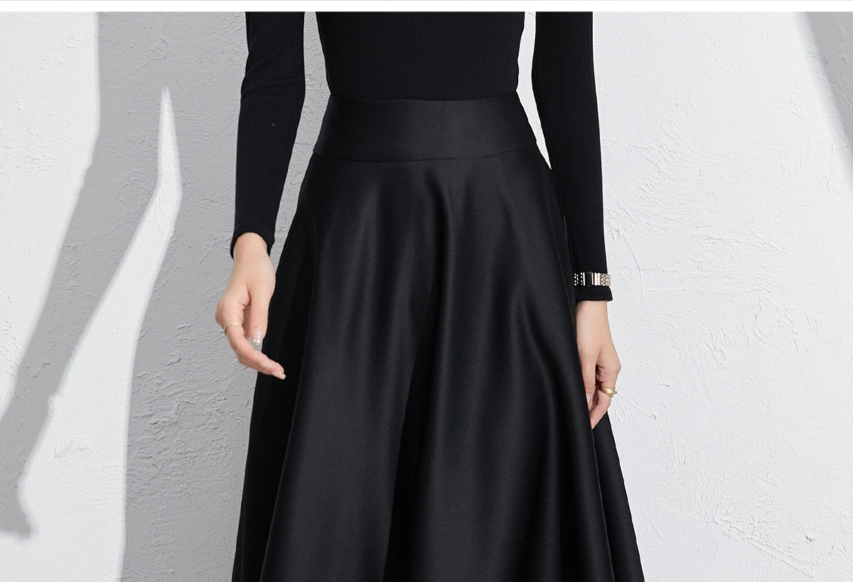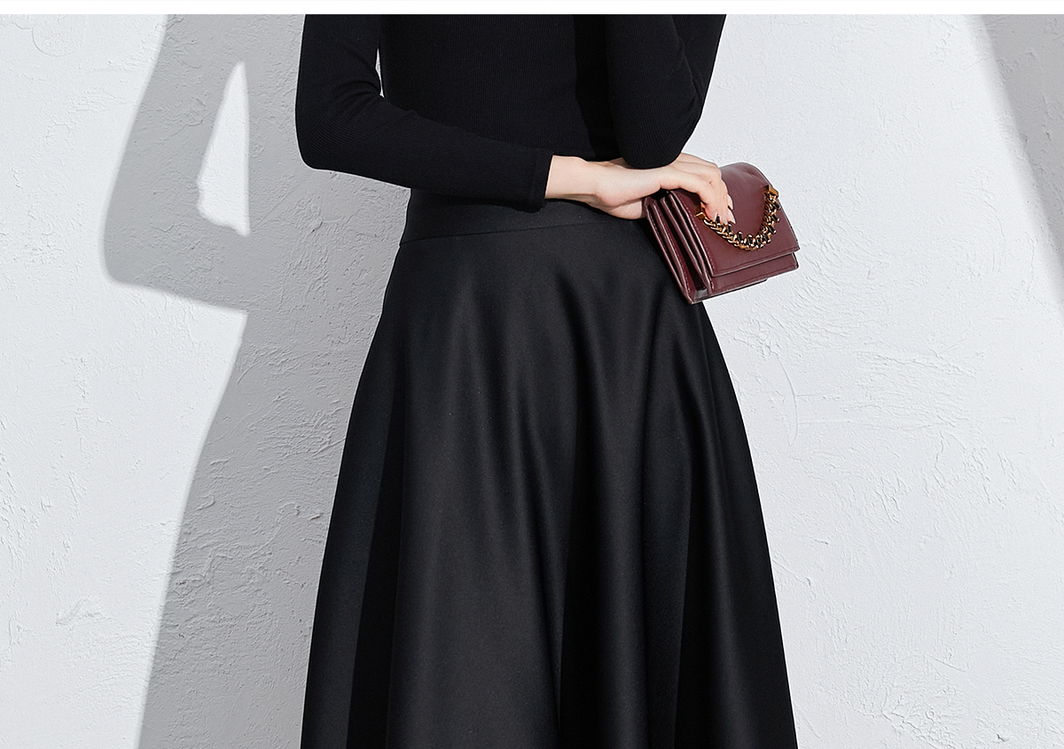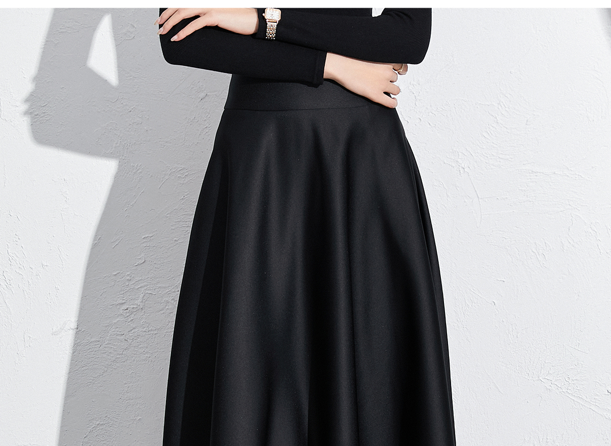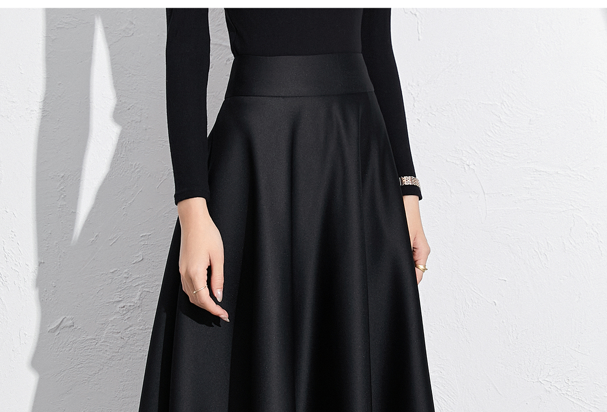 艾尚臣黑色法式赫本风气质半身裙a字长裙中长款显瘦裙子垂坠感