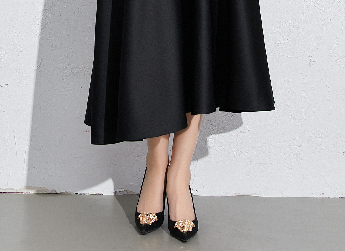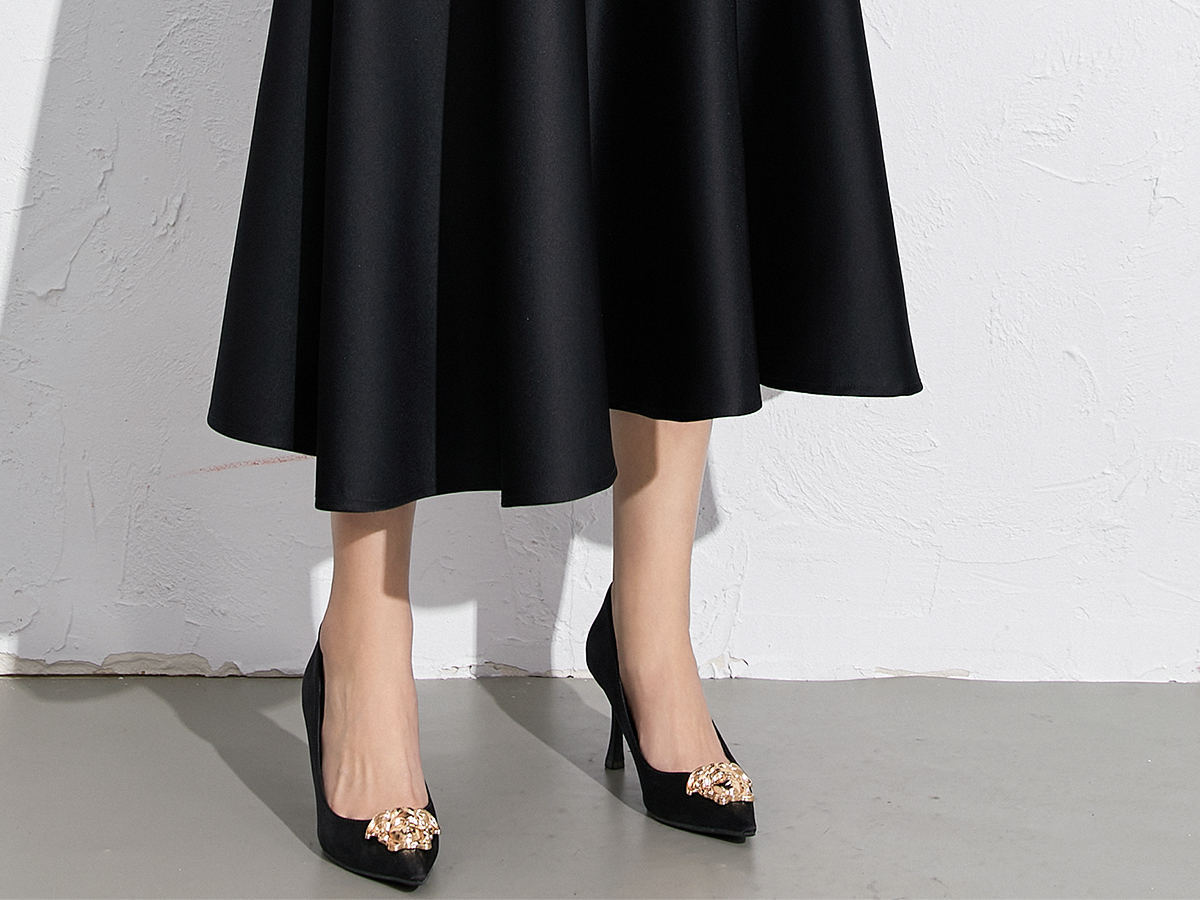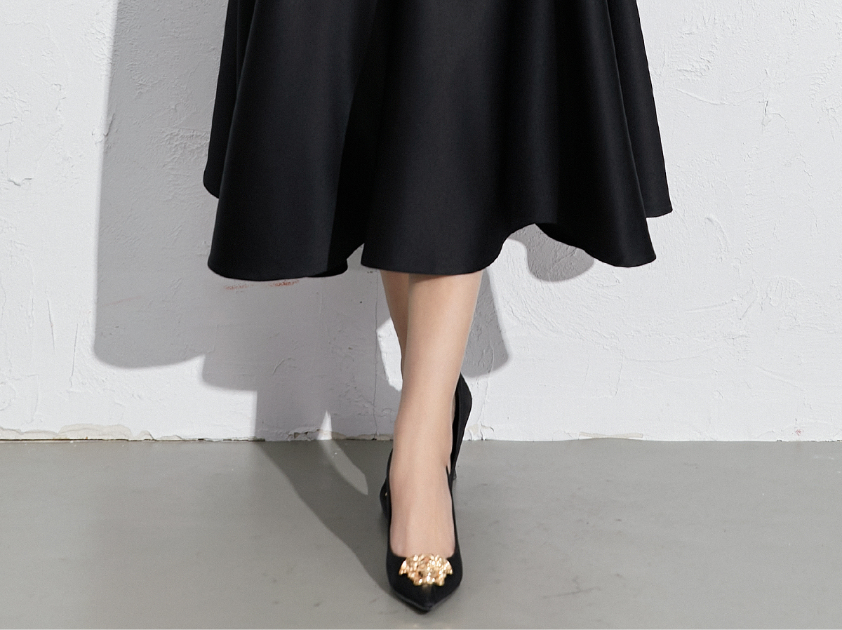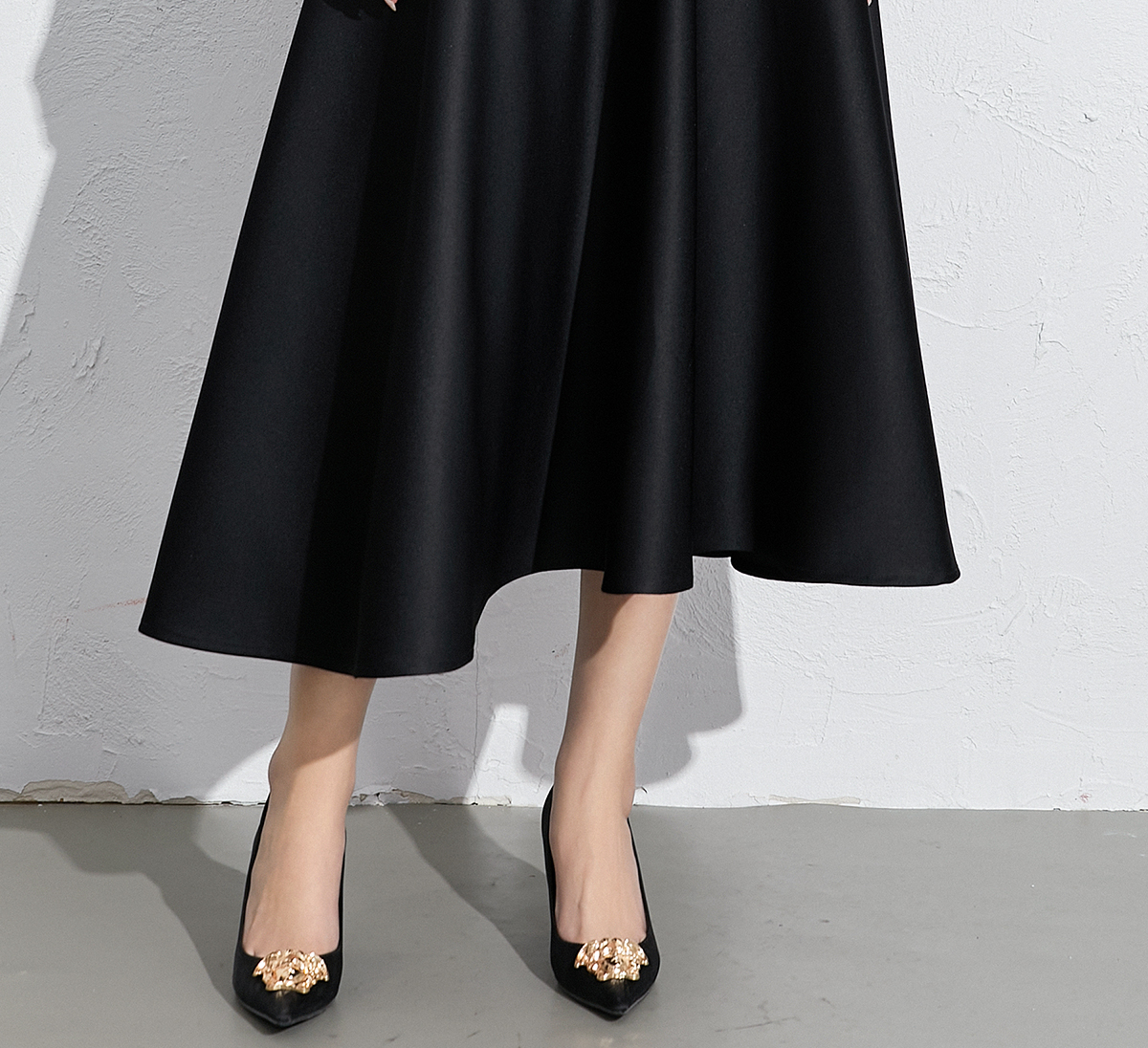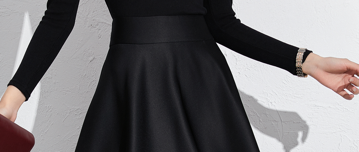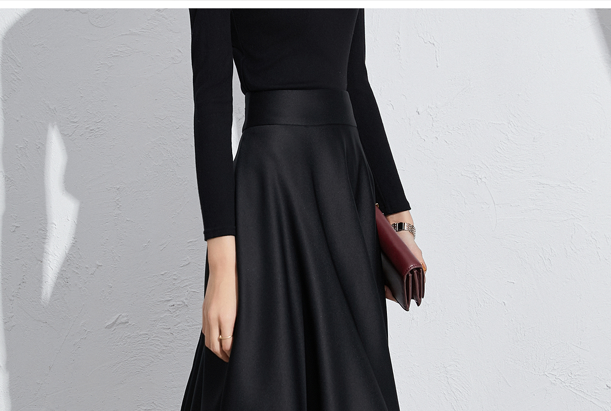 艾尚臣黑色法式赫本风气质半身裙a字长裙中长款显瘦裙子垂坠感