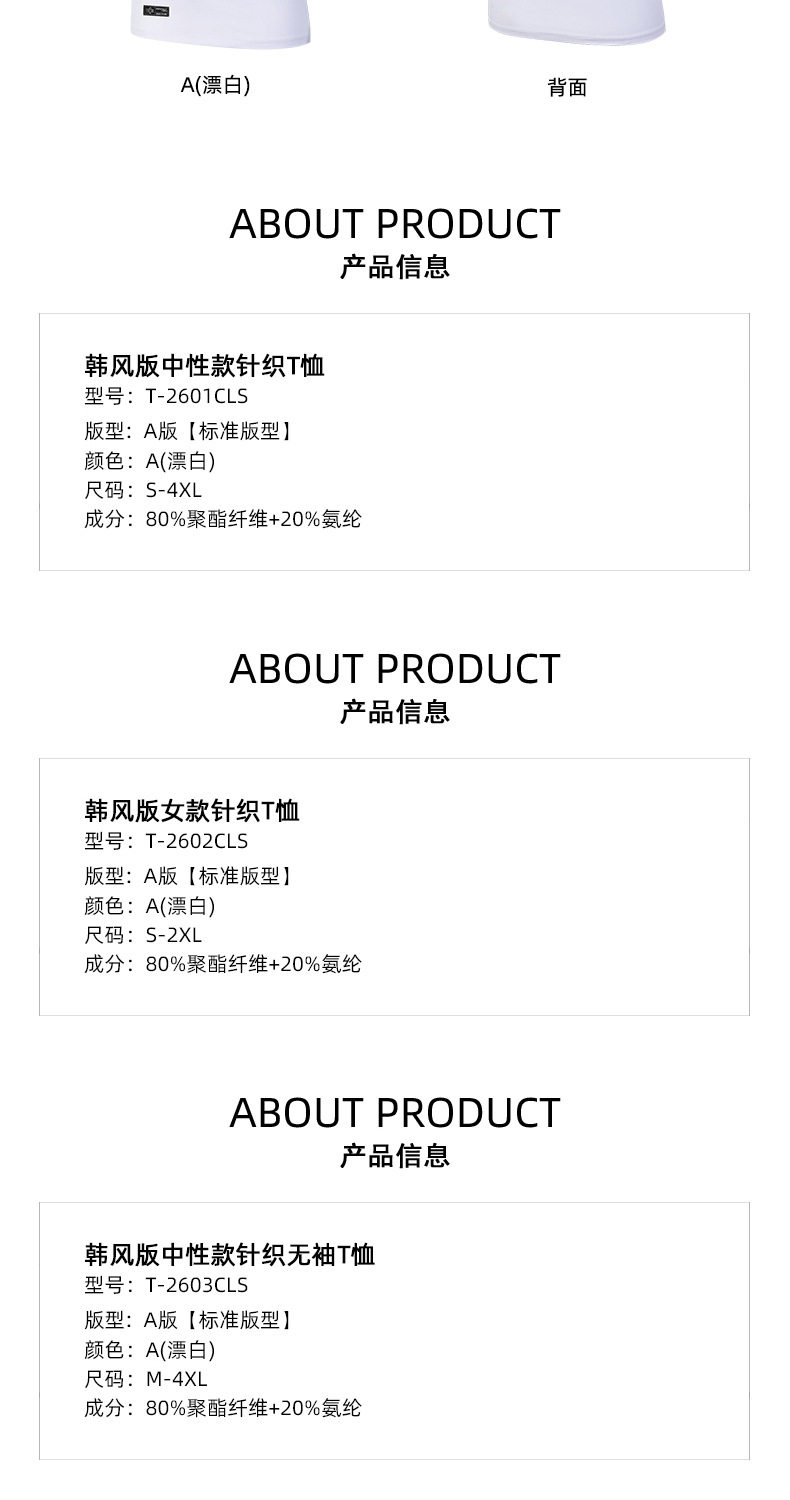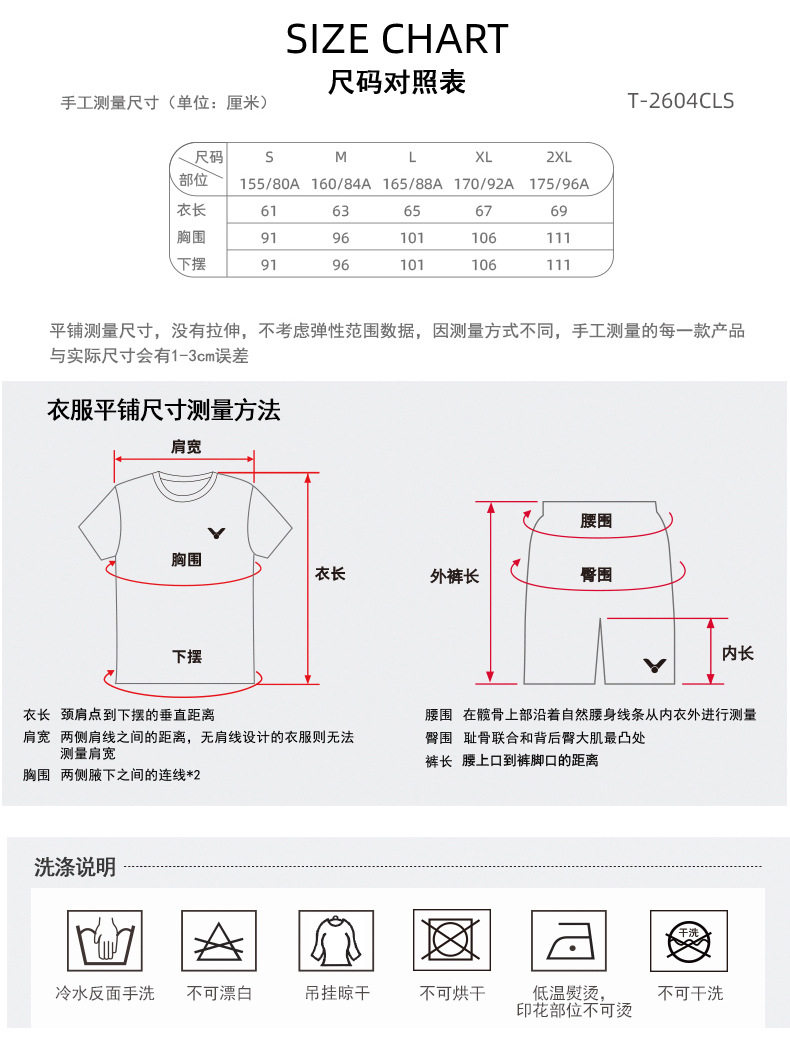 威克多胜利 男女同款/女款 经典韩风系列 针织T恤 漂白 T-2601CLS/T-2602CLS/T-2603CLS