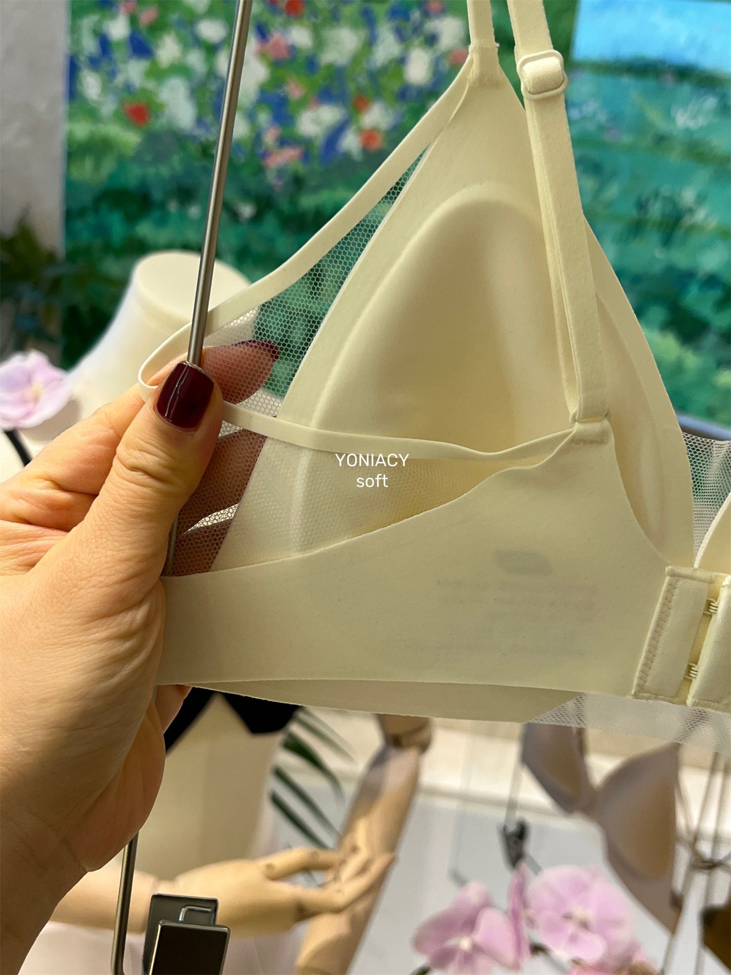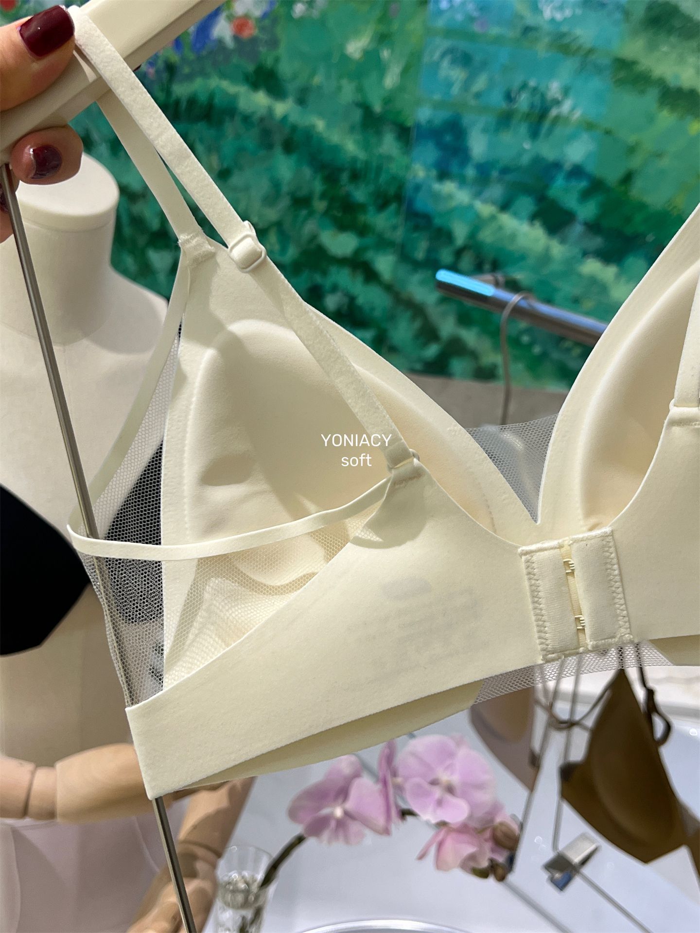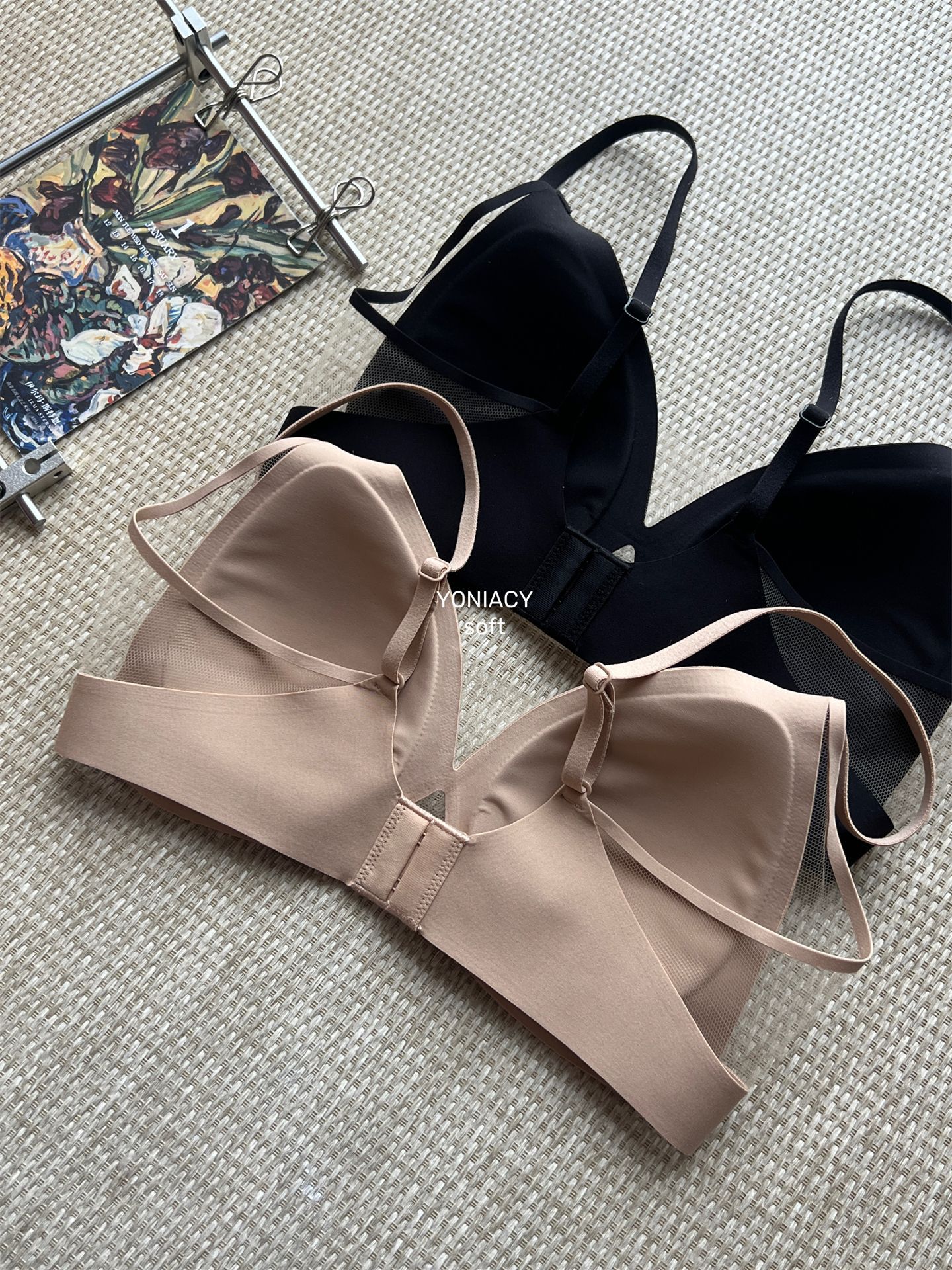 小胸更撩人~法式性感清透网纱安心内衣 细肩三角杯薄款美背无钢圈简约文胸AB杯小胸内衣