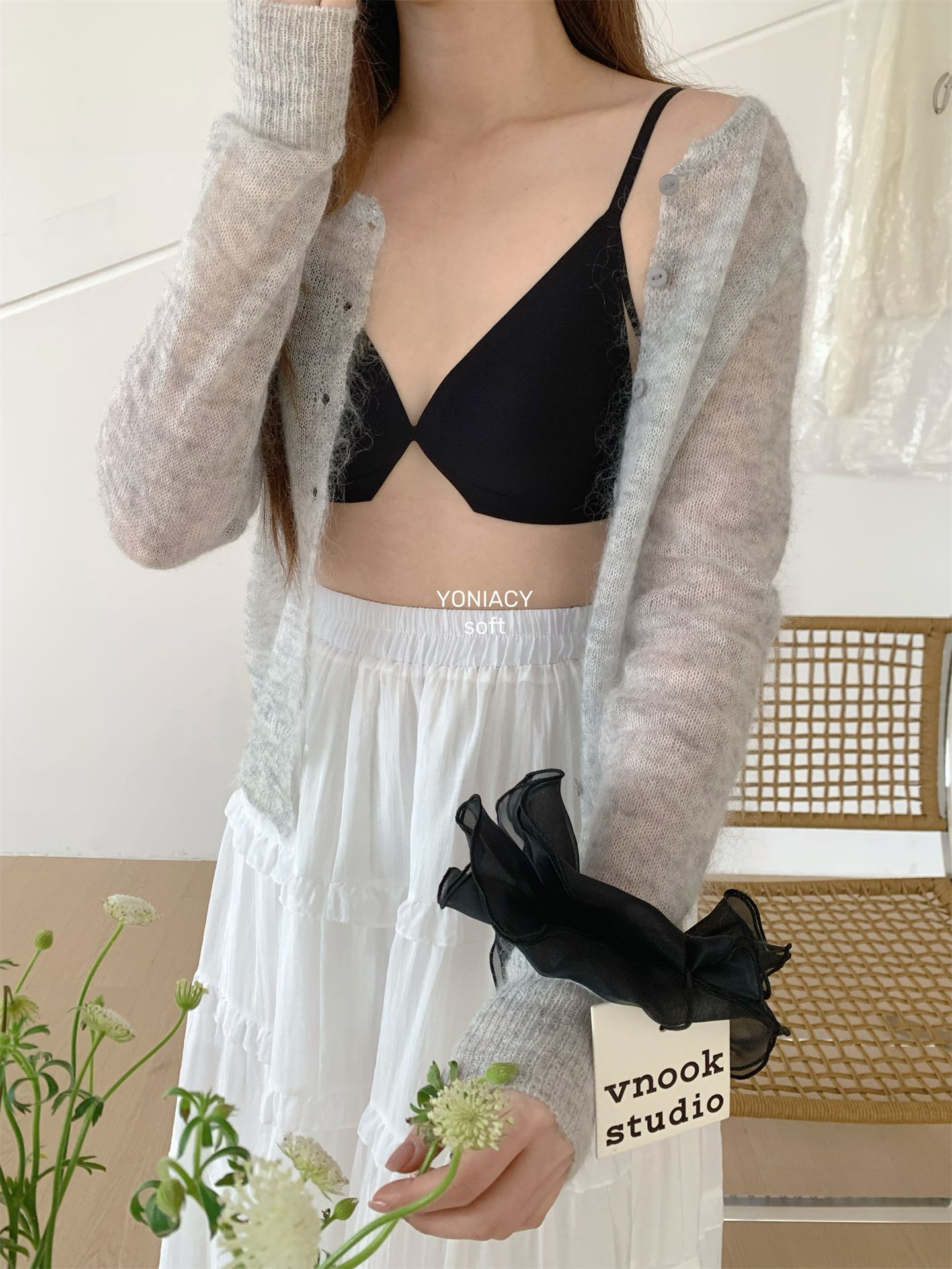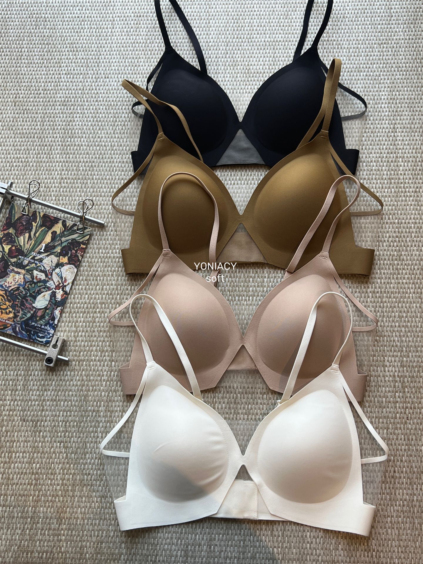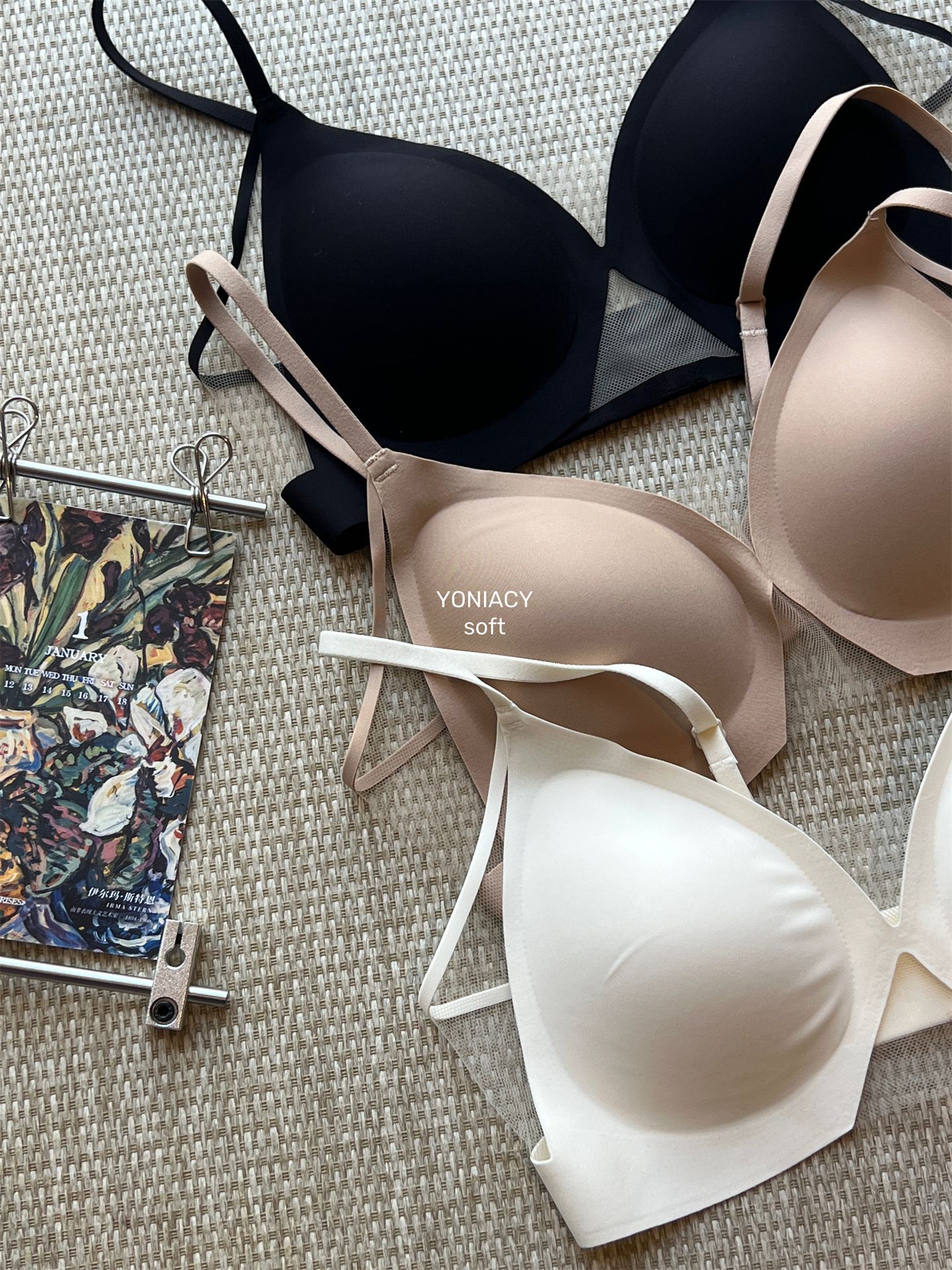 小胸更撩人~法式性感清透网纱安心内衣 细肩三角杯薄款美背无钢圈简约文胸AB杯小胸内衣