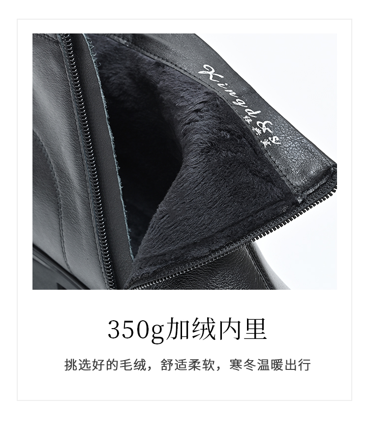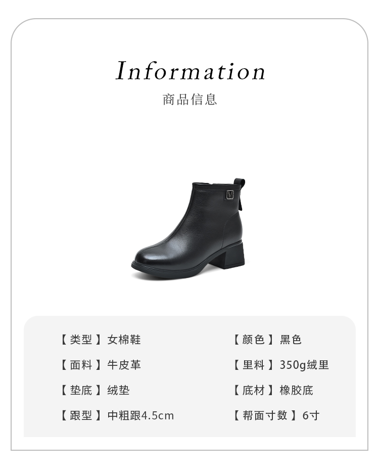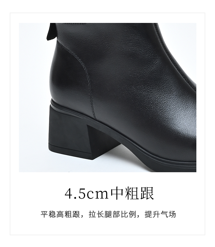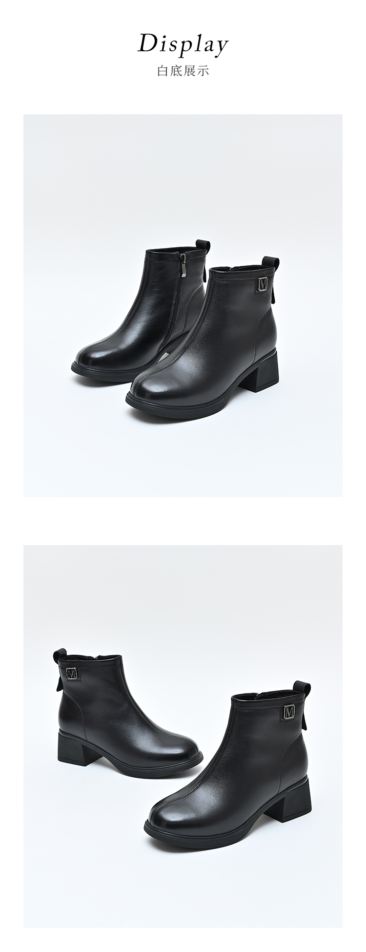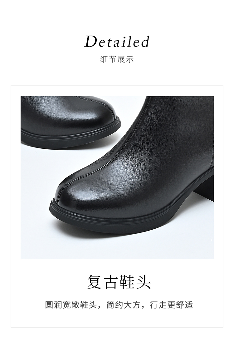 经典鲨2024年冬季新款百搭圆头侧拉链加绒中粗跟时装短靴女KW296-D58021