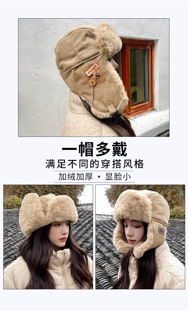 【冬季骑行保暖护耳神器】电动车防风头套 加绒加厚防寒雷锋帽女士保暖帽