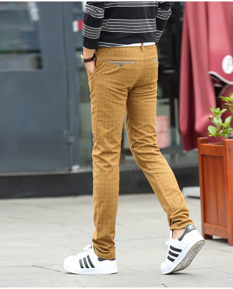 【服饰鞋包】。春夏新款男式休闲裤修身格子休闲裤男青年中腰爆款休闲长裤子男装