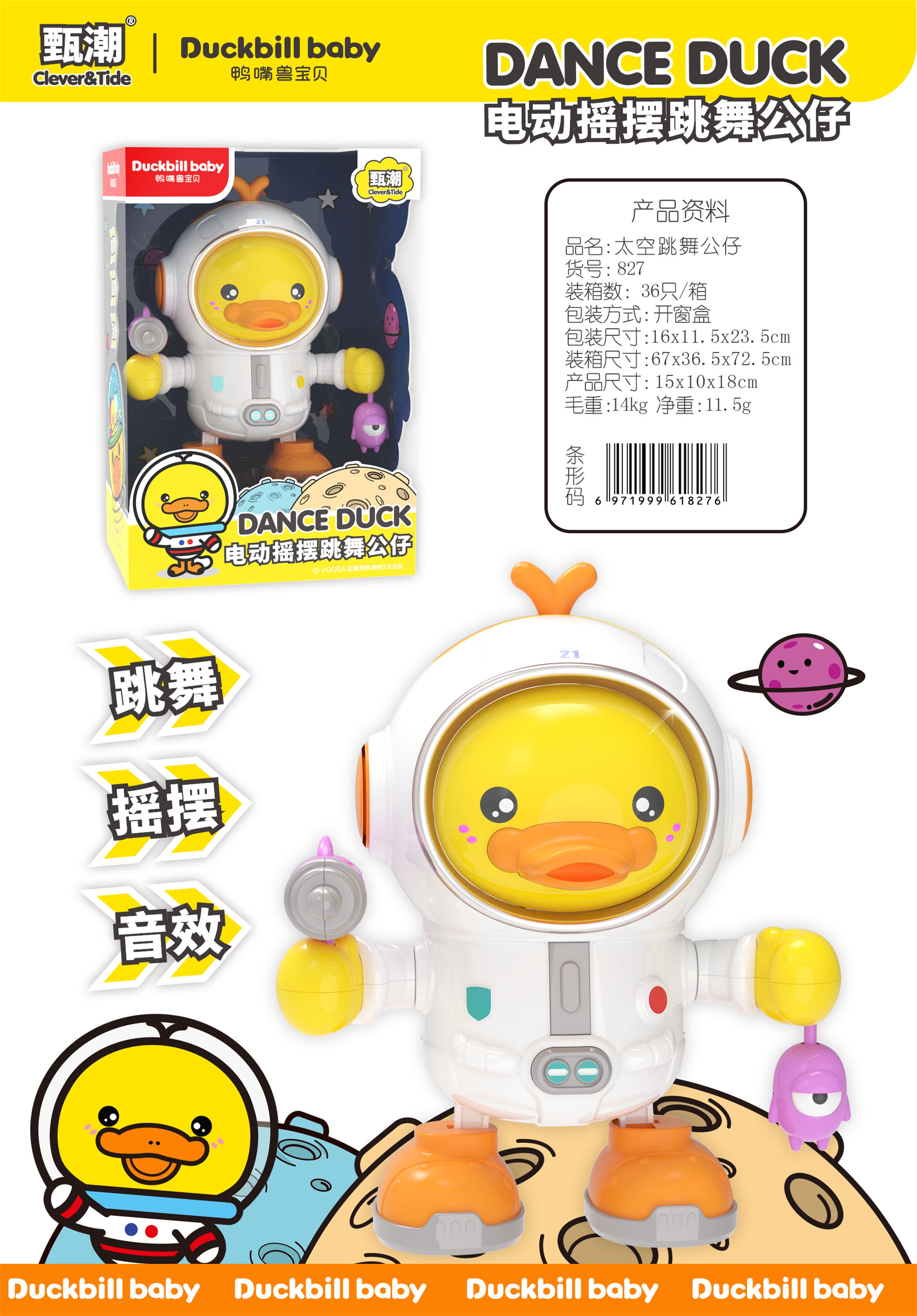 甄潮趣味声光玩具电动摇摆跳舞公仔827(3岁及以上)