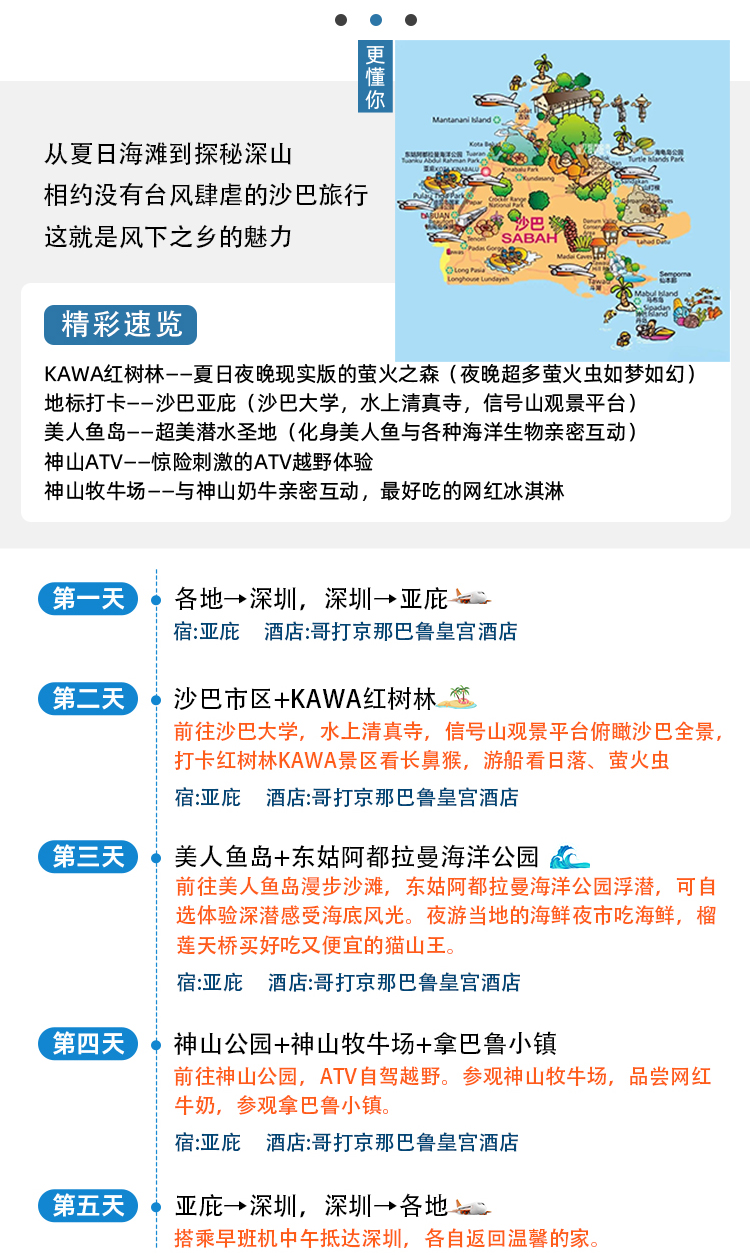 马来西亚沙巴5天4晚游/KAWA红树林+美人鱼跳岛+神山公园