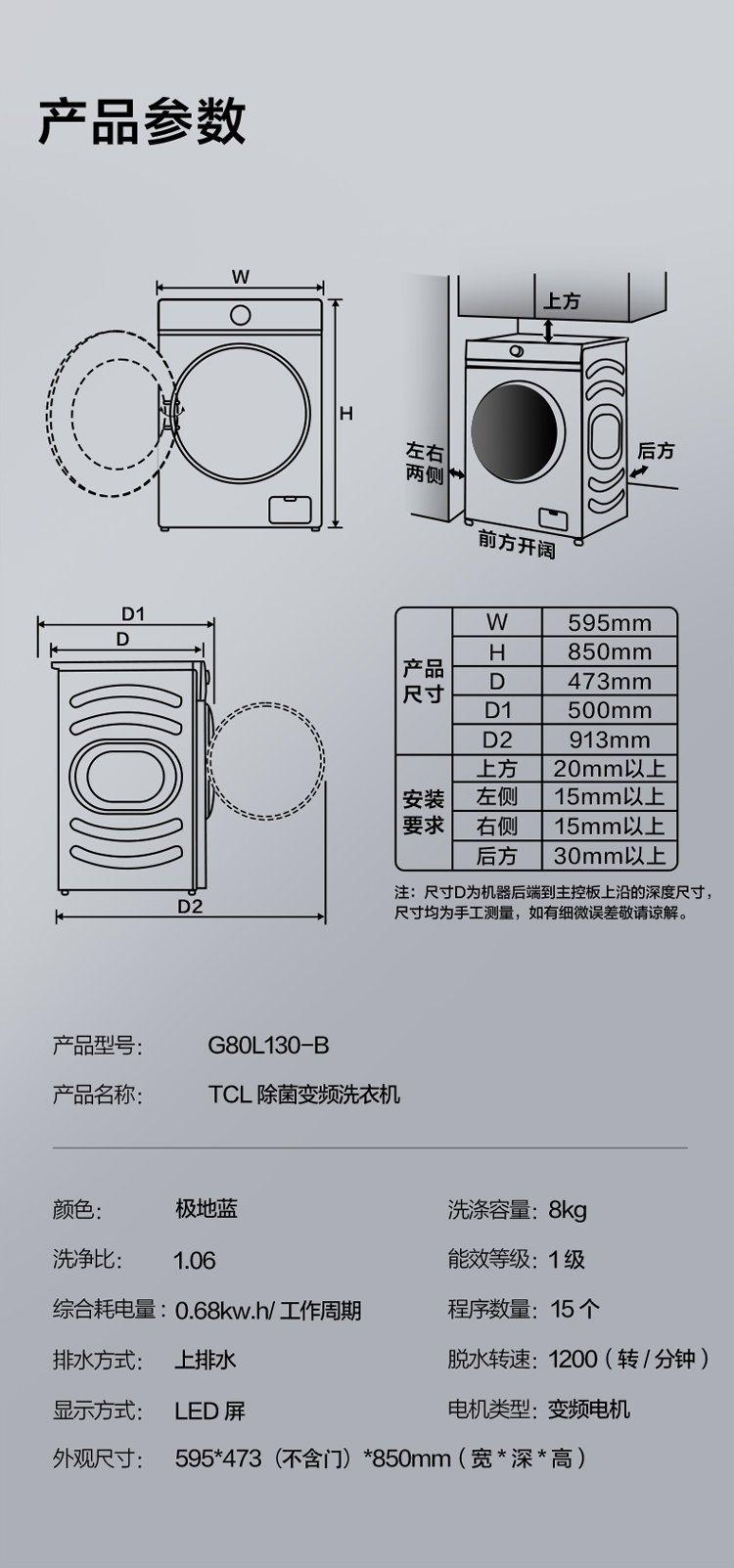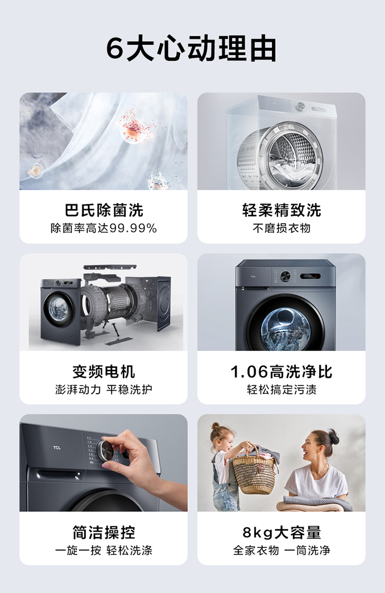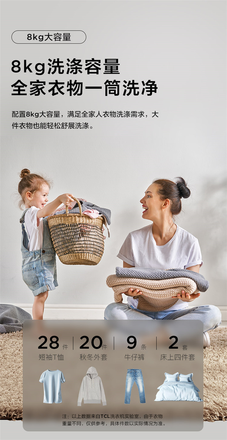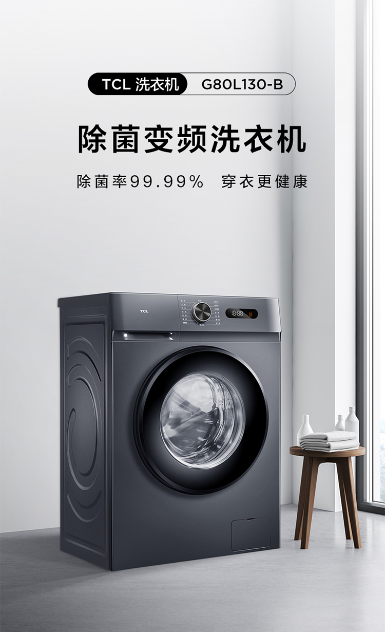 【TCL洗衣机】TCL 8公斤L130全自动滚筒小型洗衣机出租房用 G80L130-B