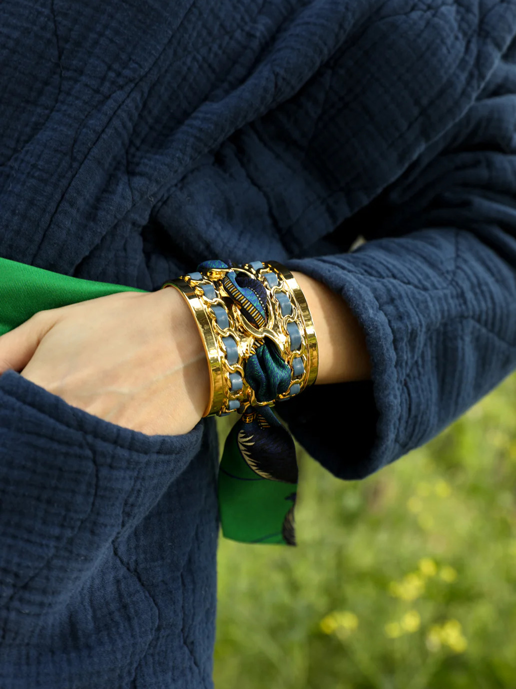 订购14周到|AN-NEE-C5G-DECEMBRE-Bleu-Boheme-绿调 波西米亚 4cm 丝巾手镯[法国设计师]